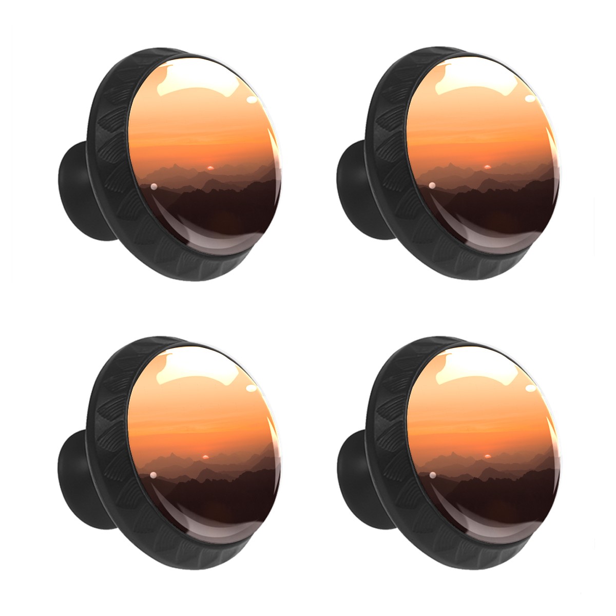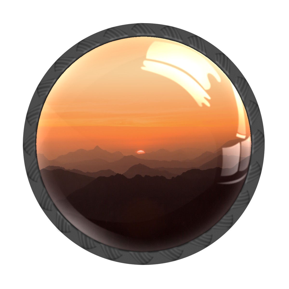 Genhuyiz 4 Pcs Drawer Pulls Knobs Mountain Sunset Dusk Cabinet Knobs Pulls Round Crystal Glass Handles Knobs for Kitchen Cabinet and Drawer Dresser Bathroom
