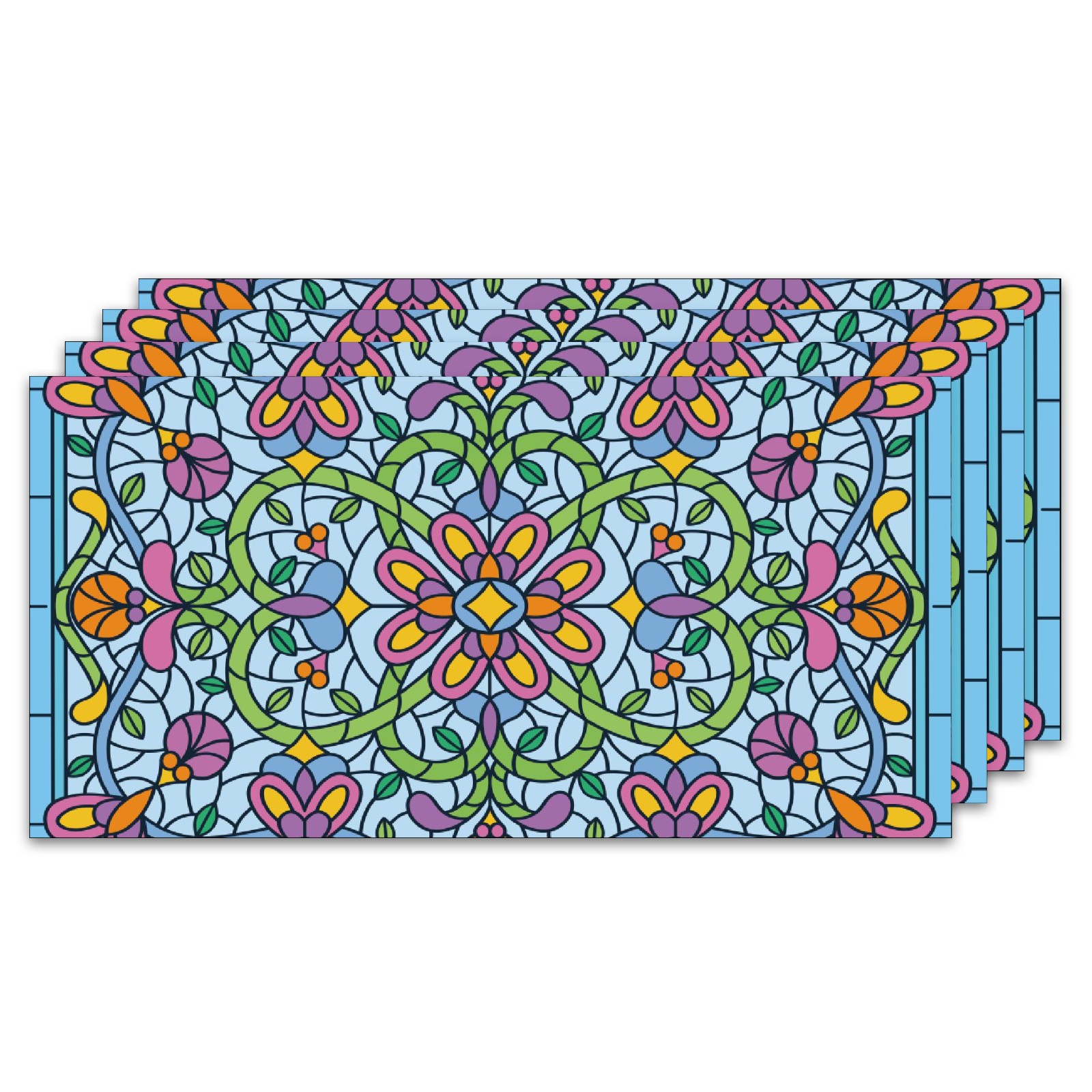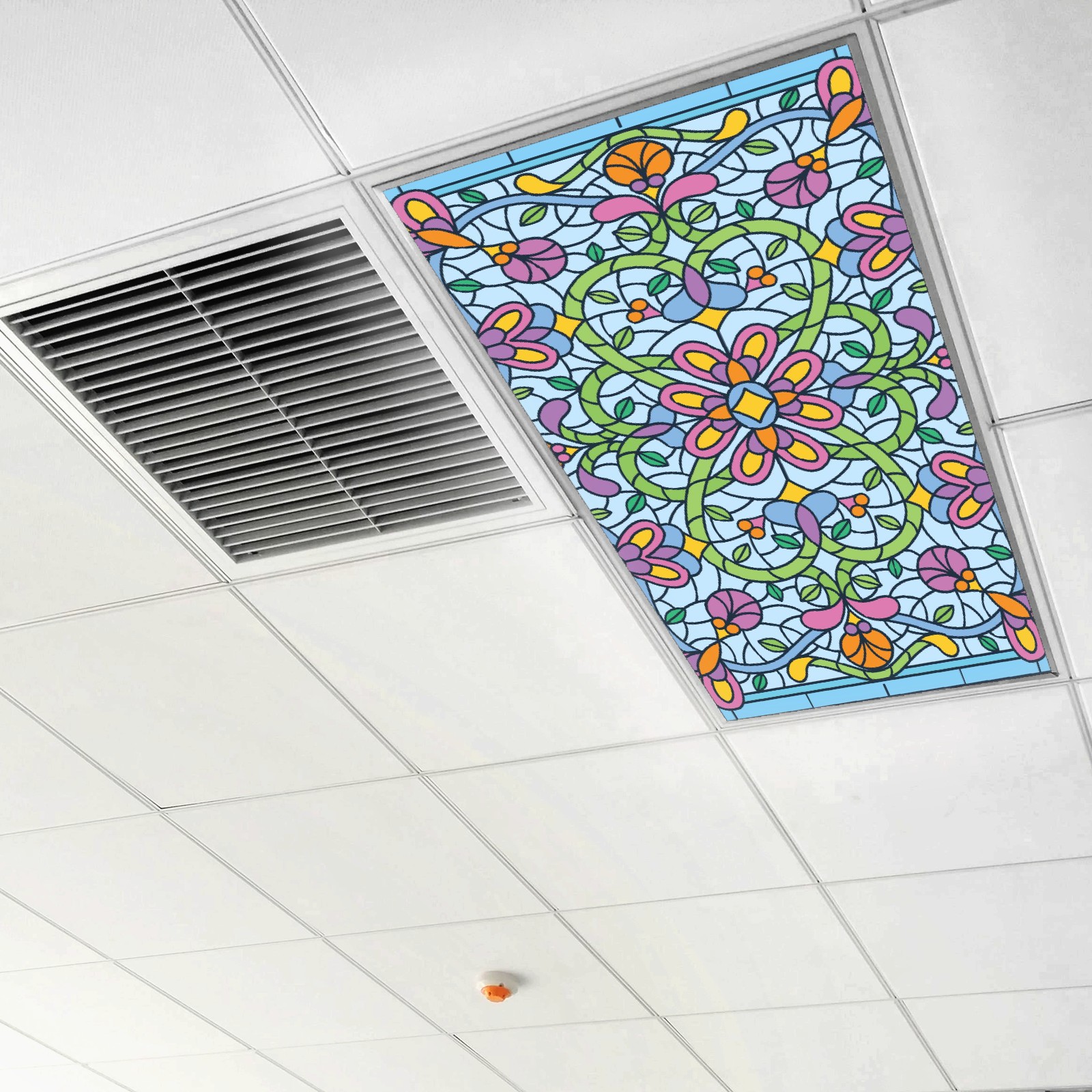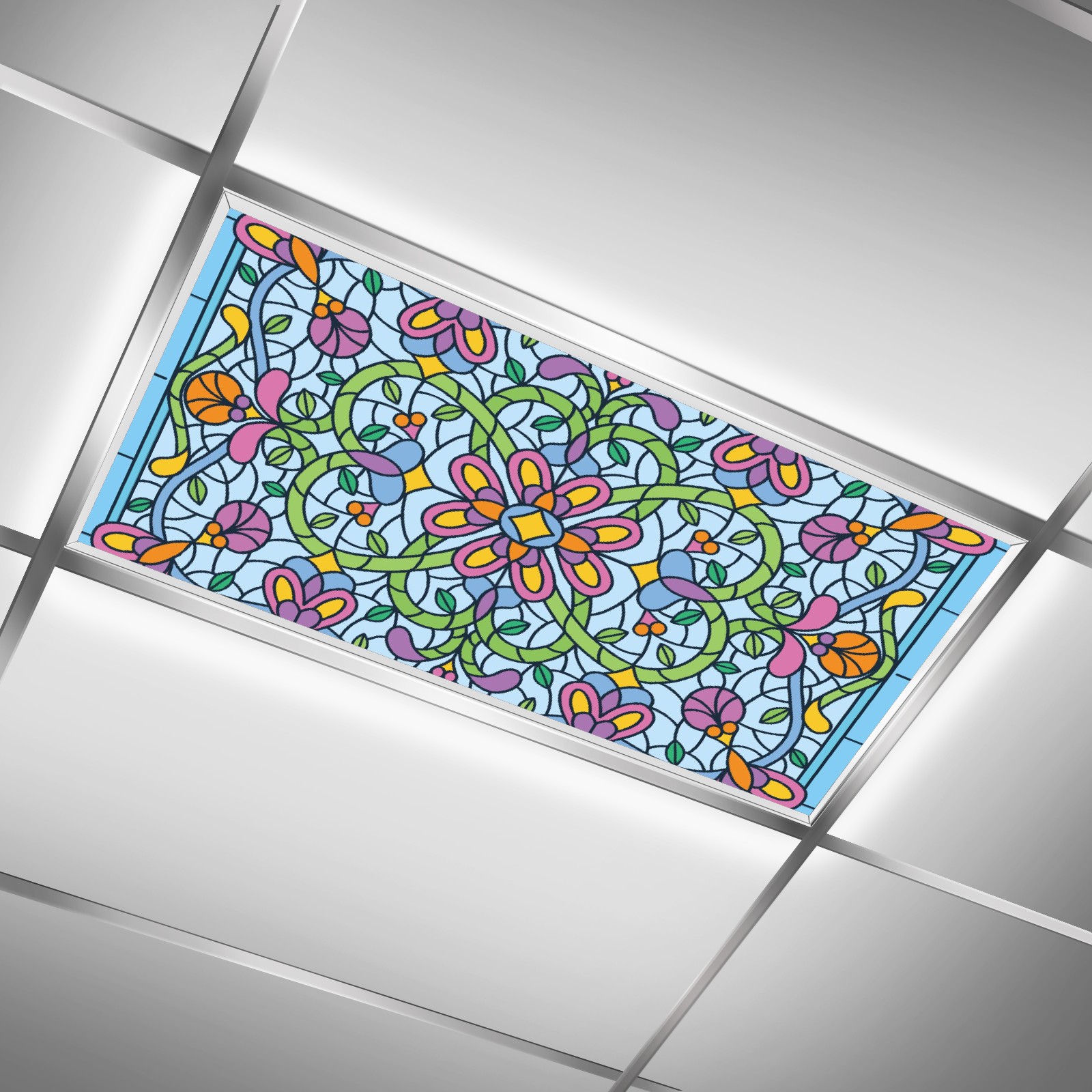 4 Pack Fluorescent Light Covers Green Blue Stained Glass Floral Pattern Light Filters 2ft x 4ft Office Classroom Hospital Home Kindergarten Clinics Decorations Drop Ceiling Light Covering Insert--Reduce Glare Flicker