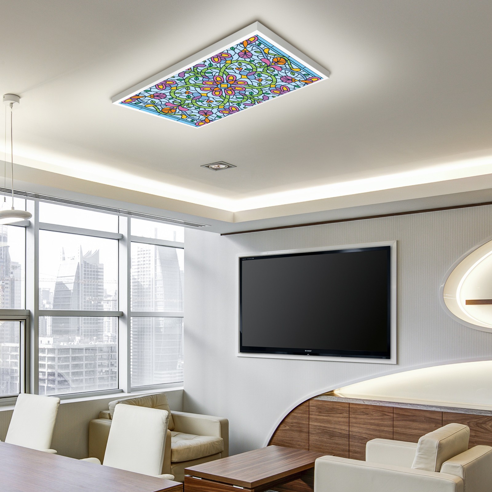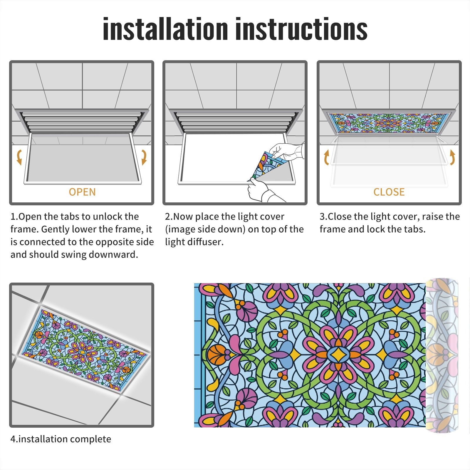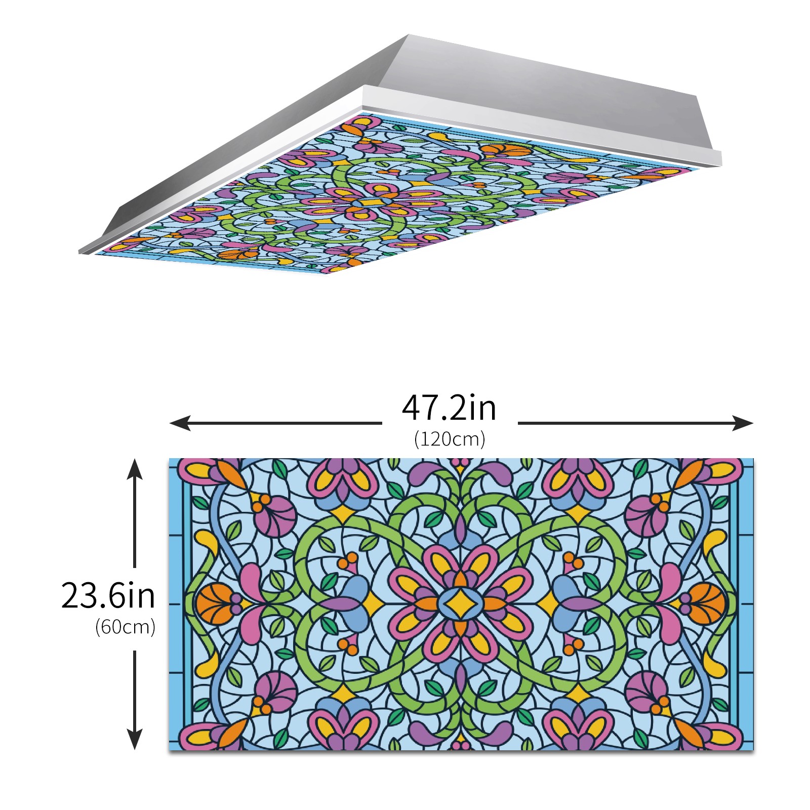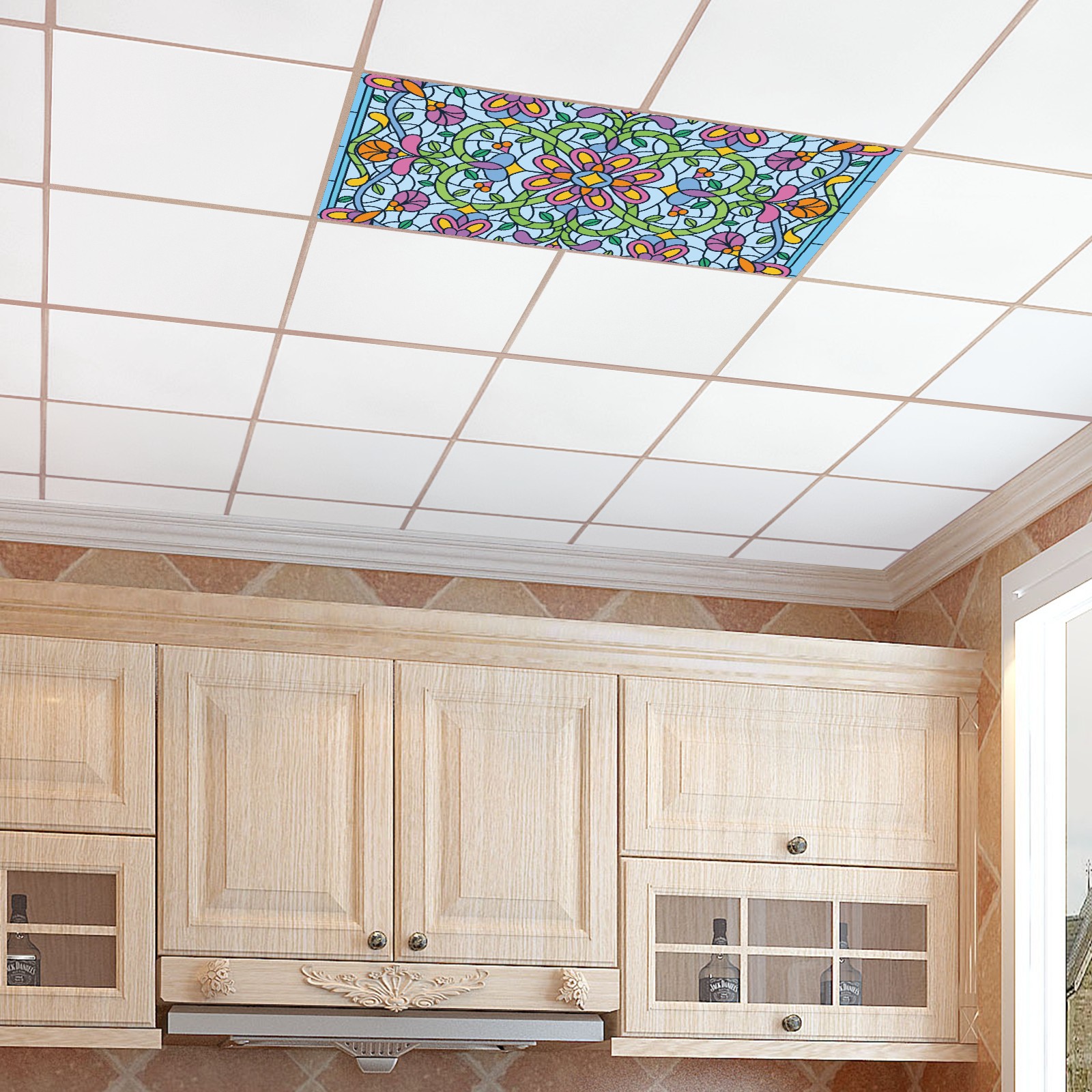 4 Pack Fluorescent Light Covers Green Blue Stained Glass Floral Pattern Light Filters 2ft x 4ft Office Classroom Hospital Home Kindergarten Clinics Decorations Drop Ceiling Light Covering Insert--Reduce Glare Flicker
