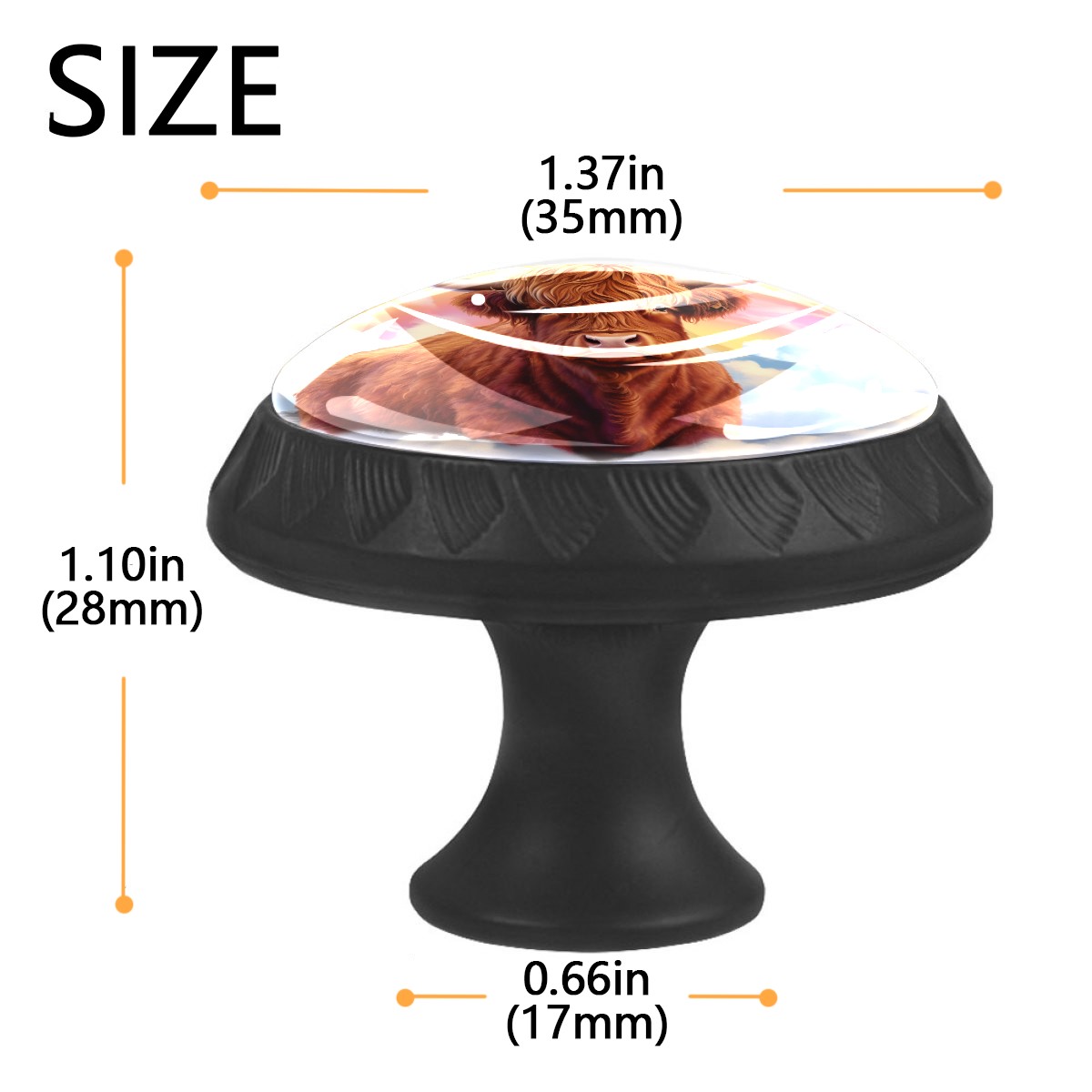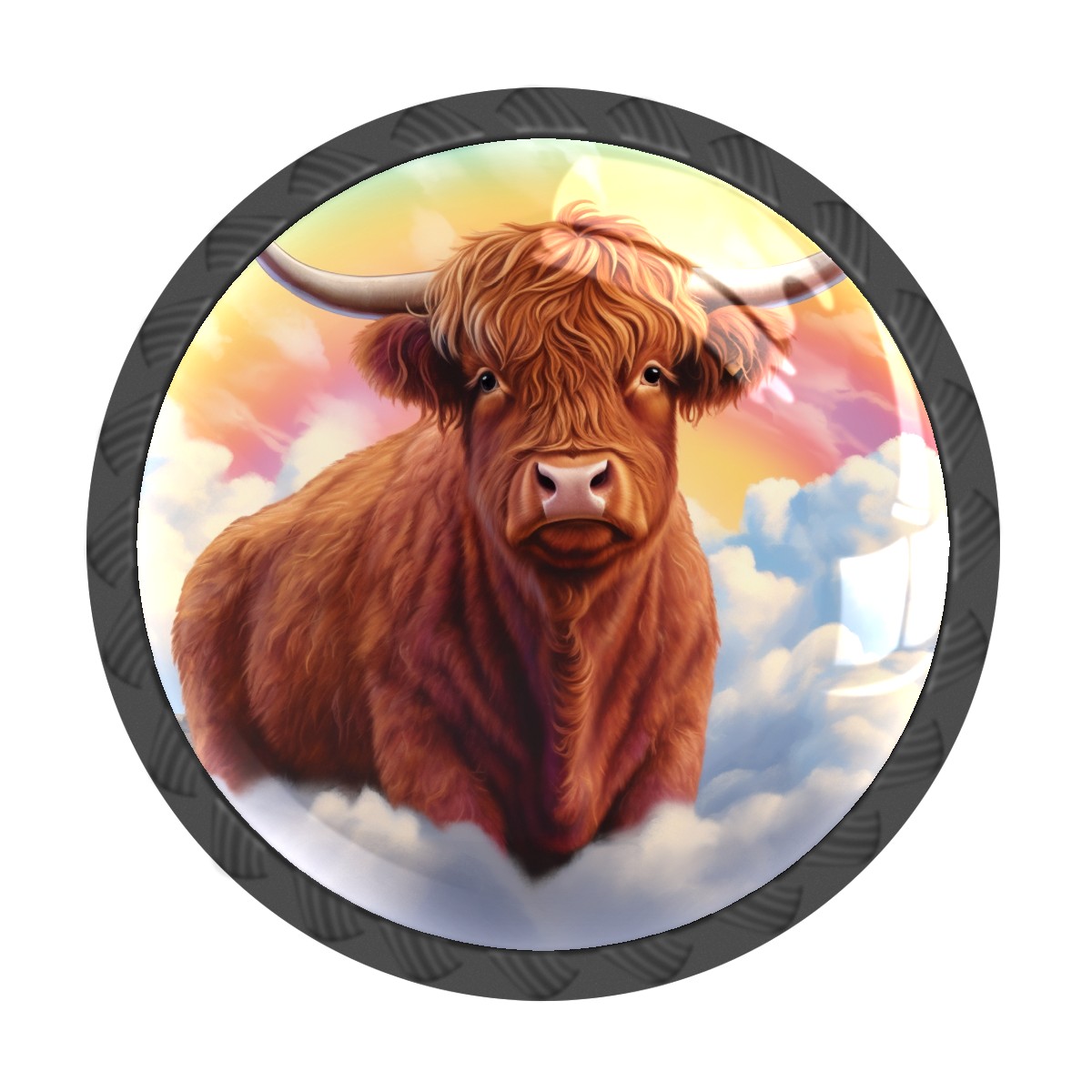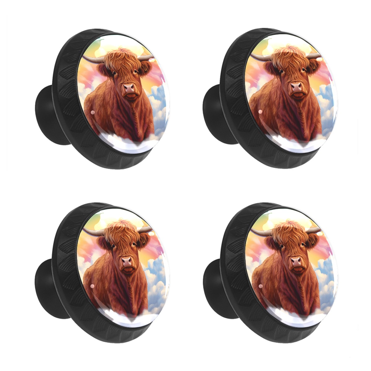 4 Pack Cabinet Knobs Highland Cow Rainbow Drawer Pulls Crystal Glass Round Knobs Handles for Dressers Drawer Bathroom Kitchen Cupboards Wardrobes Hardware Furniture Knobs
