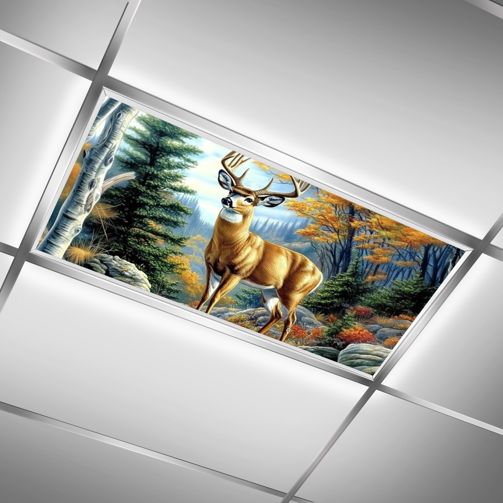 MSINMKOK Fluorescent Light Covers 4‘ x 2' Deer Fall Forest Decorative Light Cover for Ceiling Lights Classroom Office Drop Ceiling Light Cover Fluorescent Light Filters