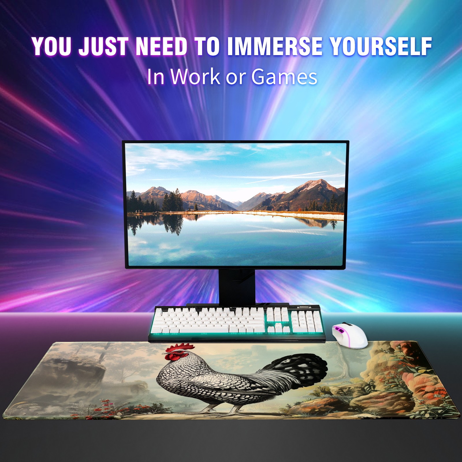Andemie Vintage Hen Mouse Pad 35.4'' x 15.7'' Extra Extended Gaming Mousepad Non-Slip Rubber Desk Mat Computer Keyboard Mat for Desk Desktop Mat