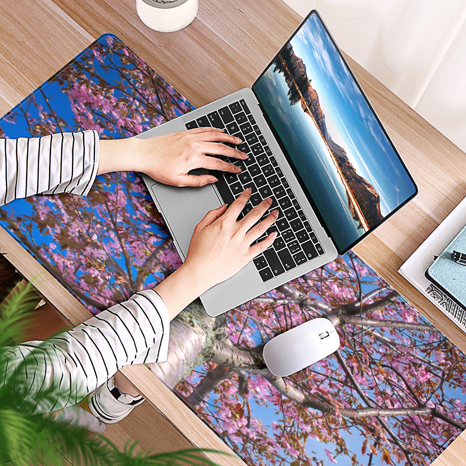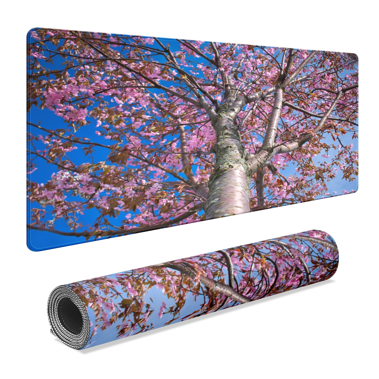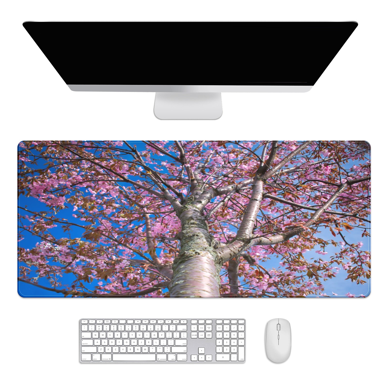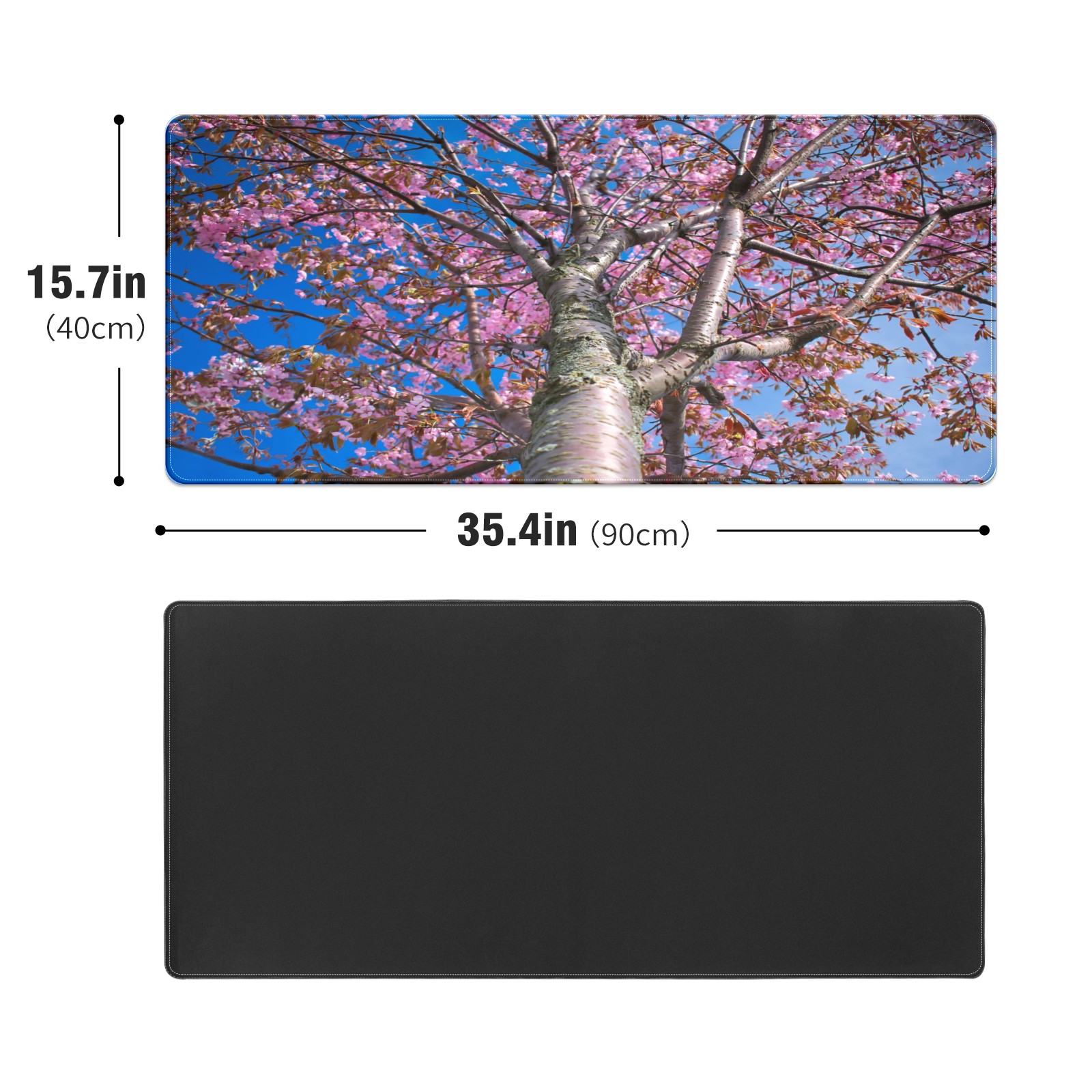 Andemie Cherry Blossom Tree Pink Floral Blue Sky Mouse Pad 35.4'' x 15.7'' Extra Extended Gaming Mousepad Non-Slip Rubber Desk Mat Computer Keyboard Mat for Desk Desktop Mat