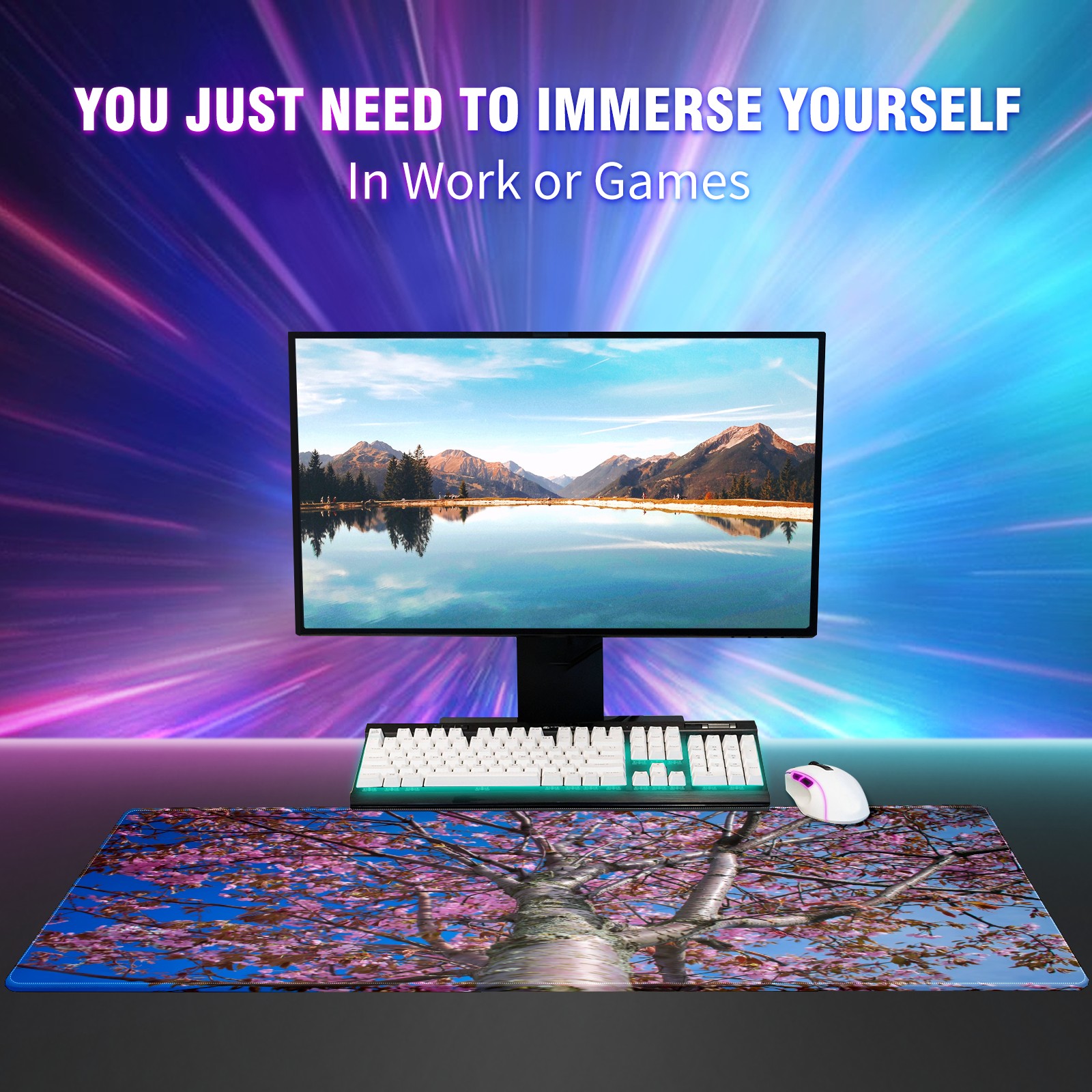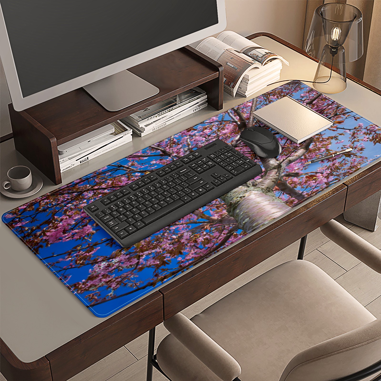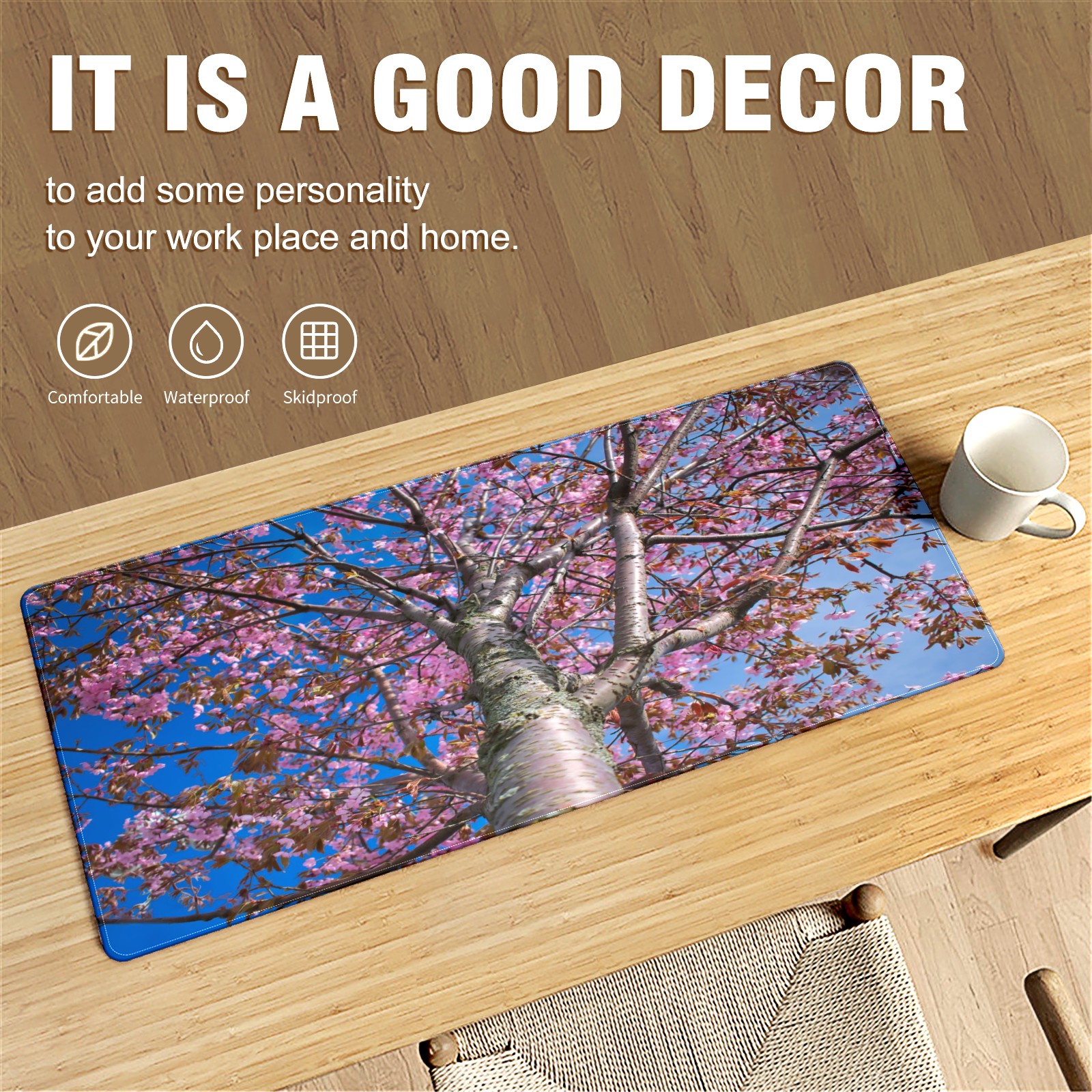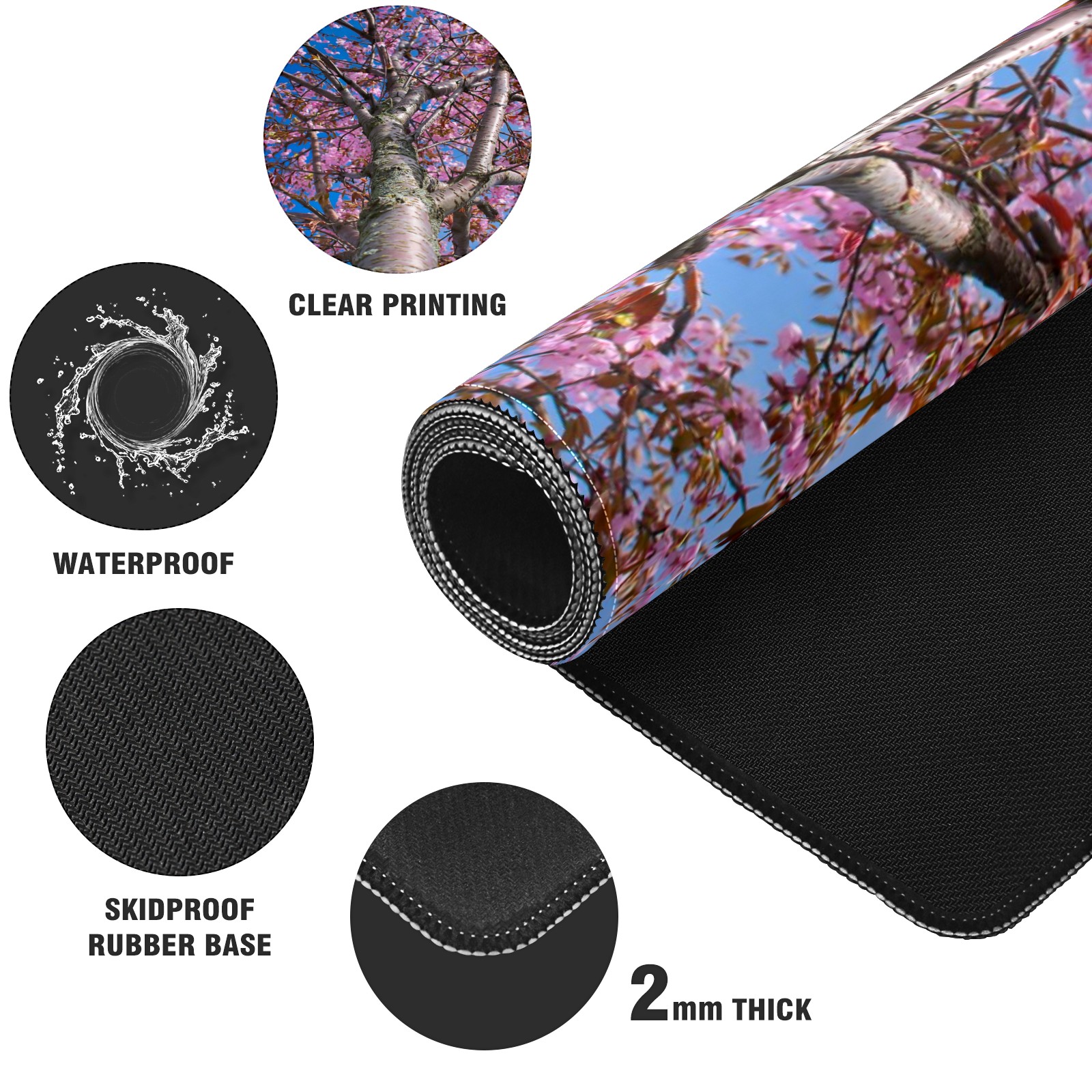 Andemie Cherry Blossom Tree Pink Floral Blue Sky Mouse Pad 35.4'' x 15.7'' Extra Extended Gaming Mousepad Non-Slip Rubber Desk Mat Computer Keyboard Mat for Desk Desktop Mat