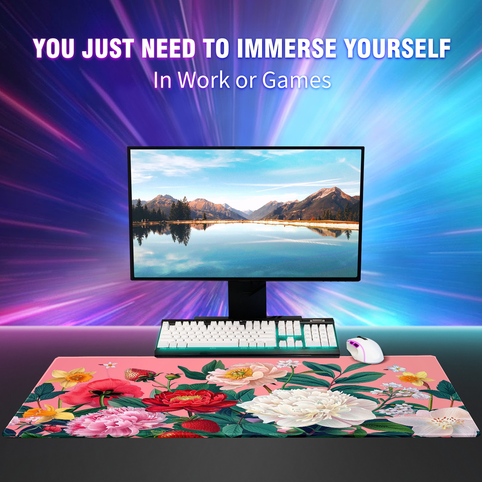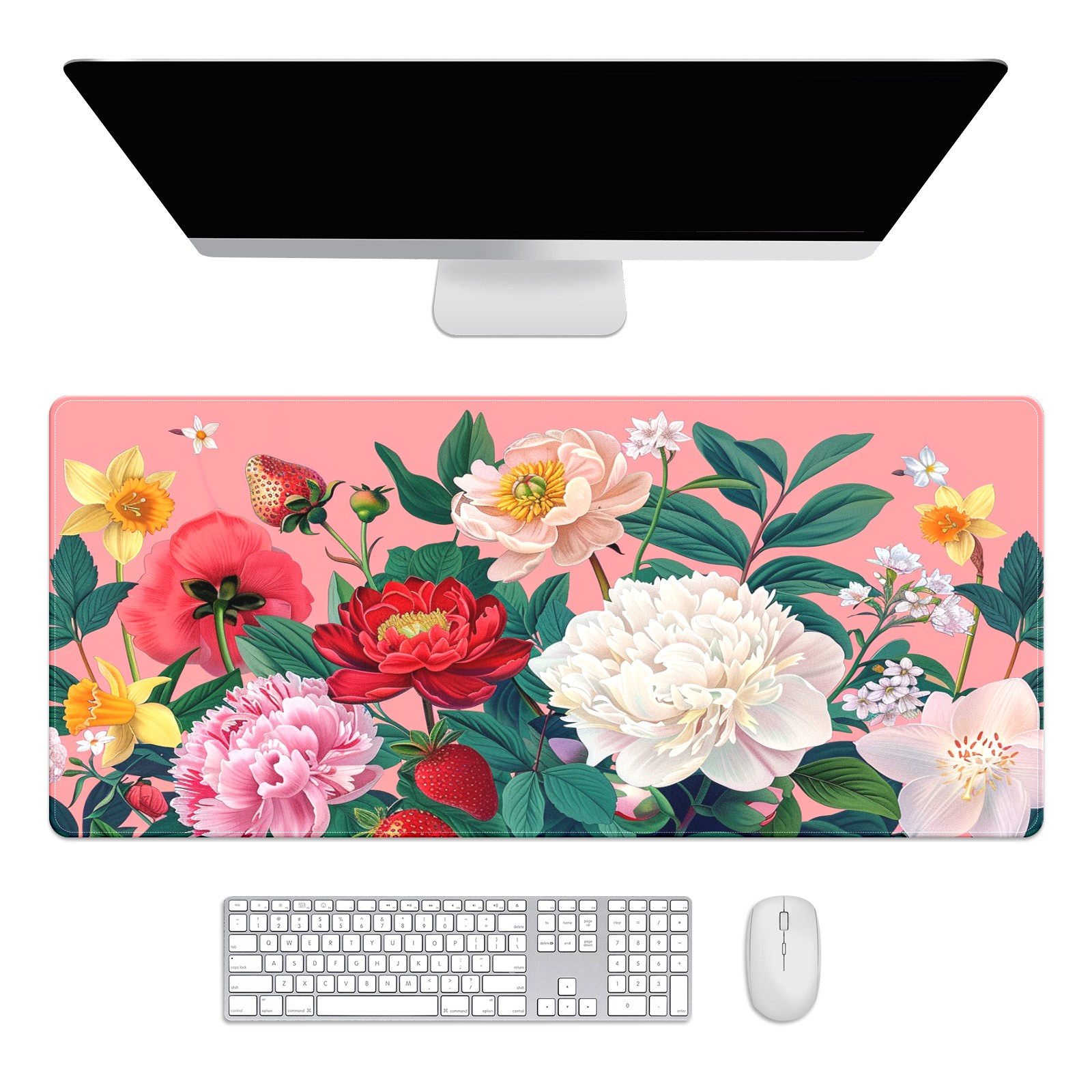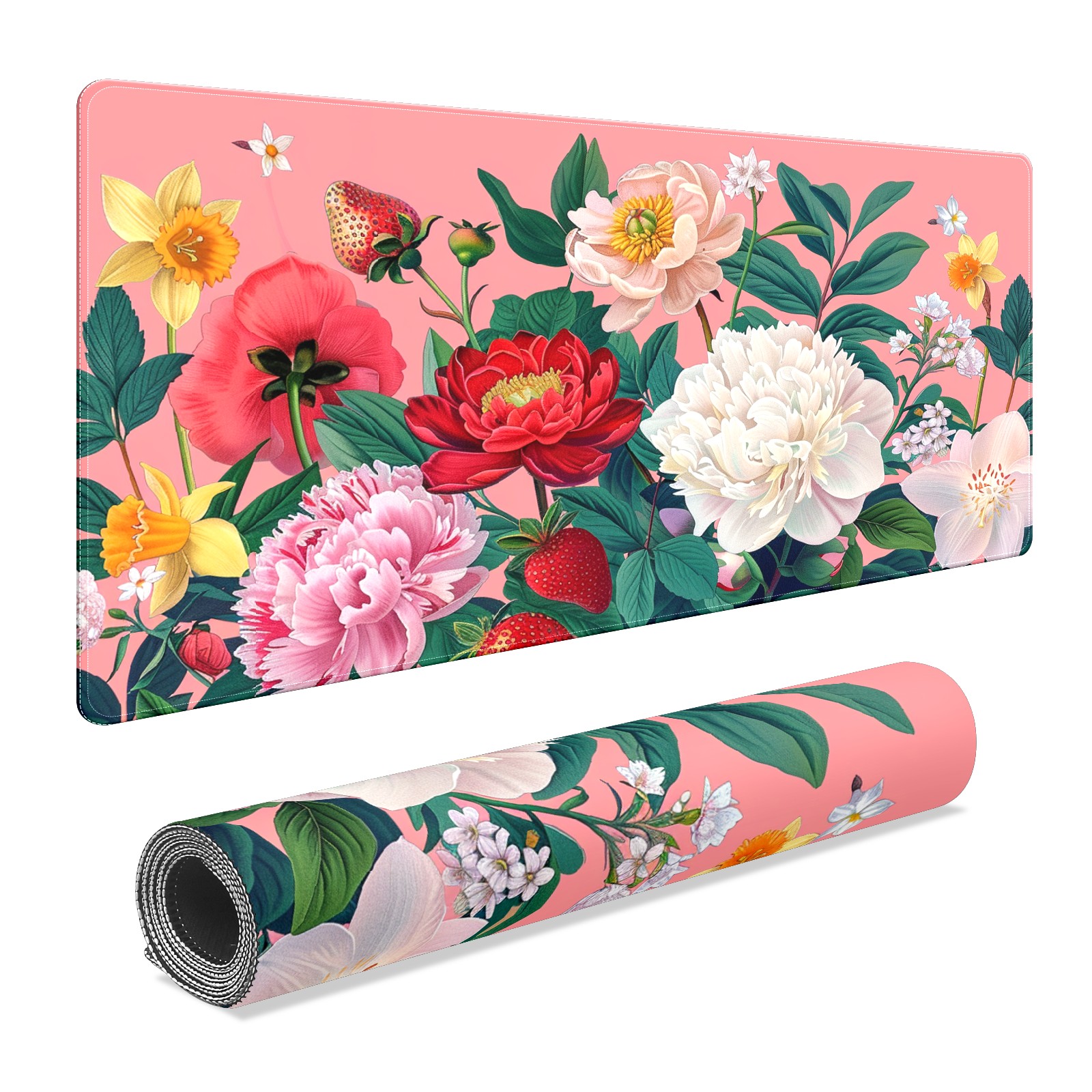 Andemie Garden Flowers On Pink (3) Mouse Pad 35.4'' x 15.7'' Extra Extended Gaming Mousepad Non-Slip Rubber Desk Mat Computer Keyboard Mat for Desk Desktop Mat