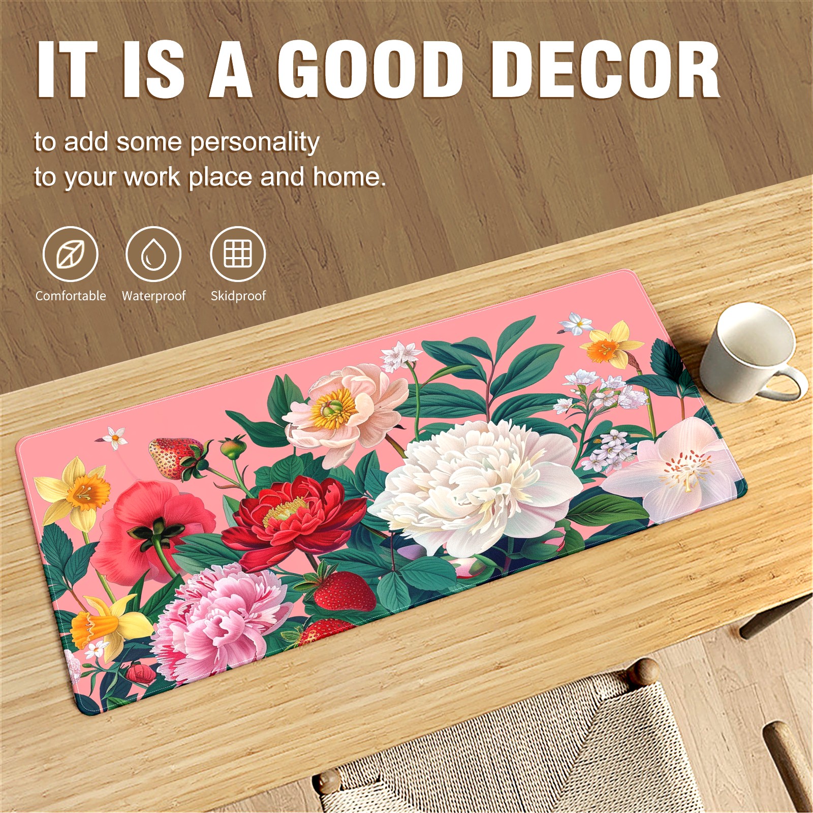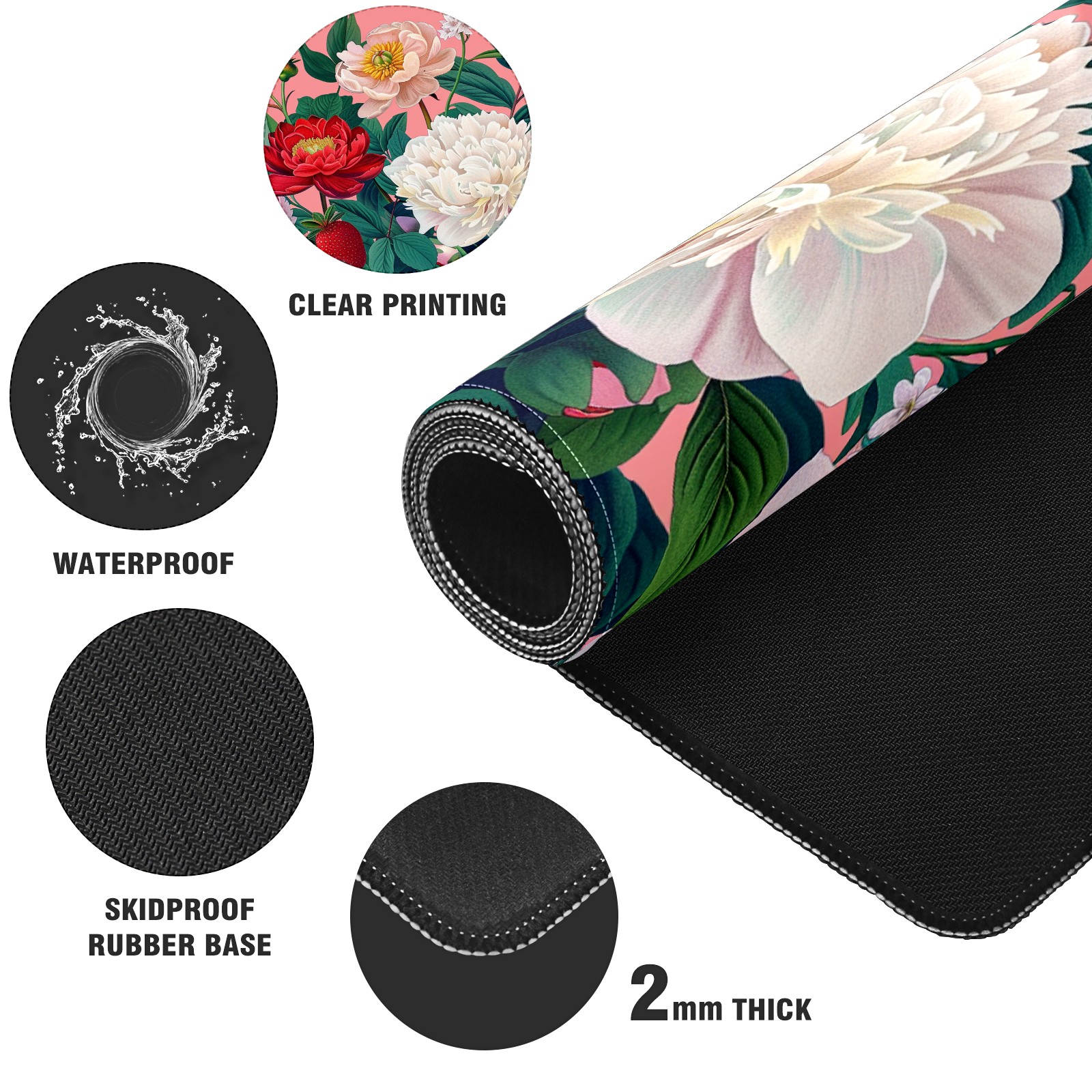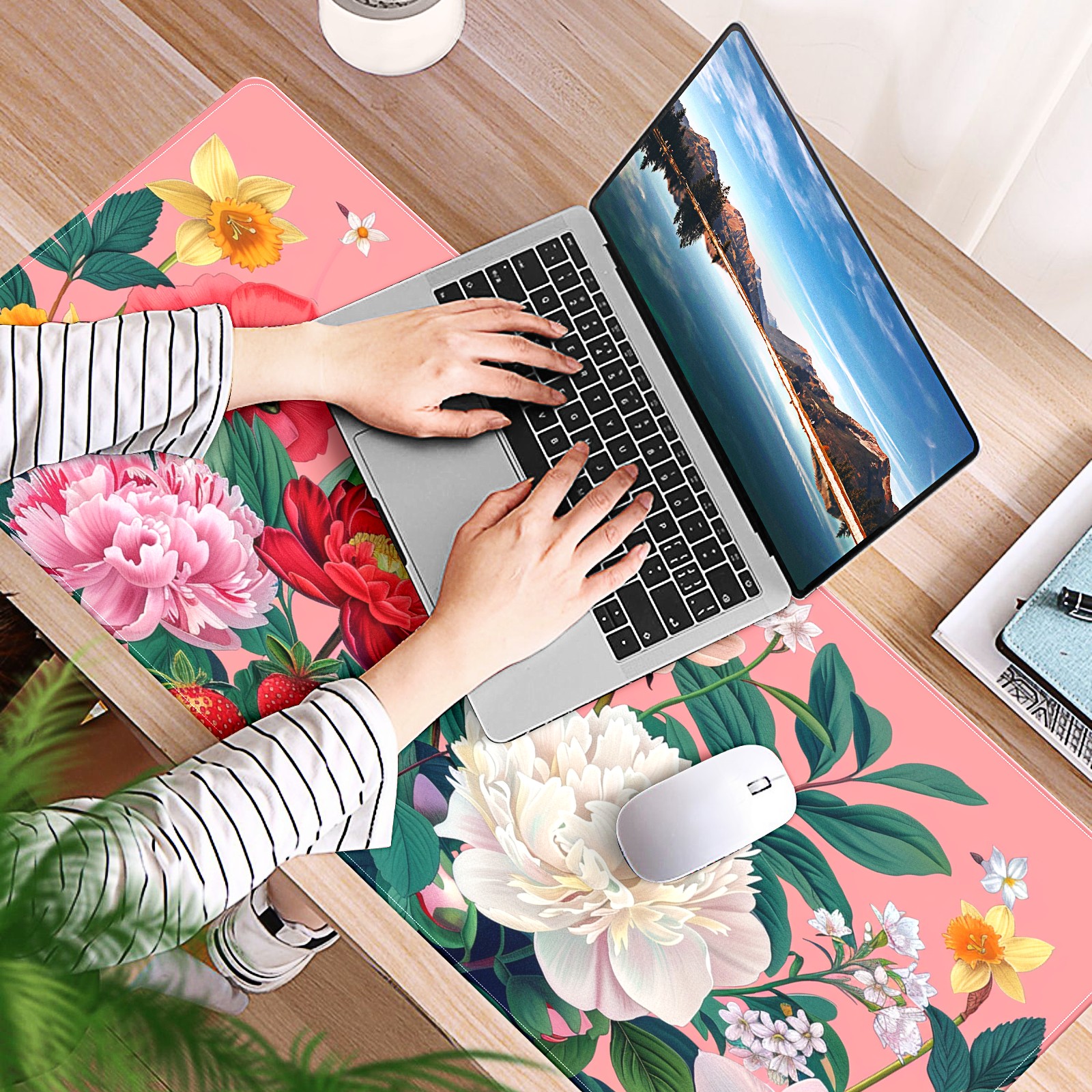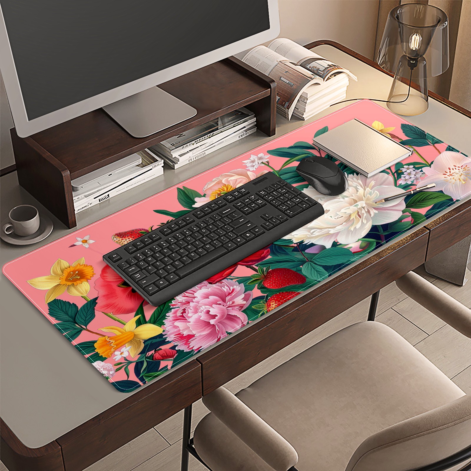 Andemie Garden Flowers On Pink (3) Mouse Pad 35.4'' x 15.7'' Extra Extended Gaming Mousepad Non-Slip Rubber Desk Mat Computer Keyboard Mat for Desk Desktop Mat