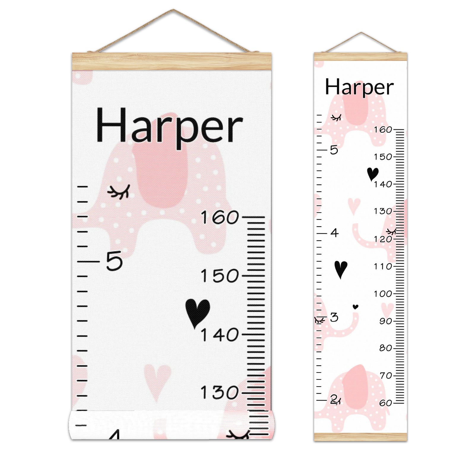 Personalized Kids Name Growth Chart Ruler for Wall Wood Frame Canvas Height Measure Chart 13.4x56 in Hanging Growth Chart Pink Elephant2.22 Boys Girls Room Decor