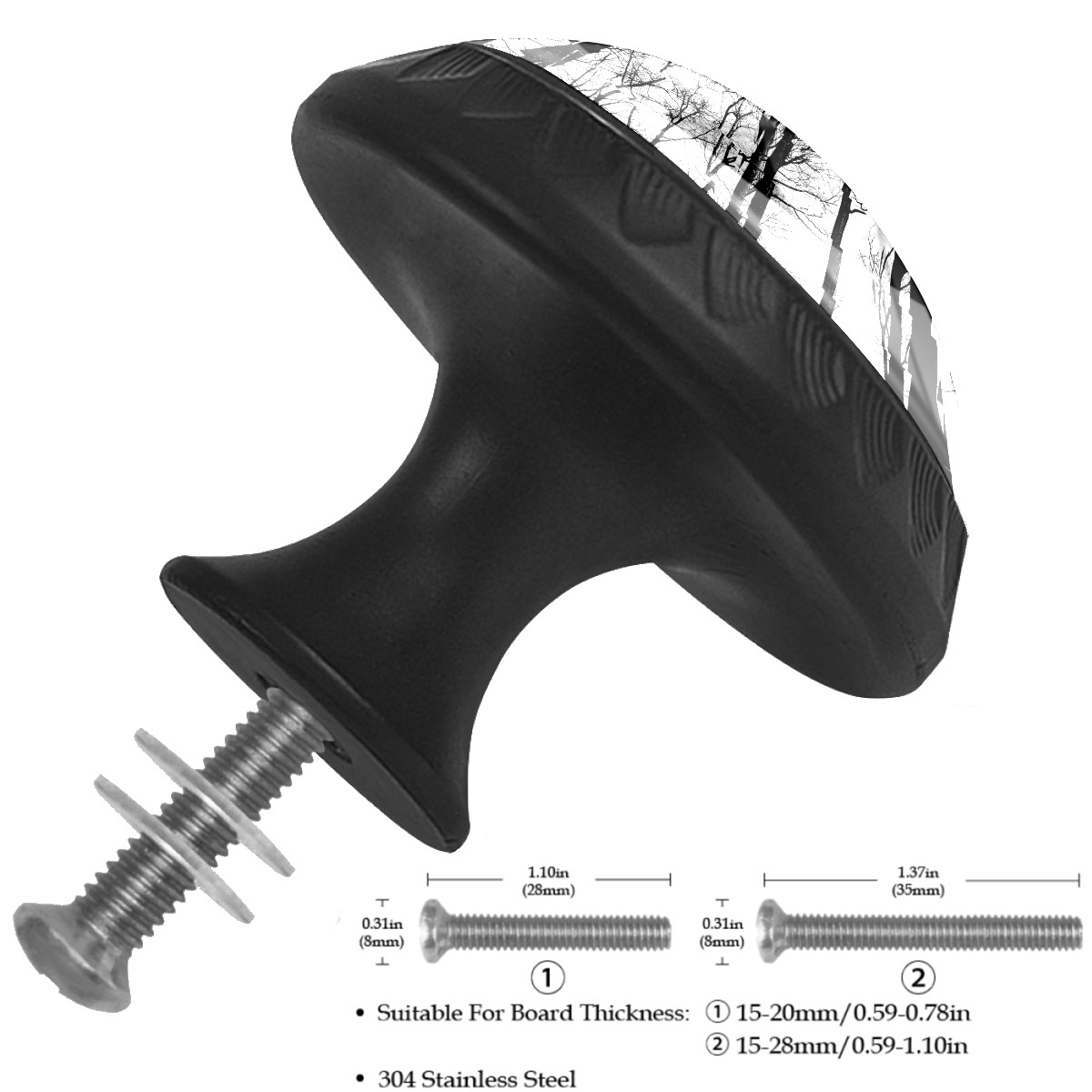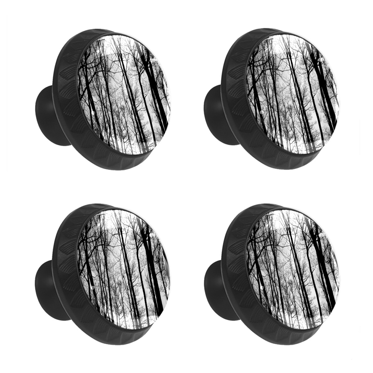 4 Pack Cabinet Knobs Black Forest Trees Branches Drawer Pulls Crystal Glass Round Knobs Handles for Dressers Drawer Bathroom Kitchen Cupboards Wardrobes Hardware Furniture Knobs