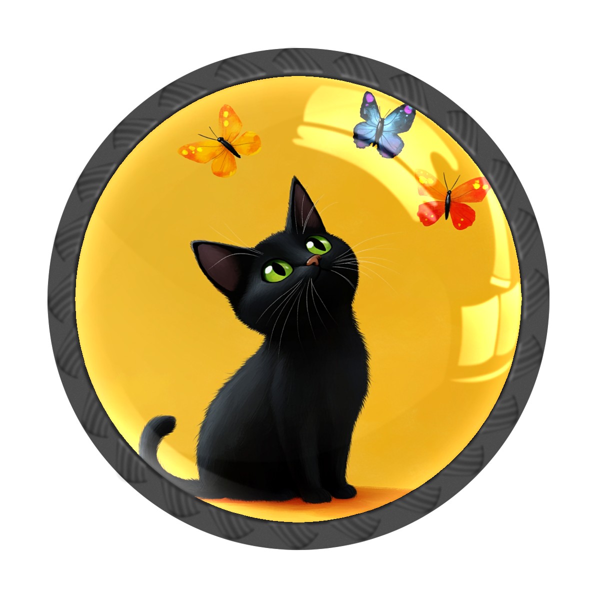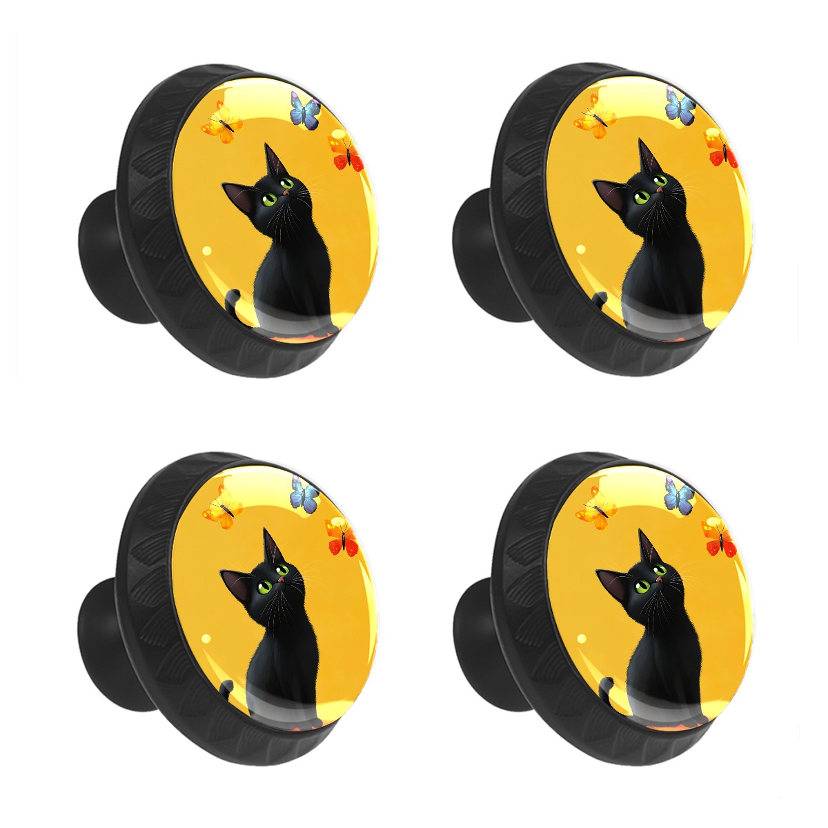 4 Pack Cabinet Knobs Black Cat Drawer Pulls Crystal Glass Round Knobs Handles for Dressers Drawer Bathroom Kitchen Cupboards Wardrobes Hardware Furniture Knobs