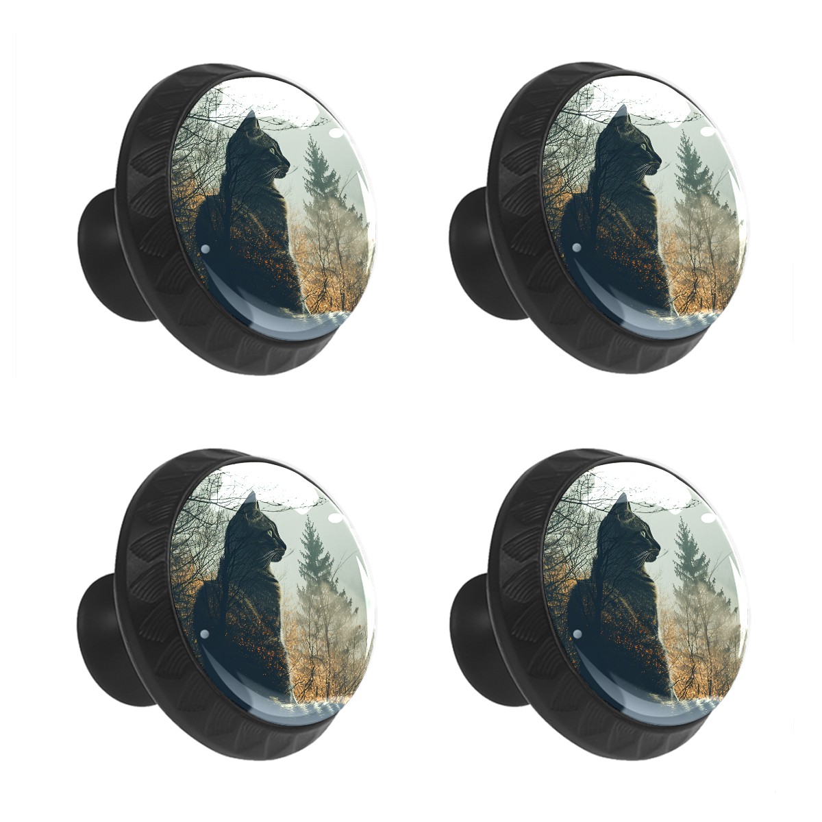 4 Pack Cabinet Knobs Cat Mountain Drawer Pulls Crystal Glass Round Knobs Handles for Dressers Drawer Bathroom Kitchen Cupboards Wardrobes Hardware Furniture Knobs