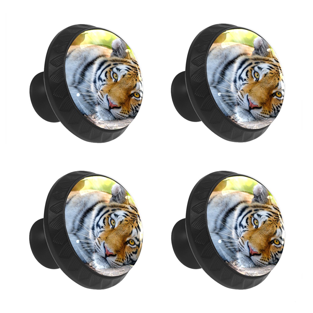 4 Pack Cabinet Knobs Tiger Wild Big Cat Drawer Pulls Crystal Glass Round Knobs Handles for Dressers Drawer Bathroom Kitchen Cupboards Wardrobes Hardware Furniture Knobs