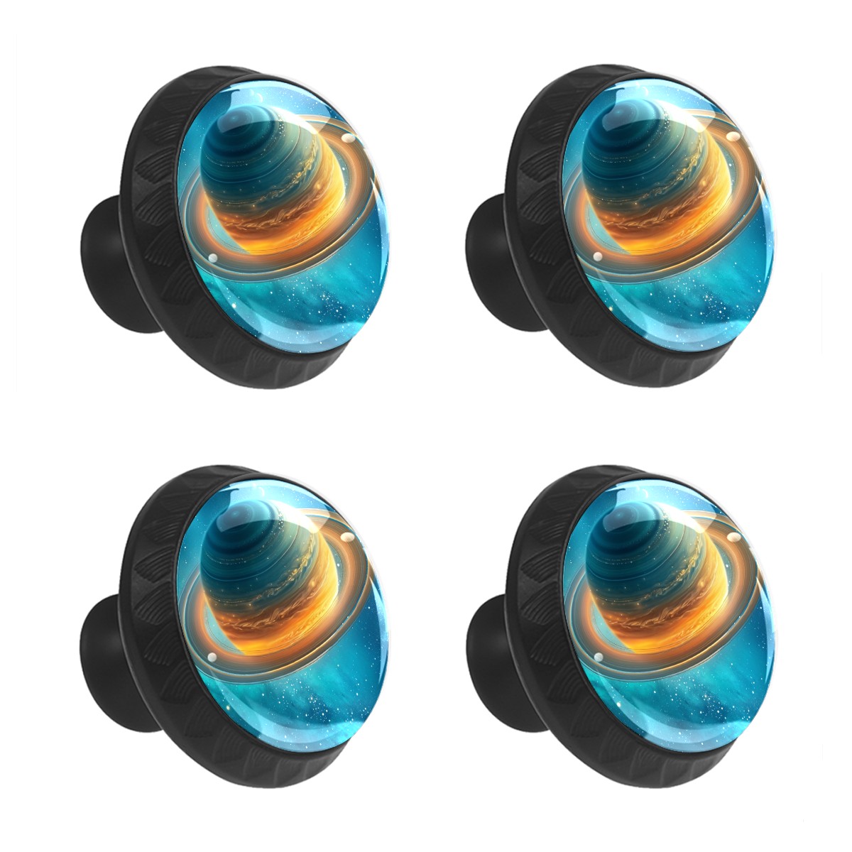 4 Pack Cabinet Knobs Planet Saturn (2) Drawer Pulls Crystal Glass Round Knobs Handles for Dressers Drawer Bathroom Kitchen Cupboards Wardrobes Hardware Furniture Knobs