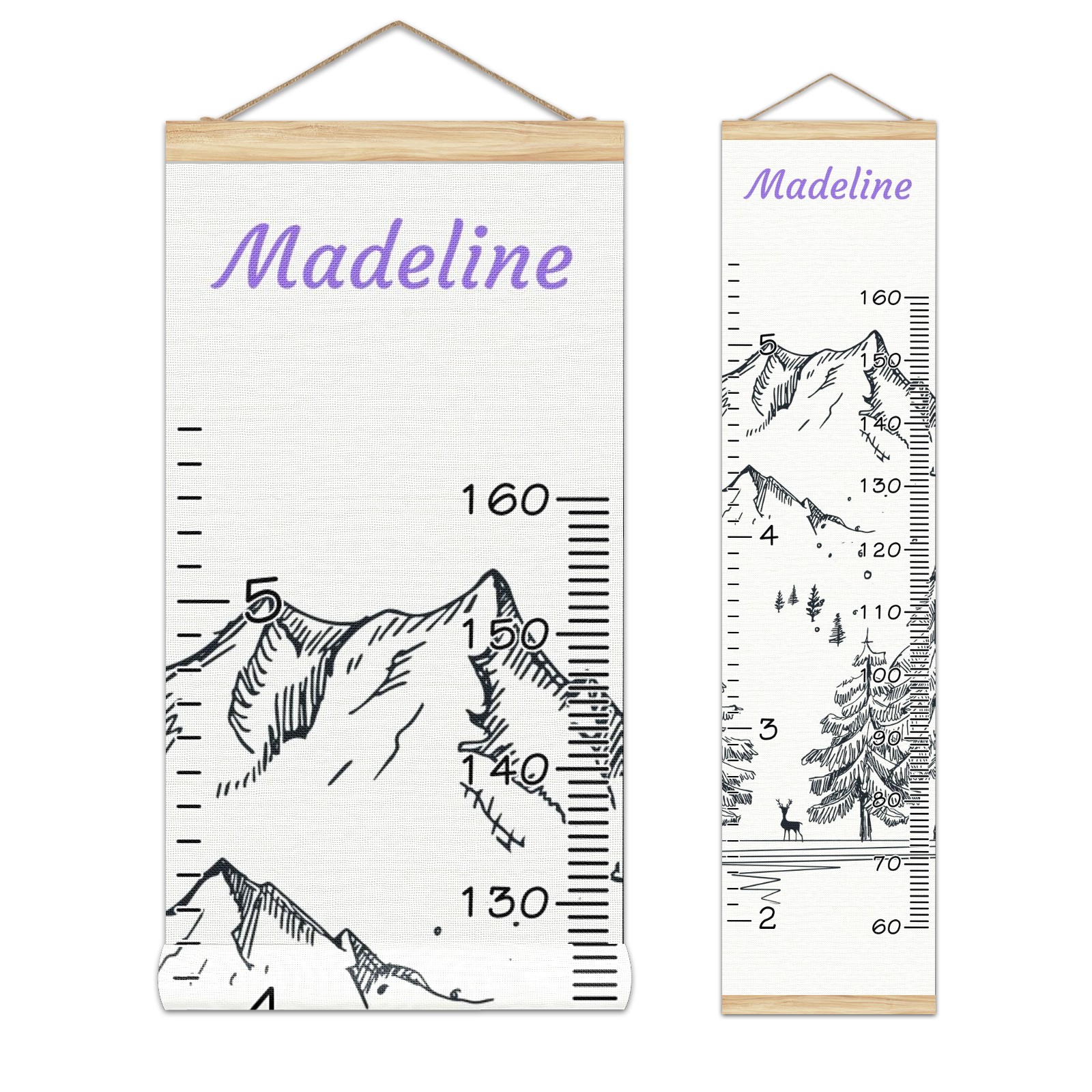 Personalized Kids Name Growth Chart Ruler for Wall Wood Frame Canvas Height Measure Chart 13.4x56 in Hanging Growth Chart Winter Mountain2.24 Boys Girls Room Decor