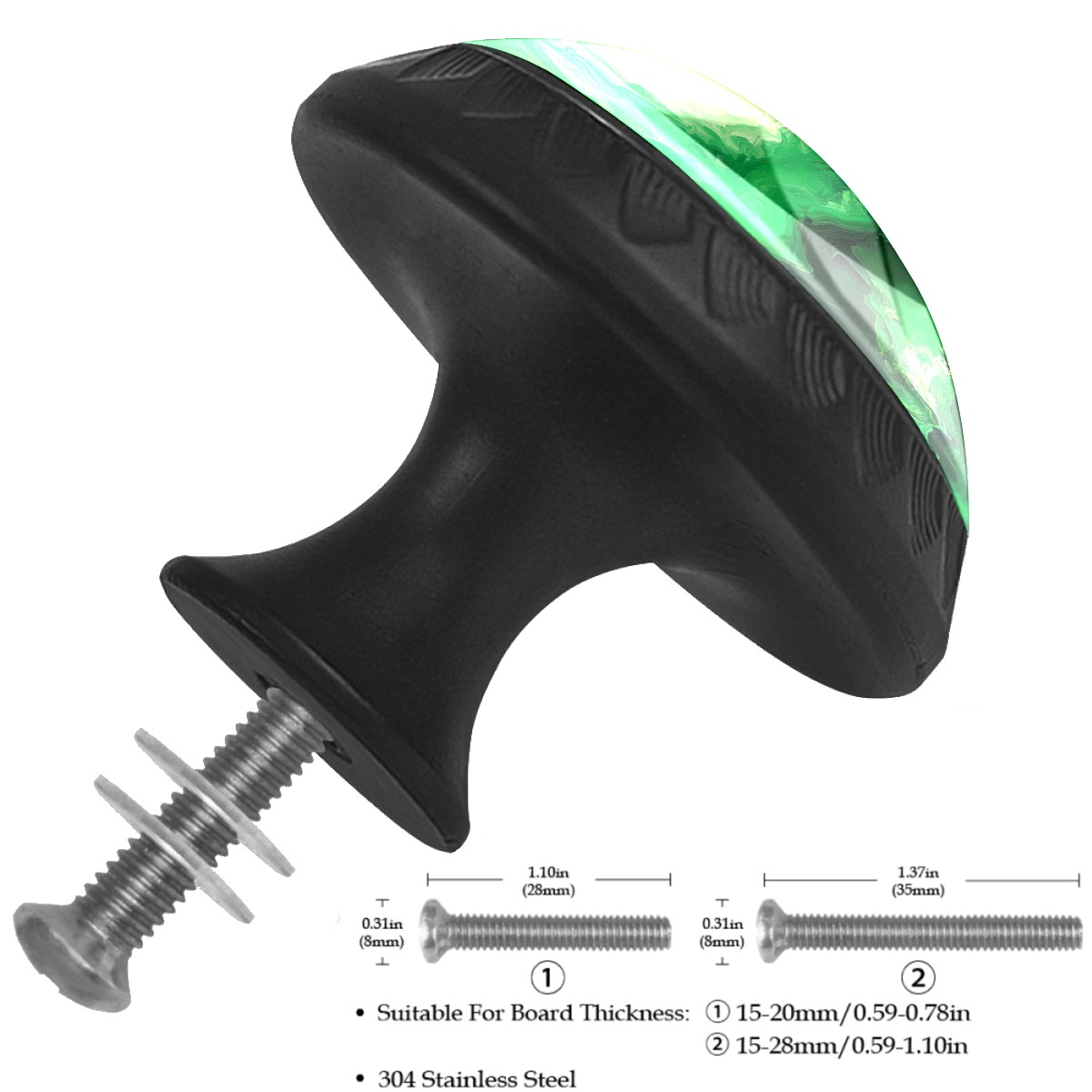 Genhuyiz 4 Pcs Drawer Pulls Knobs Green Marble Cabinet Knobs Pulls Round Crystal Glass Handles Knobs for Kitchen Cabinet and Drawer Dresser Bathroom