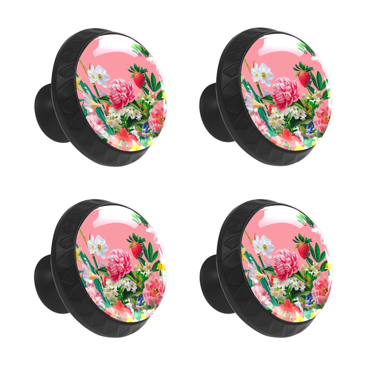 Genhuyiz 4 Pcs Drawer Pulls Knobs Garden Flowers Pink (2) Cabinet Knobs Pulls Round Crystal Glass Handles Knobs for Kitchen Cabinet and Drawer Dresser Bathroom