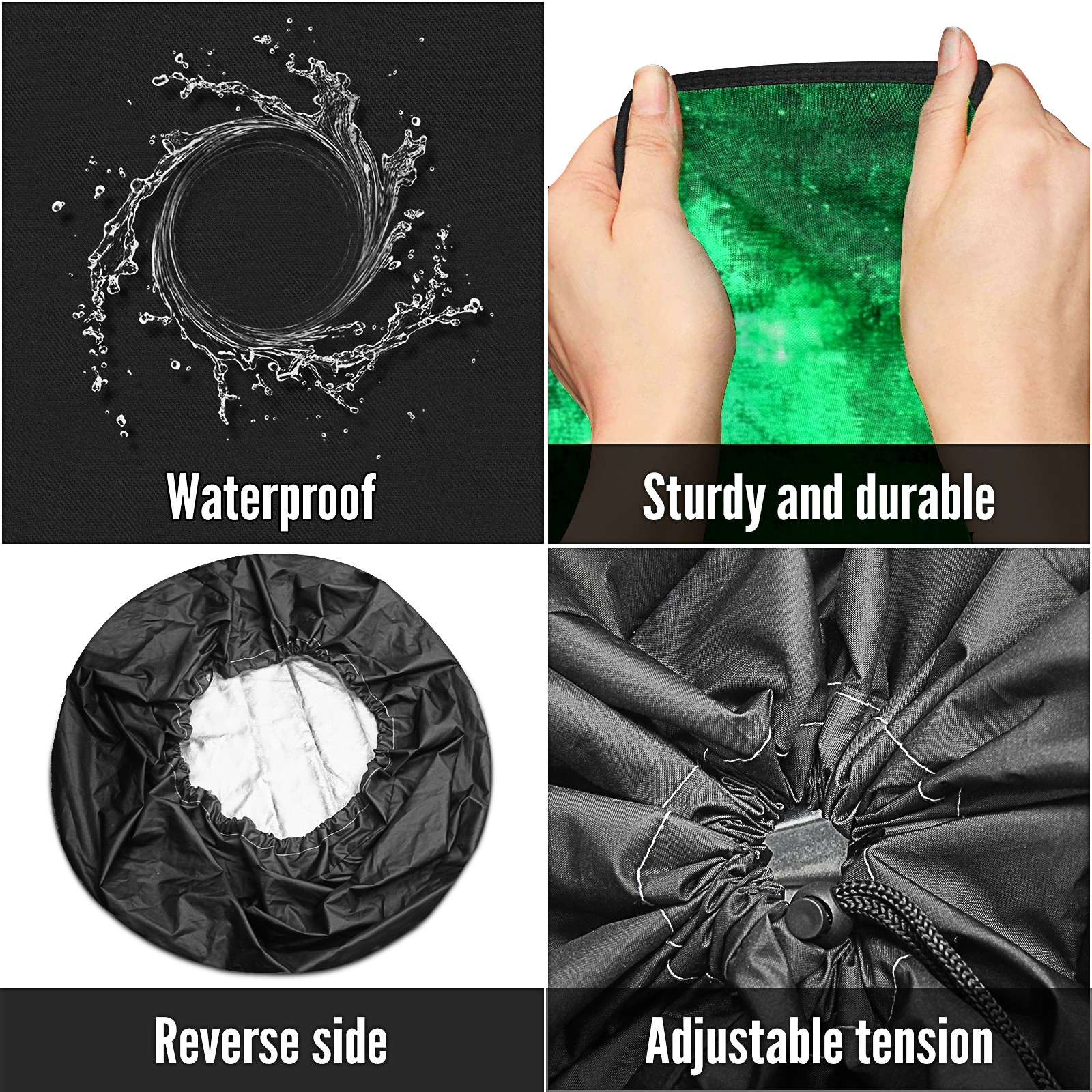 <p>Spare Tire Cover Size</p> <p>Size 14" fits for tire diameter 23"-27"(60~69cm)</p> <p>Size 15" fits for tire diameter 28"-29"(70~74cm)</p> <p>Size 16" fits for tire diameter 30"-31"(75~79cm)</p> <p>Size 17" fits for tire diameter 32"-33"(80~84cm)</p> <p><br></p> <p>- Premium Material: Our spare tire cover is made of high-quality polyester fabric, ensuring durability and waterproof performance. Protect your spare tires from rain, wind, dust, UV rays, and other harsh weather conditions.</p> <p>- Multifunctional Use: Our trailer spare tire cover is suitable for trailers, RVs, SUVs, campers, trucks, and other vehicles. Keep your spare tires clean, prevent corrosion, and prolong their lifespan.</p> <p>- Easy to Use: Our tire covers for trailers can be effortlessly fitted and securely fastened with the adjustable nylon cord, preventing it from slipping off. </p> <p>- Reliable After-Sales Service: We stand behind the quality of our product. If you encounter any issues with our spare tire cover, please feel free to contact us. We will provide a satisfacto</p>