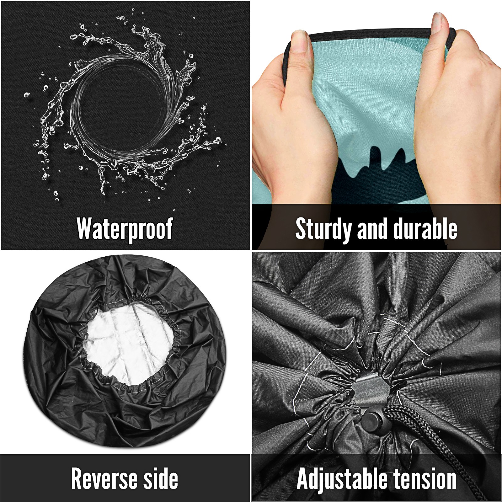 • <p>Spare Tire Cover Size</p> <p>Size 14" fits for tire diameter 23"-27"(60~69cm)</p> <p>Size 15" fits for tire diameter 28"-29"(70~74cm)</p> <p>Size 16" fits for tire diameter 30"-31"(75~79cm)</p> <p>Size 17" fits for tire diameter 32"-33"(80~84cm)</p> <p><br></p> <p>- Premium Material: Our spare tire cover is made of high-quality polyester fabric, ensuring durability and waterproof performance. Protect your spare tires from rain, wind, dust, UV rays, and other harsh weather conditions.</p> <p>- Multifunctional Use: Our trailer spare tire cover is suitable for trailers, RVs, SUVs, campers, trucks, and other vehicles. Keep your spare tires clean, prevent corrosion, and prolong their lifespan.</p> <p>- Easy to Use: Our tire covers for trailers can be effortlessly fitted and securely fastened with the adjustable nylon cord, preventing it from slipping off. </p> <p>- Reliable After-Sales Service: We stand behind the quality of our product. If you encounter any issues with our spare tire cover, please feel free to contact us. We will provide a satisfacto</p>