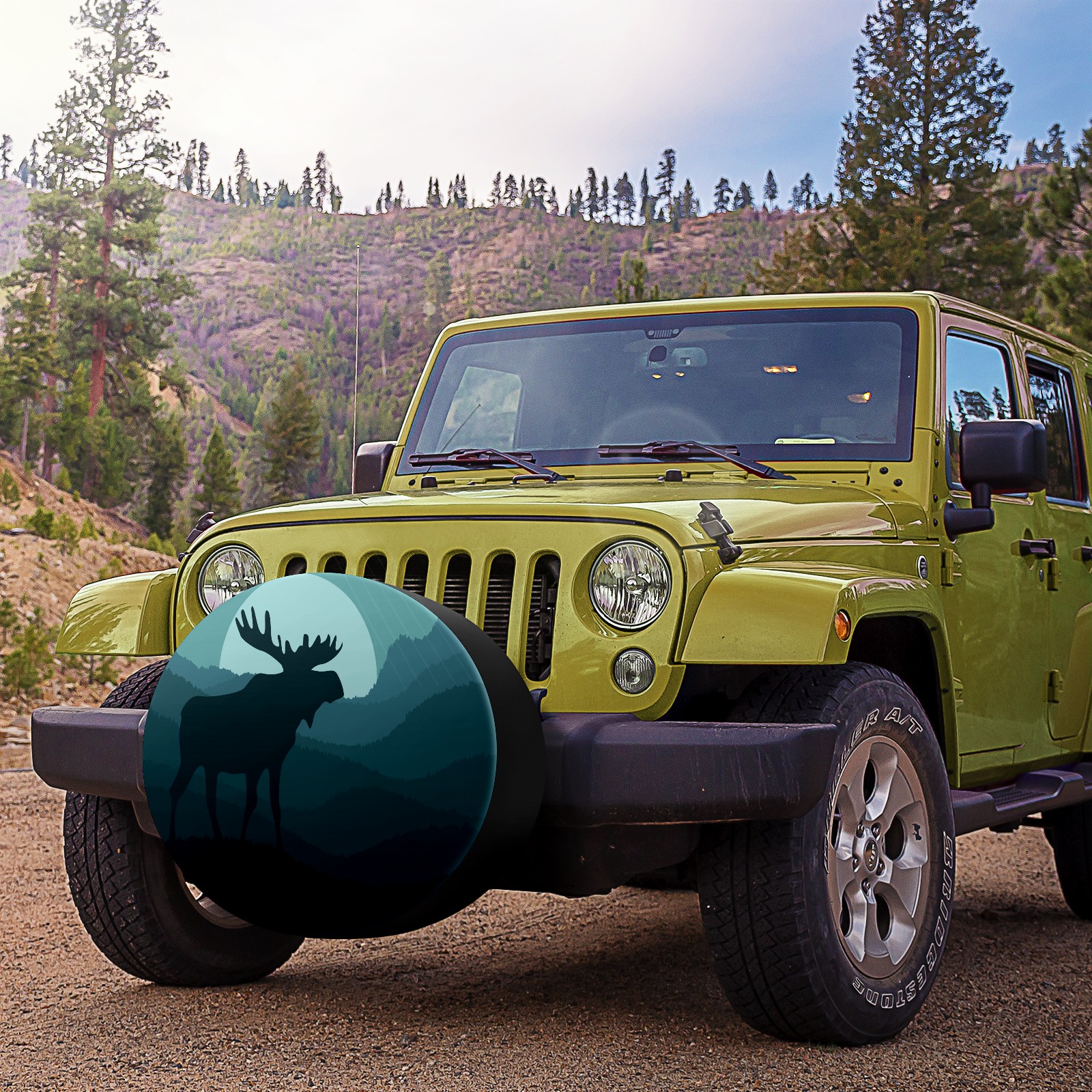 Spare Tire Cover Silhouette Moose Tire Cover 14 Inch for Trailer SUV RV Camper Waterproof Wheel Protectors (for Wheel Diameter 23''-27'') Car Accessories