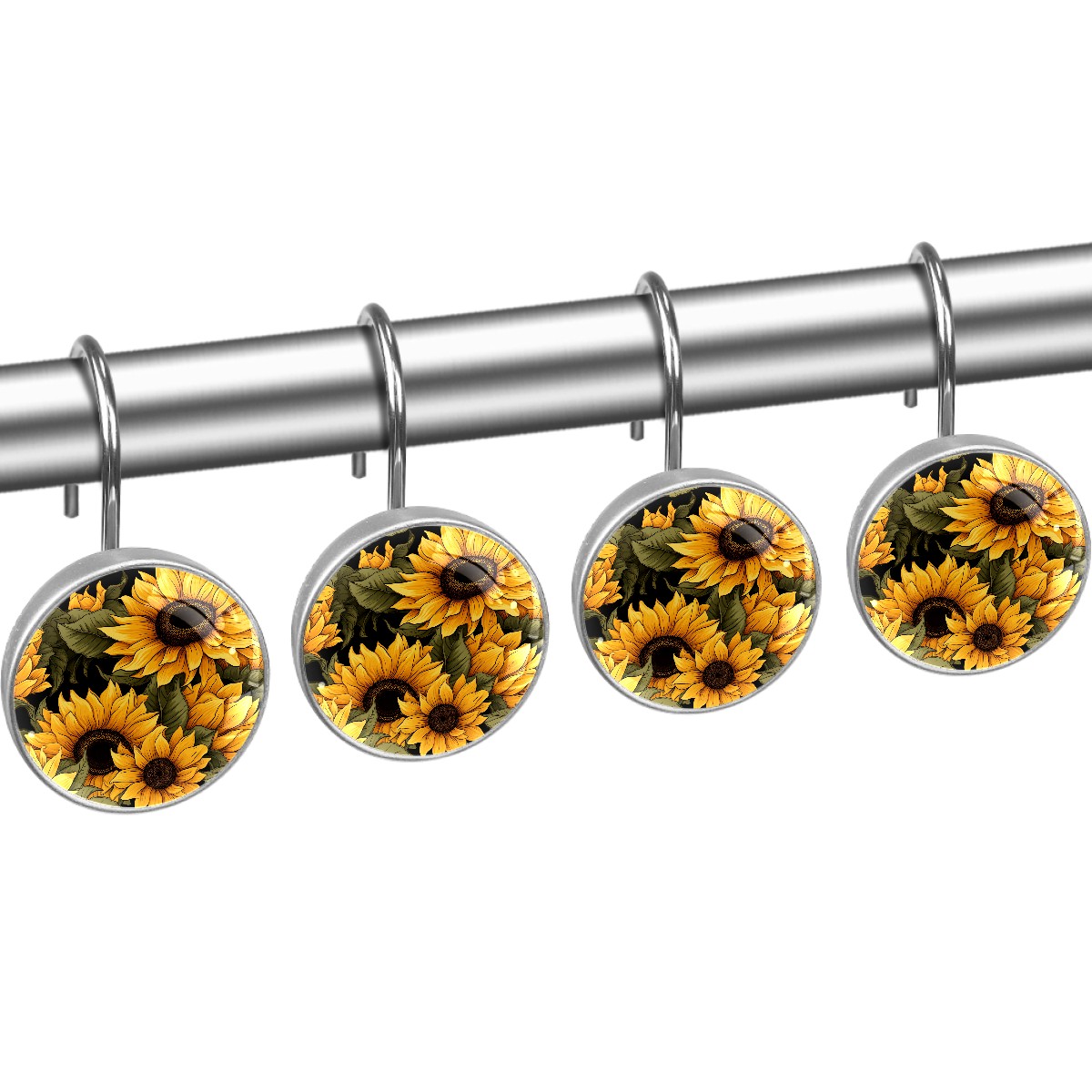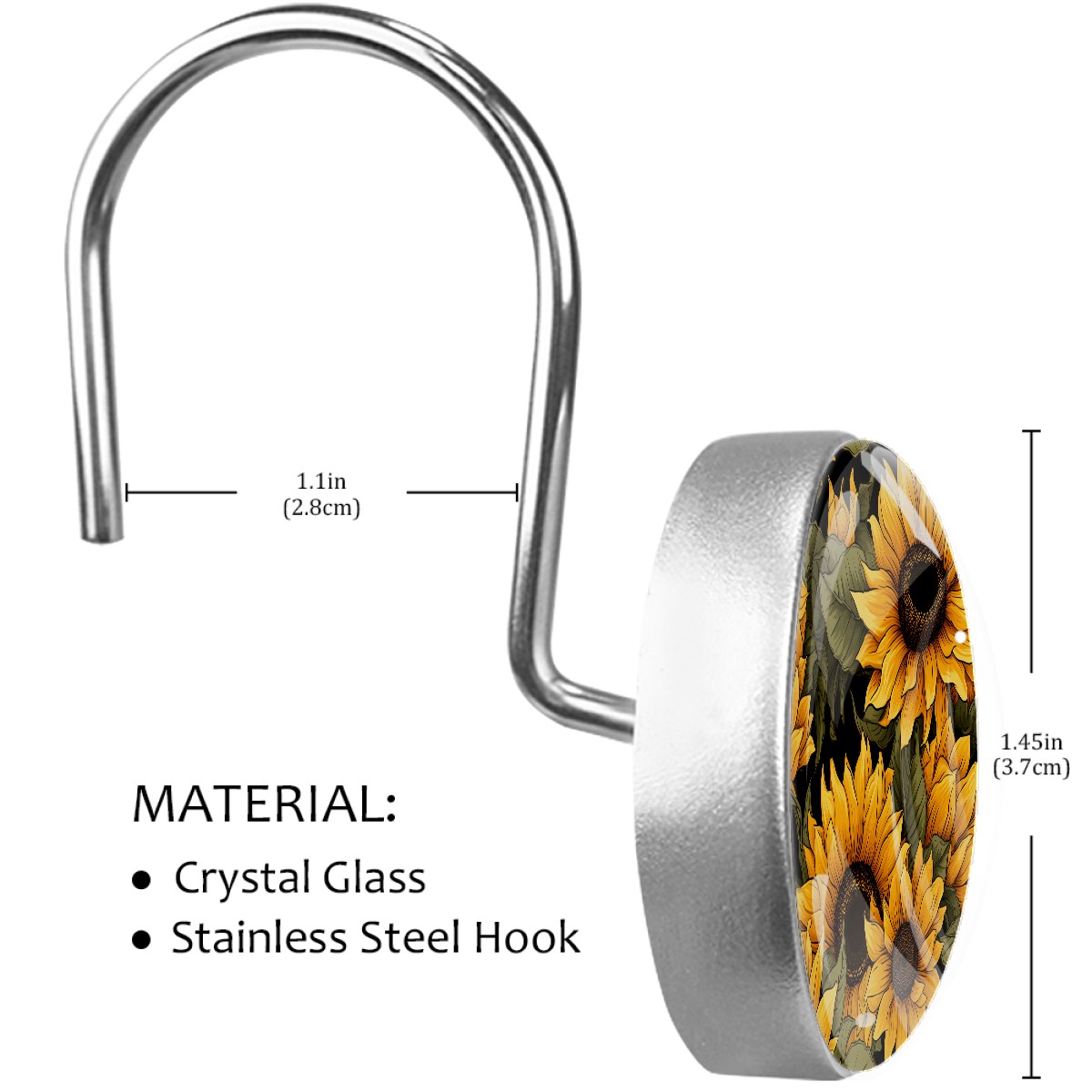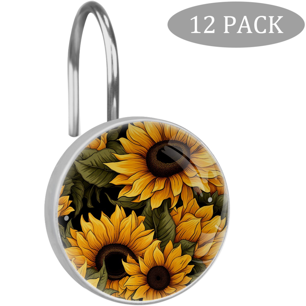 Decorative Yellow Sunflowers (2) Shower Curtain Hooks 12pcs Crystal Glass Rustproof Shower Hooks for Bathroom Home Decor Stainless Steel Resin Shower Curtain Rings
