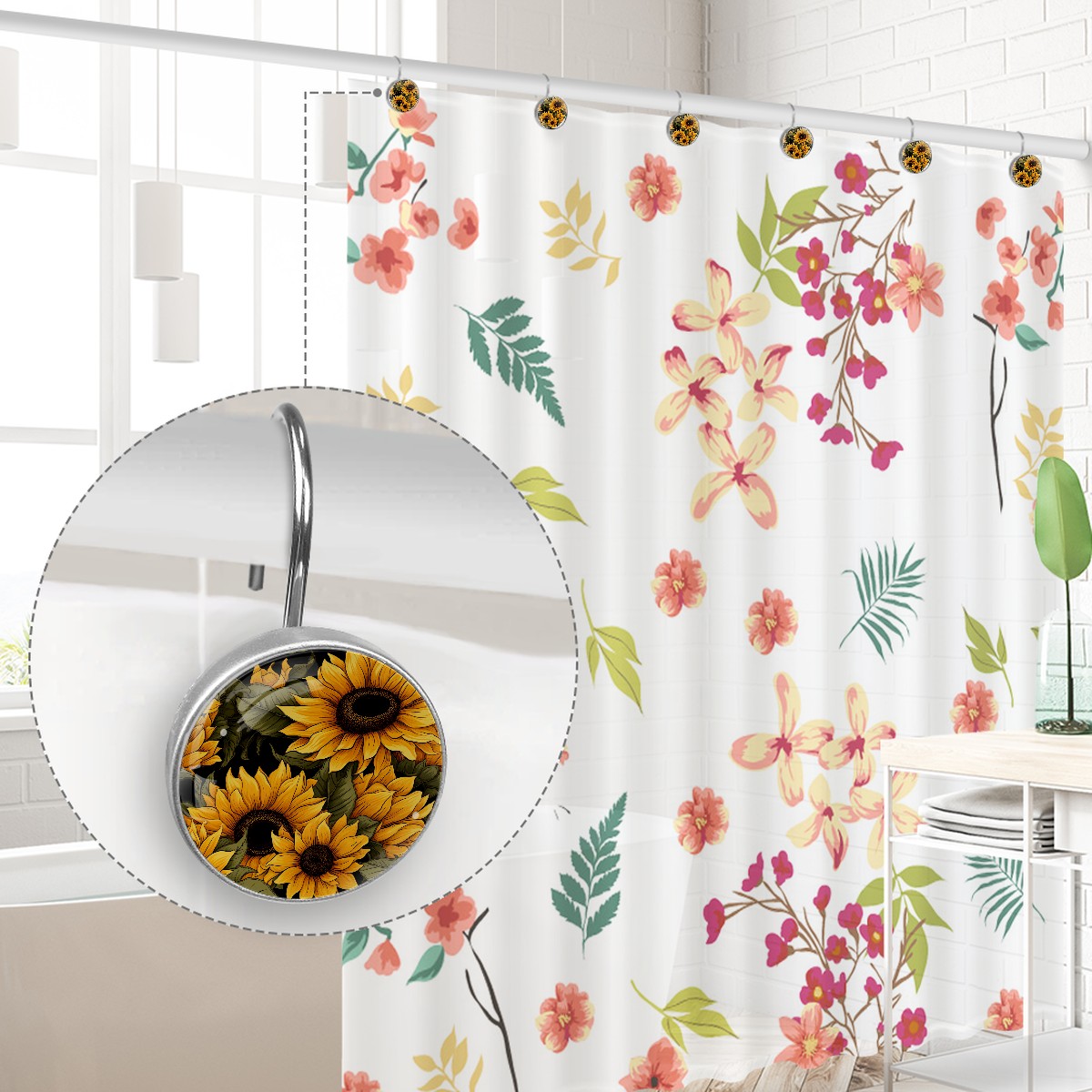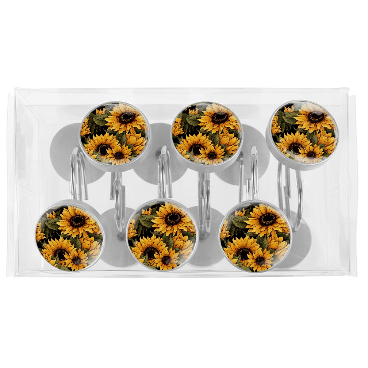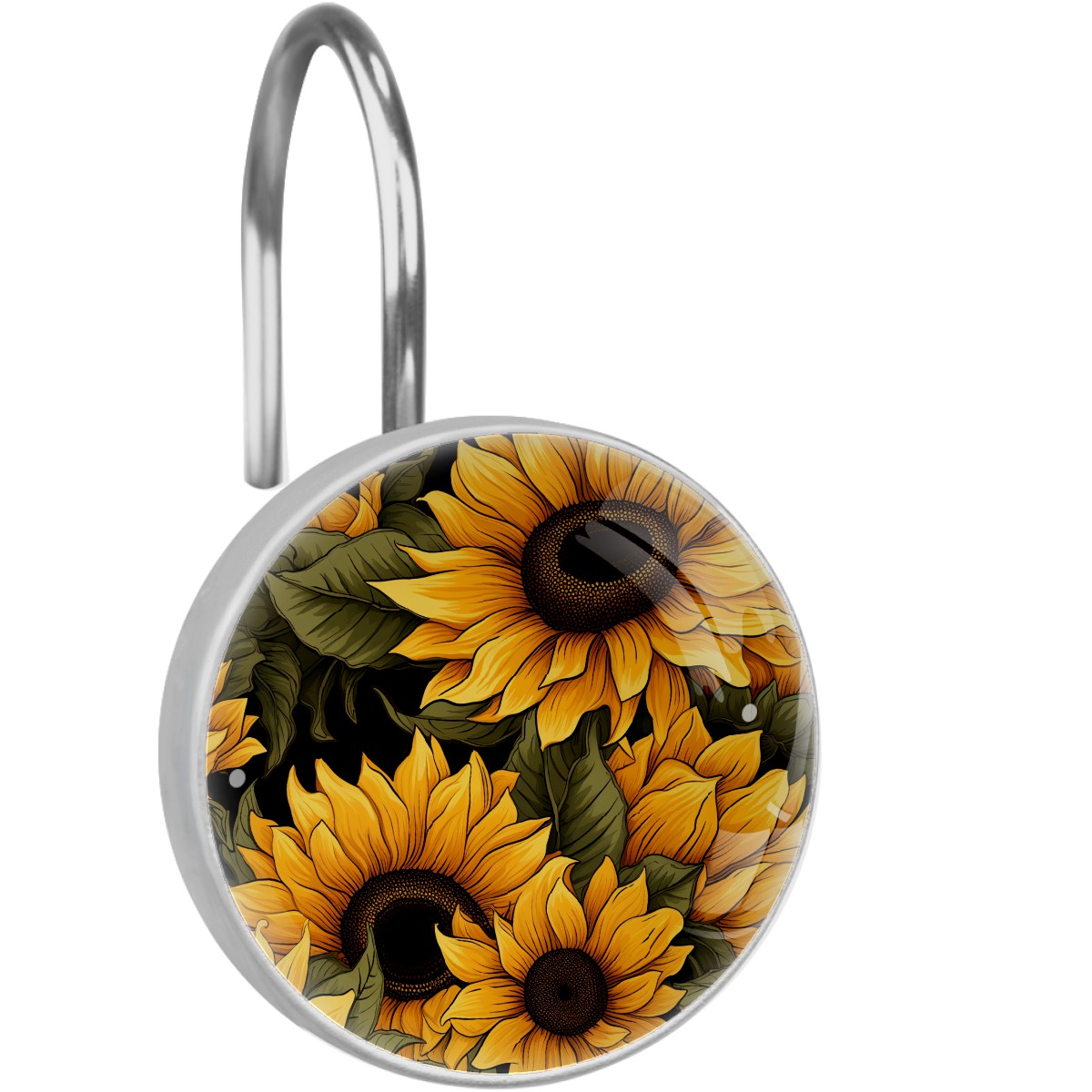 Decorative Yellow Sunflowers (2) Shower Curtain Hooks 12pcs Crystal Glass Rustproof Shower Hooks for Bathroom Home Decor Stainless Steel Resin Shower Curtain Rings