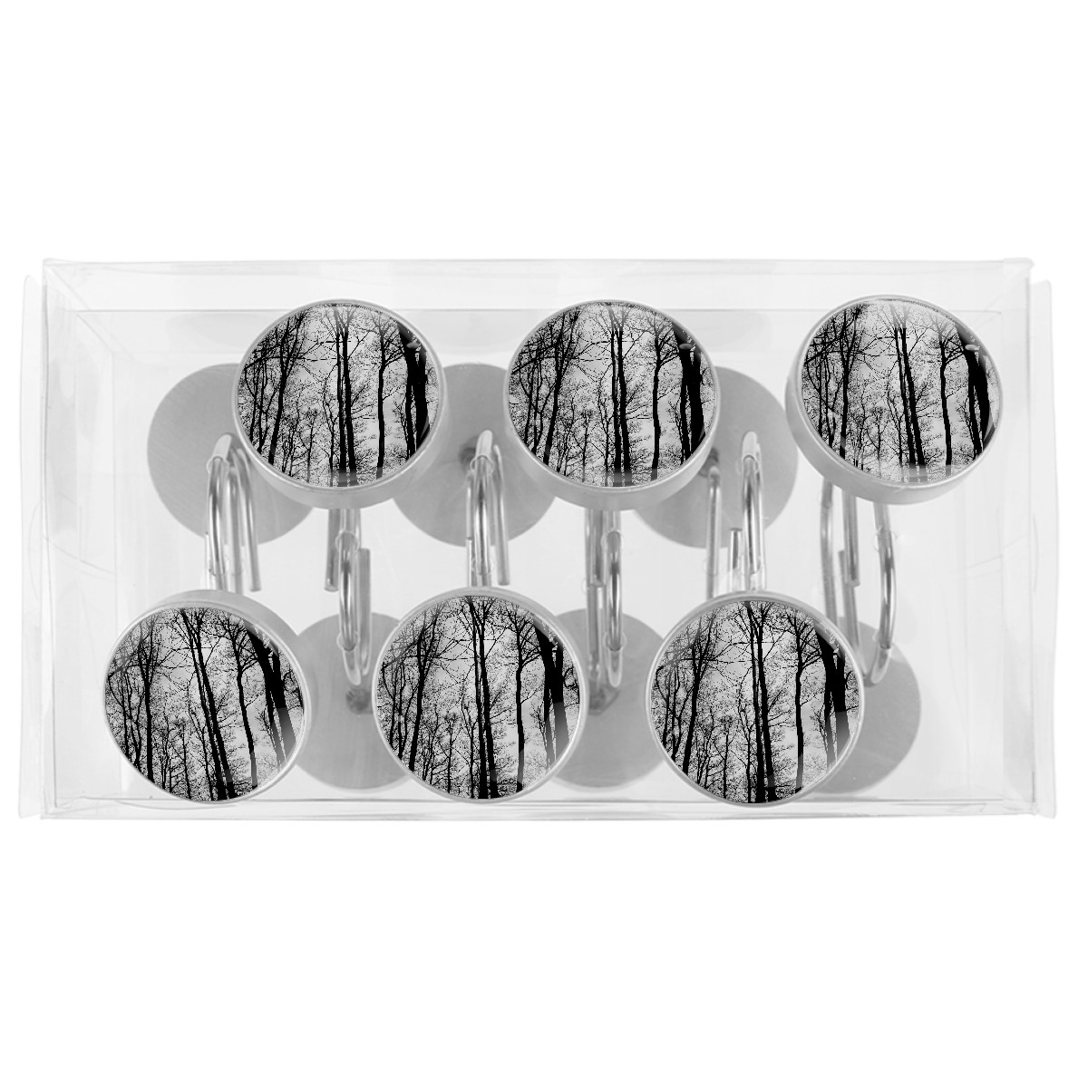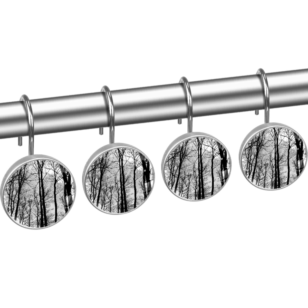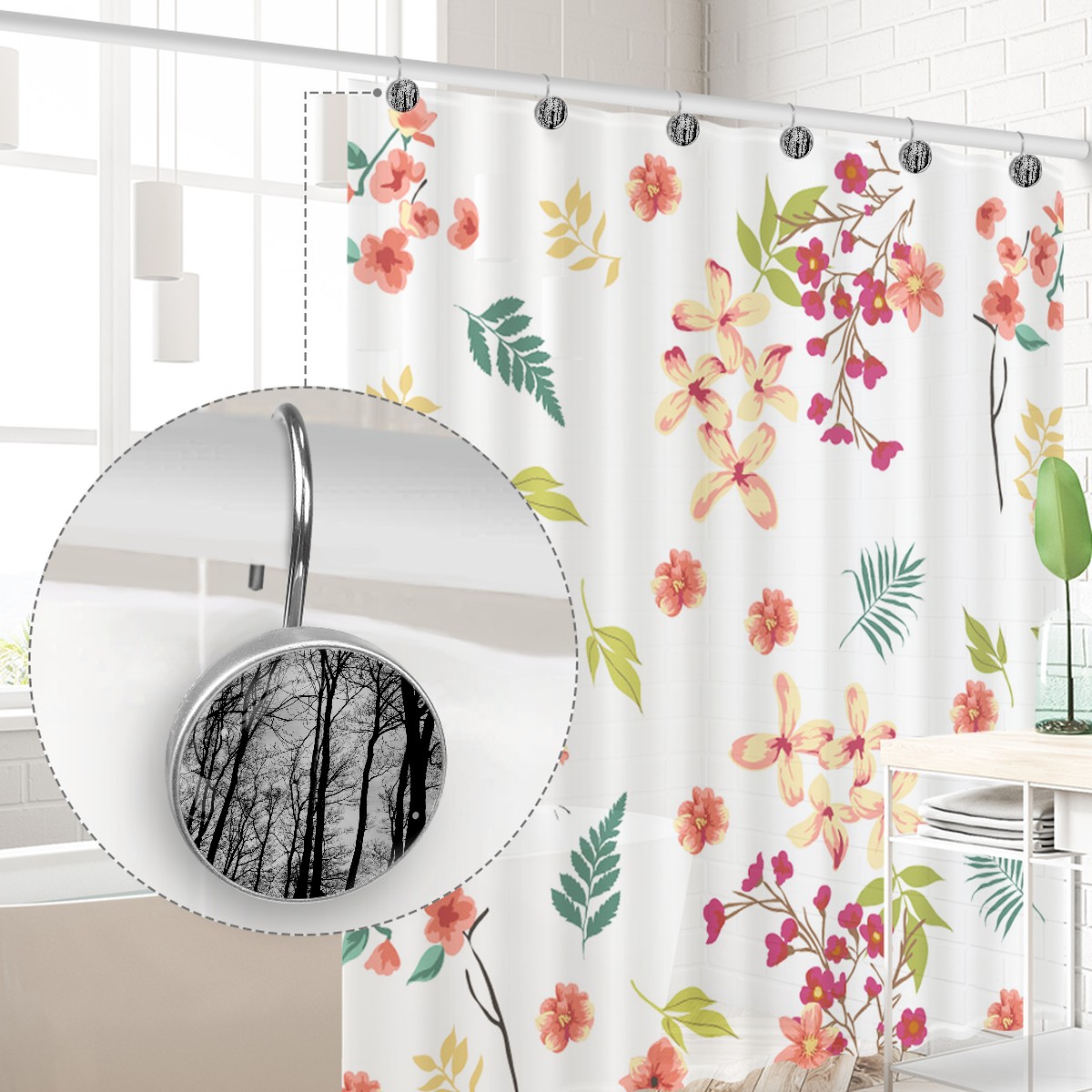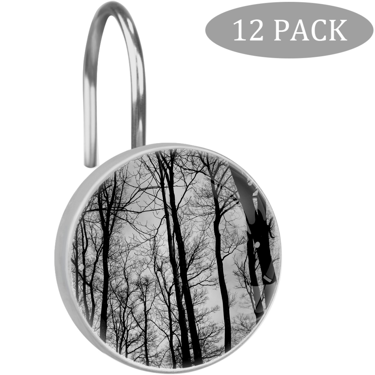 Decorative Black Forest Trees Branches Shower Curtain Hooks 12pcs Crystal Glass Rustproof Shower Hooks for Bathroom Home Decor Stainless Steel Resin Shower Curtain Rings