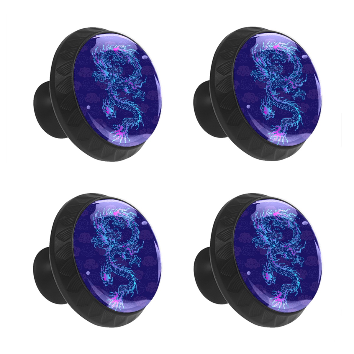 4 Pack Cabinet Knobs Vinatge Dragon Navy Blue Drawer Pulls Crystal Glass Round Knobs Handles for Dressers Drawer Bathroom Kitchen Cupboards Wardrobes Hardware Furniture Knobs