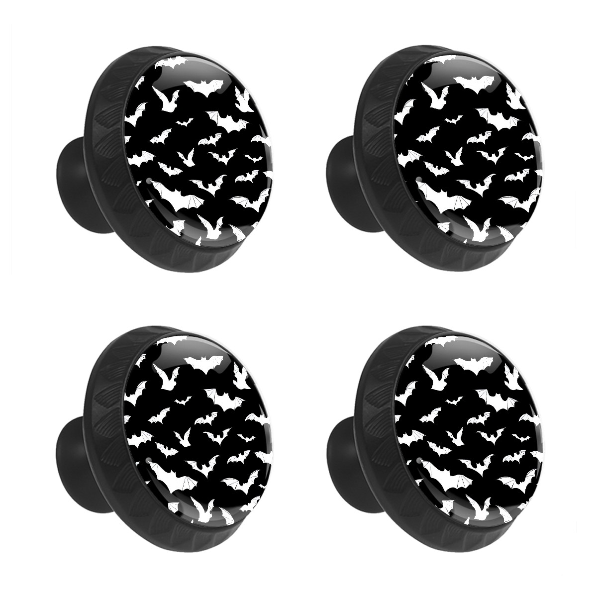 4 Pack Cabinet Knobs Gothic Black White Bats Drawer Pulls Crystal Glass Round Knobs Handles for Dressers Drawer Bathroom Kitchen Cupboards Wardrobes Hardware Furniture Knobs