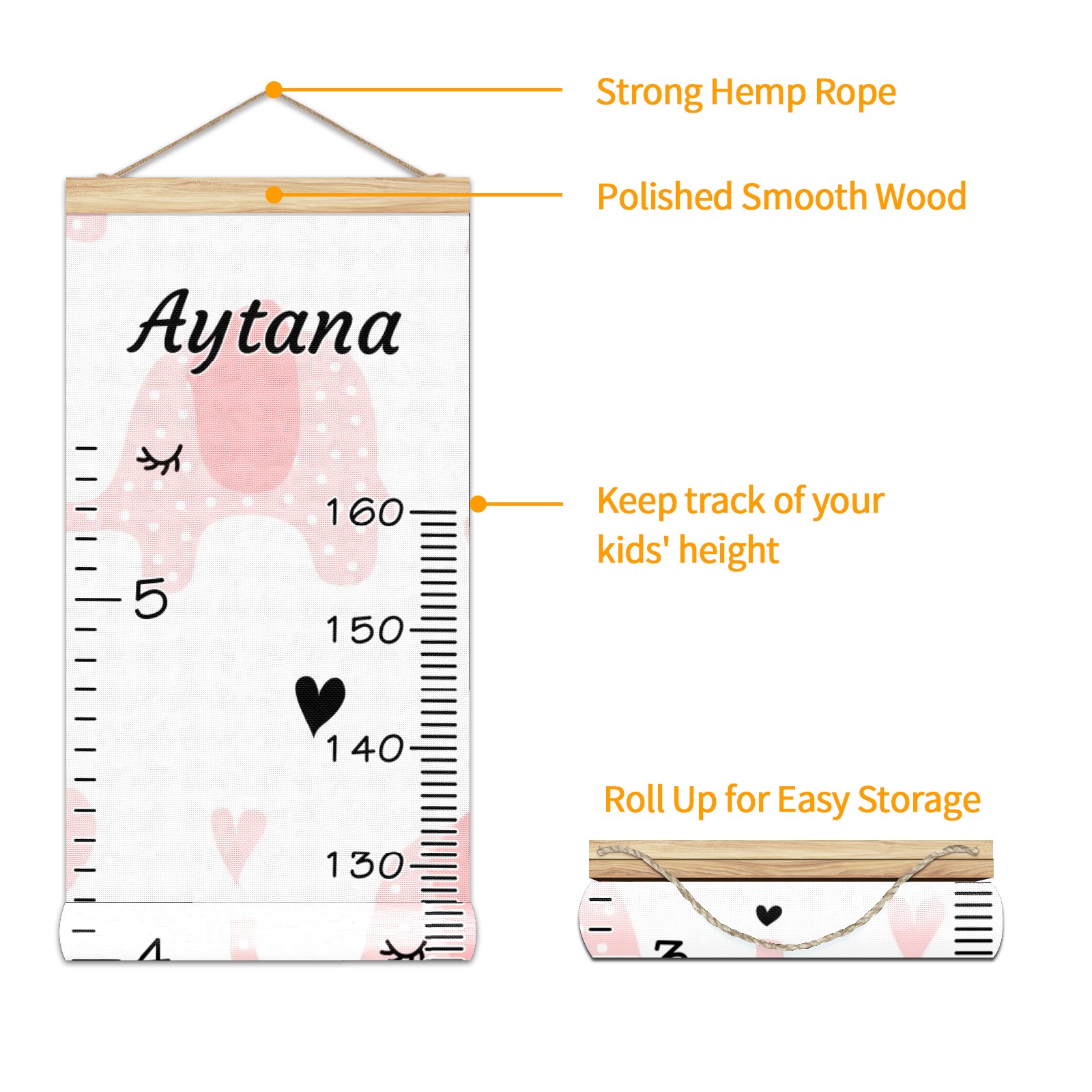 <p><b>Baby height growth chart can be used anywhere</b></p><p>Ideal for kids nursery decoration, kids bedroom, interior walls or windows, playroom, living room, homedecoration.Add name and make the growth chart special!</p><p><br></p><p><b>Easy to fold and carry</b></p><p>With rope at the top of the growth chart, it is easy to install and remove.You can fold it and unfold any time any where.</p><p><br></p><p><b>Perfect Gift Idea for Kids</b></p><p>Environmental and non-toxic for kids use, it must be a perfect gift for baby, kids, girls, and boys.This is a best choice for your friend who have kids or baby as a popular gift.</p><p><br></p><p><b>Easy to read</b></p><p>Measurement accrate with 2 scales, Centimeters and feet. The letters are big enough, very easy to read.</p><p><br></p><p><b>60cm(23.6inch) Over Ground Design</b></p><p>Not only can protect from dust and other damage, but also will not interfere in floor cleaning.</p><p><br></p><p><b>Features:</b></p><p>Rope for Hanging</p><p>Material: Linen + Wood</p><p>Dimensions: 13.4x56 inches</p><p>Weight: 7.5 once</p><p>Package Included: 1 * Baby Growth Chart</p>