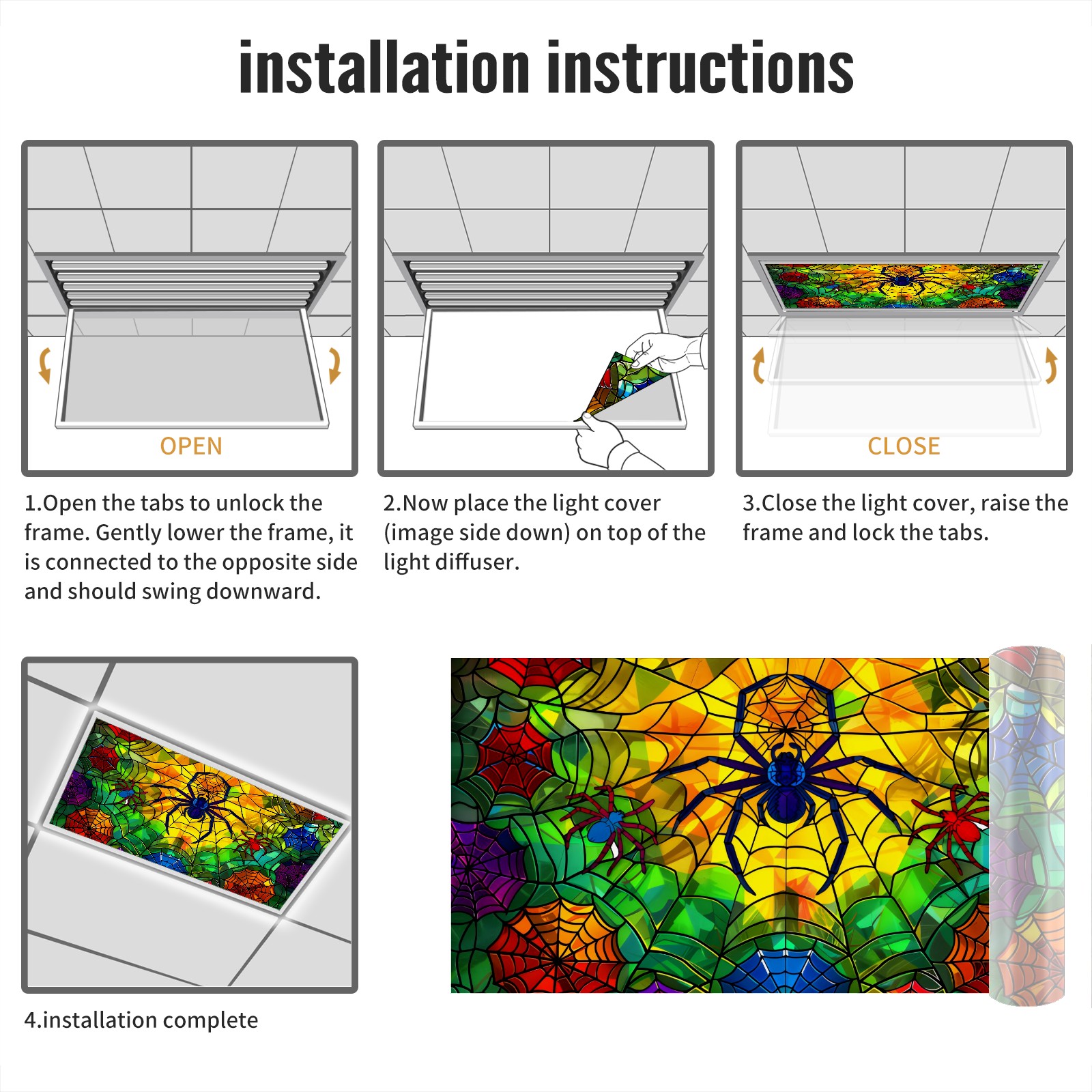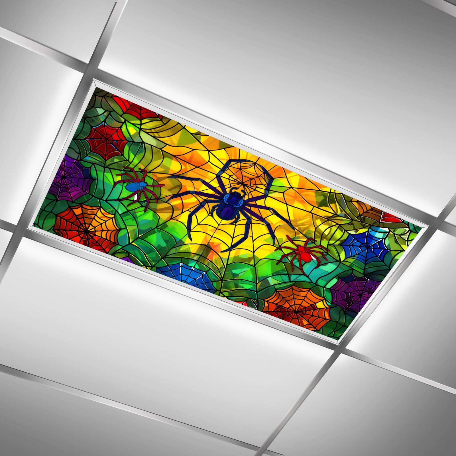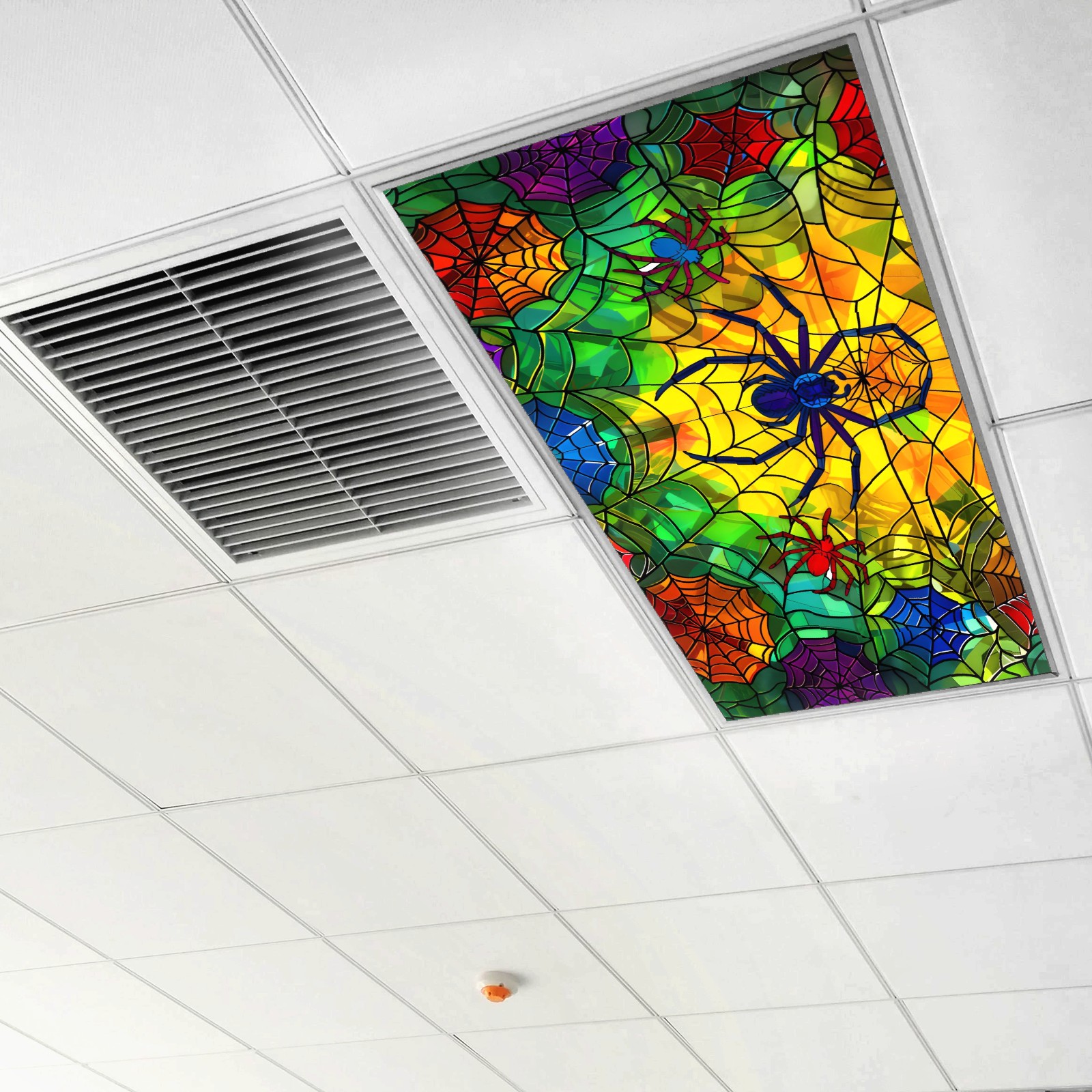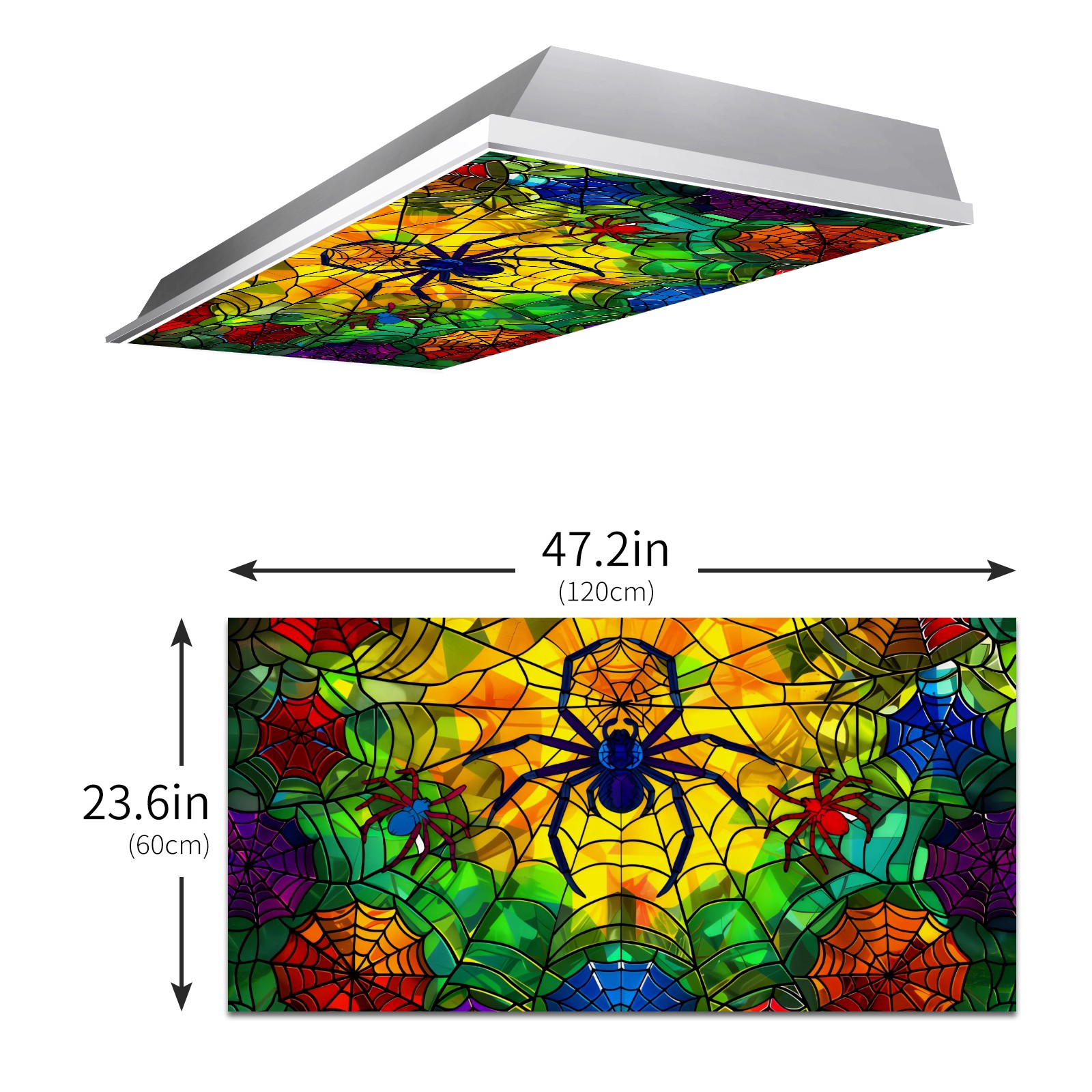 2 Pack Spider Yellow GreenLights Fluorescent Light Covers for Classroom Office 2x4ft Celling Fluorescent Decorative Eliminate Harsh Glare,Classroom Decorations