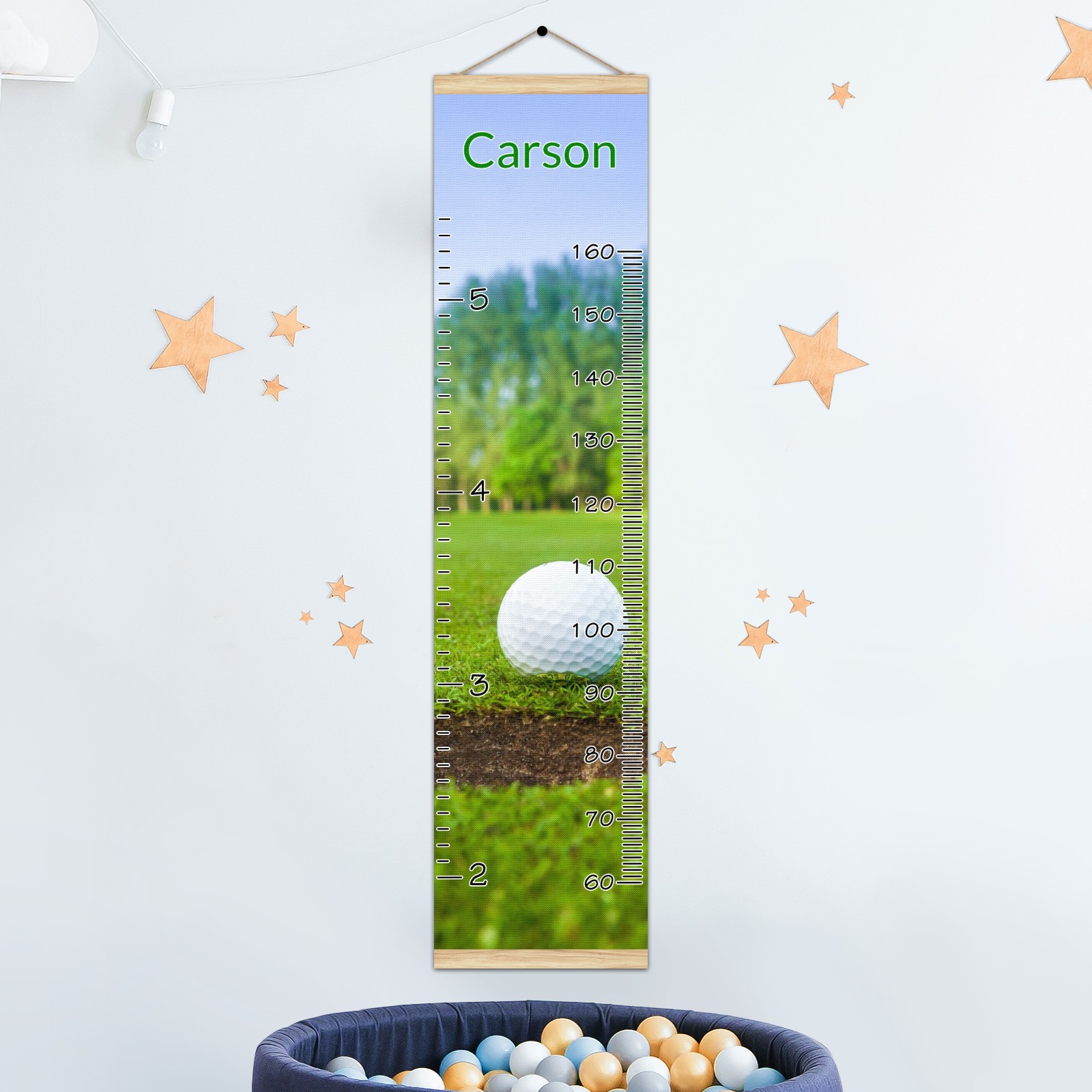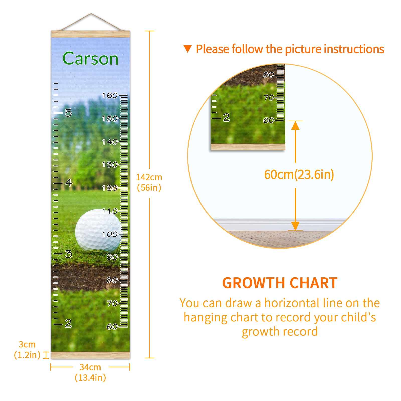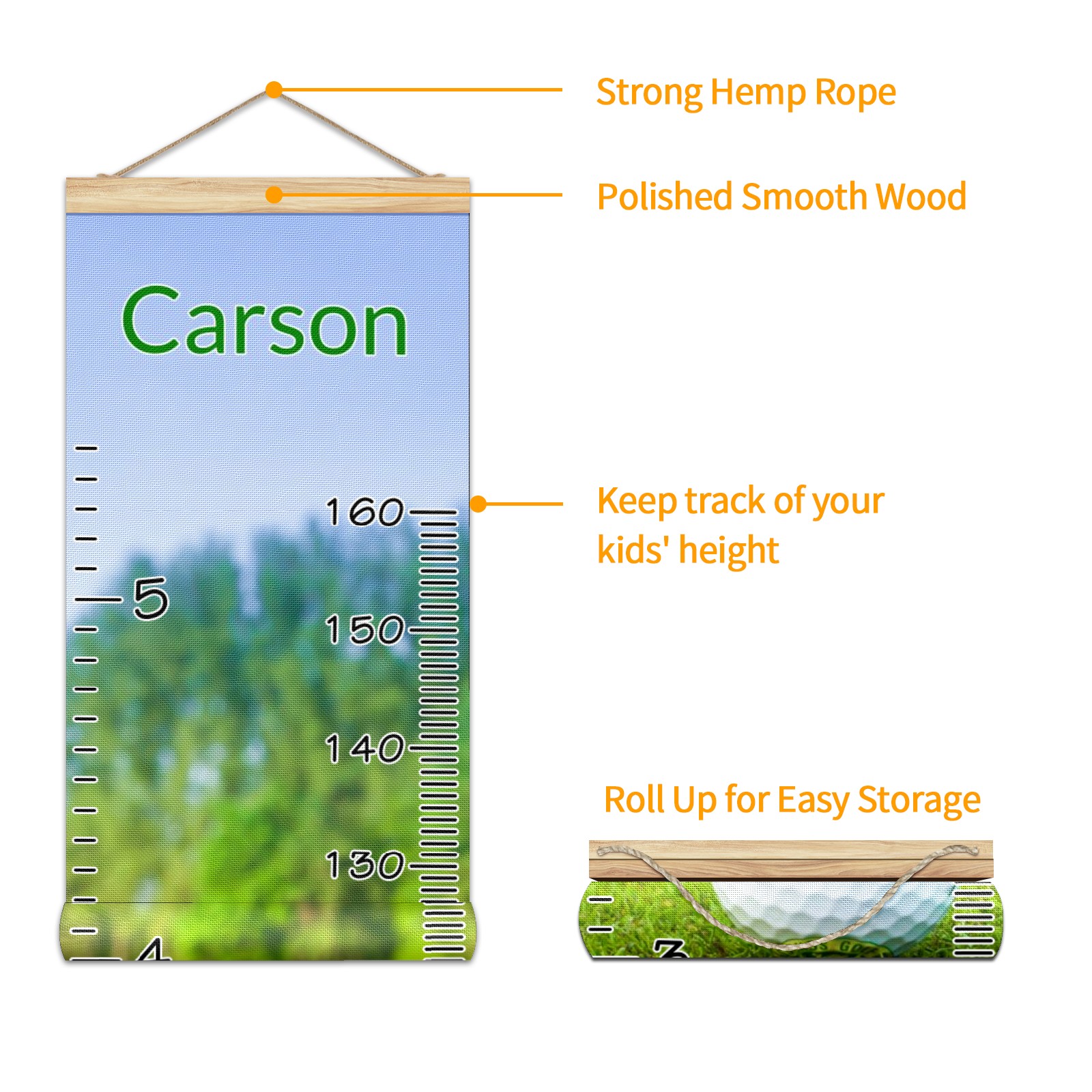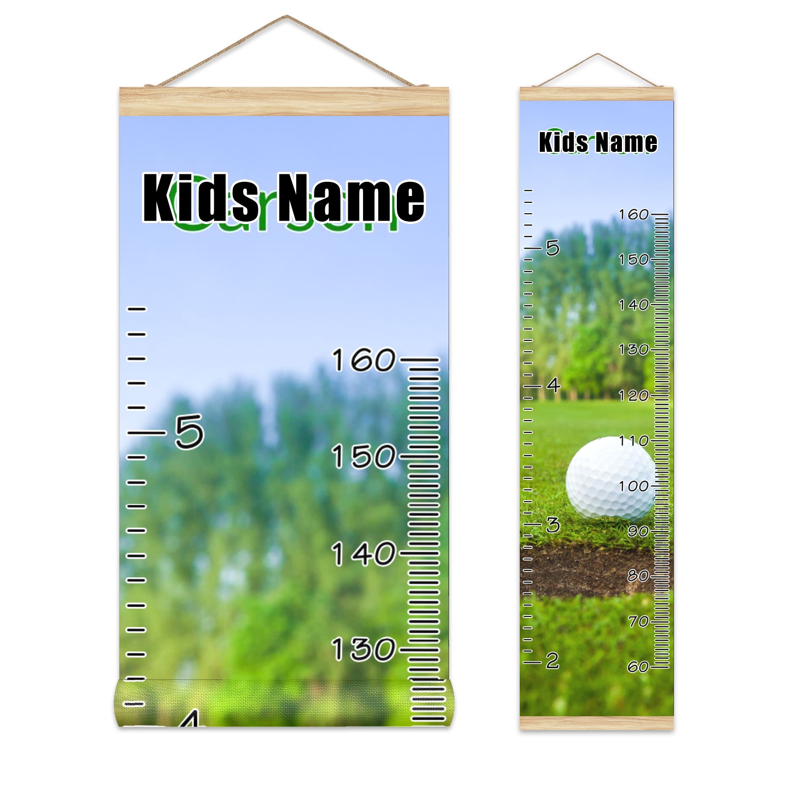 Personalized Kids Name Growth Chart Ruler for Wall Wood Frame Canvas Height Measure Chart 13.4x56 in Hanging Growth Chart Golf2.27 Boys Girls Room Decor