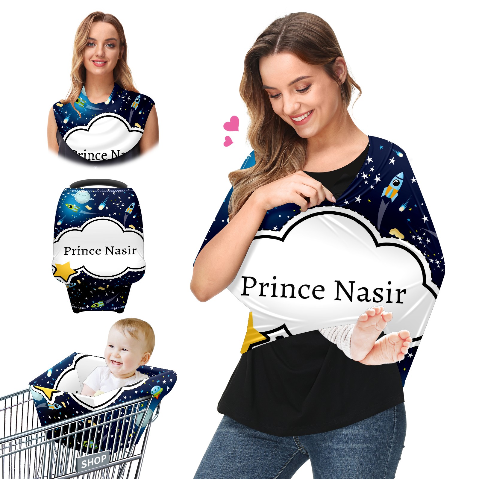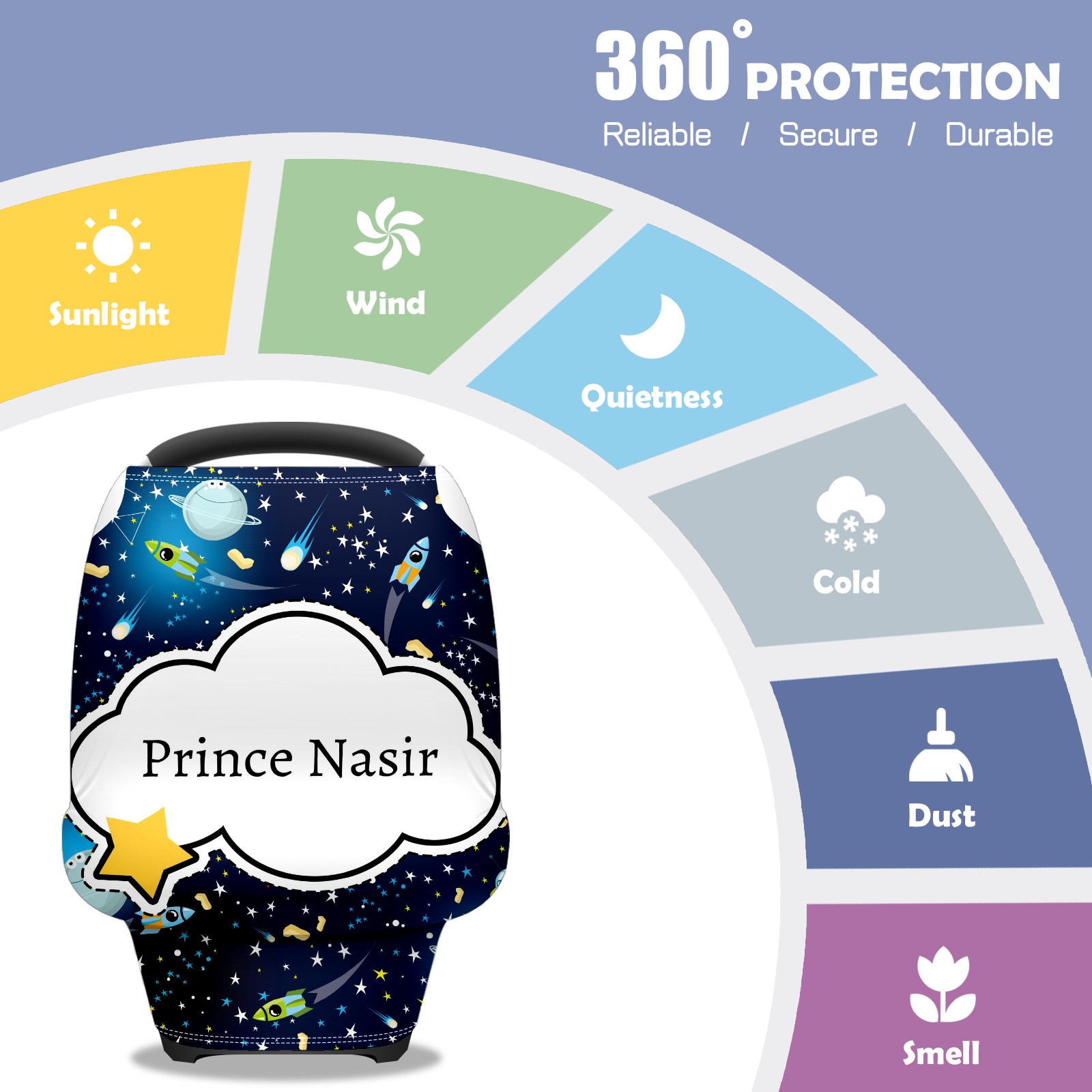 Baby Car Seat Stroller Covers Custom Name Outer Space Planet Rockets2.28 Nursing Cover Breastfeeding Scarf Soft Breathable Stretchy Coverage Carseat Canopy Cover for Boys and Girls Multi Use