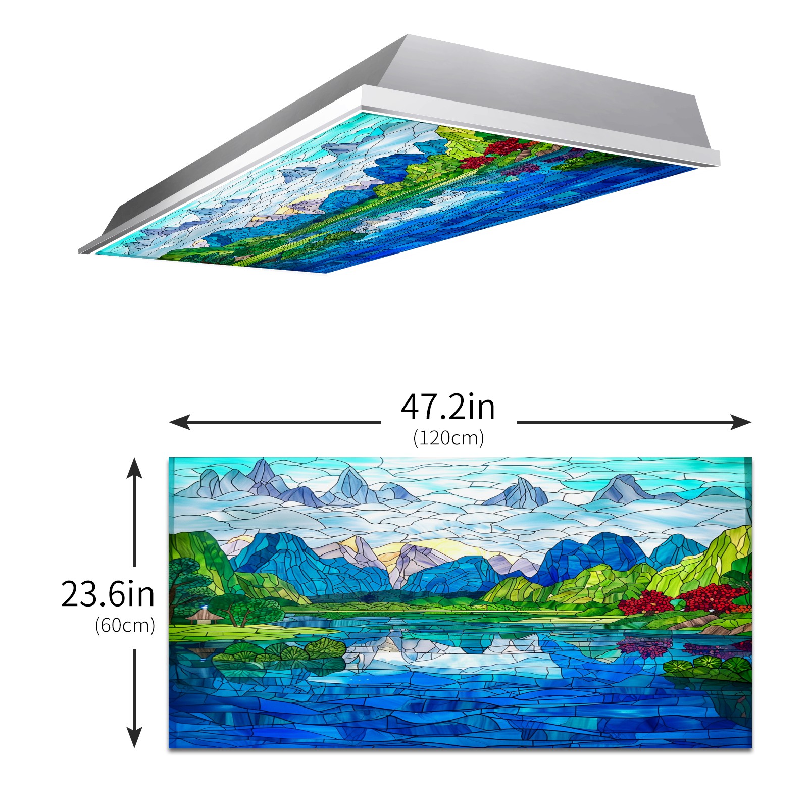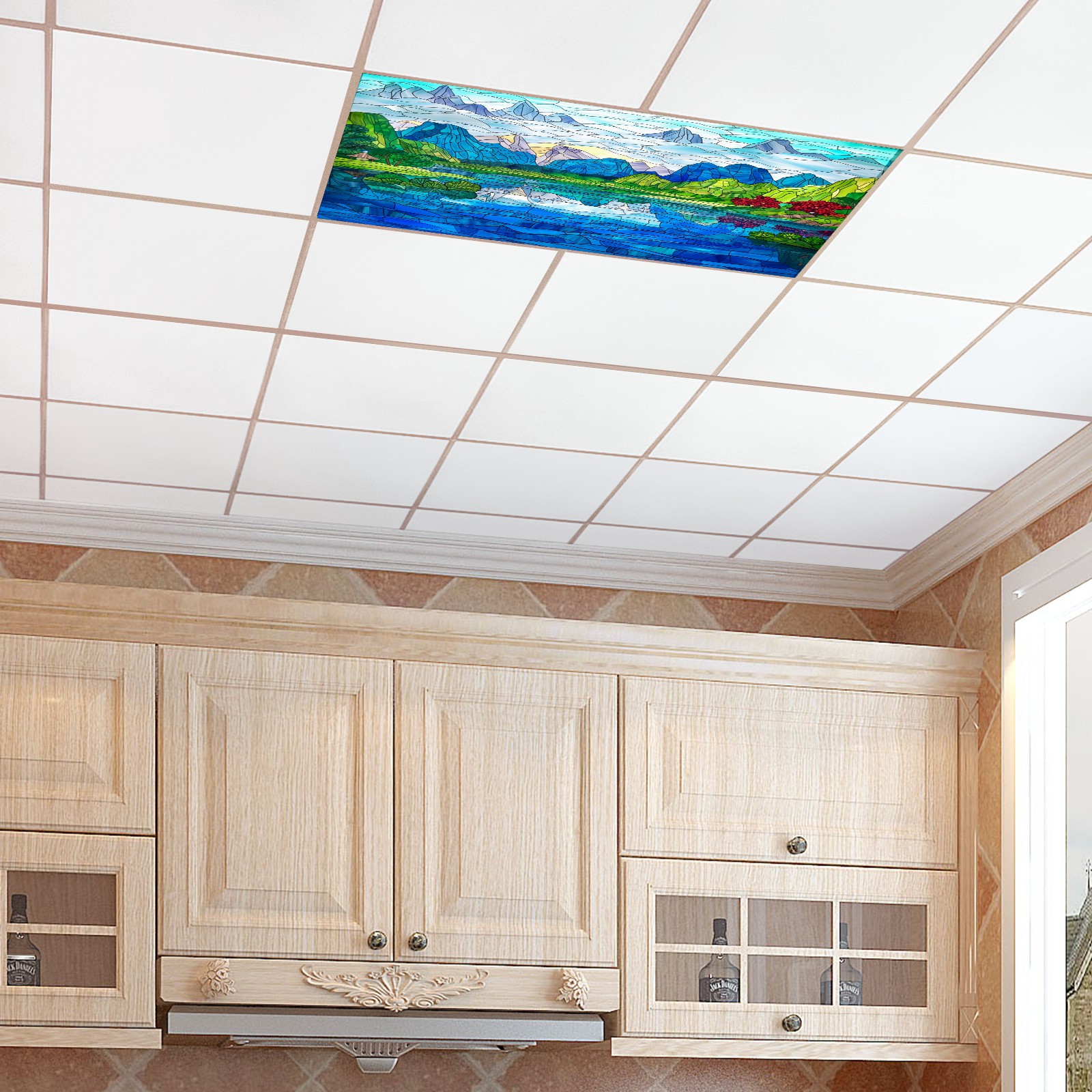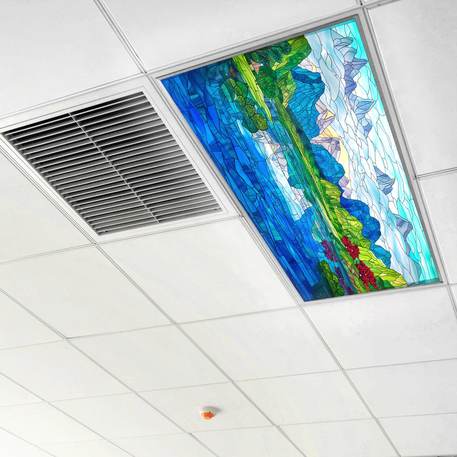 MSINMKOK Fluorescent Light Covers 4‘ x 2' Stained Glass Scenery Decorative Light Cover for Ceiling Lights Classroom Office Drop Ceiling Light Cover Fluorescent Light Filters