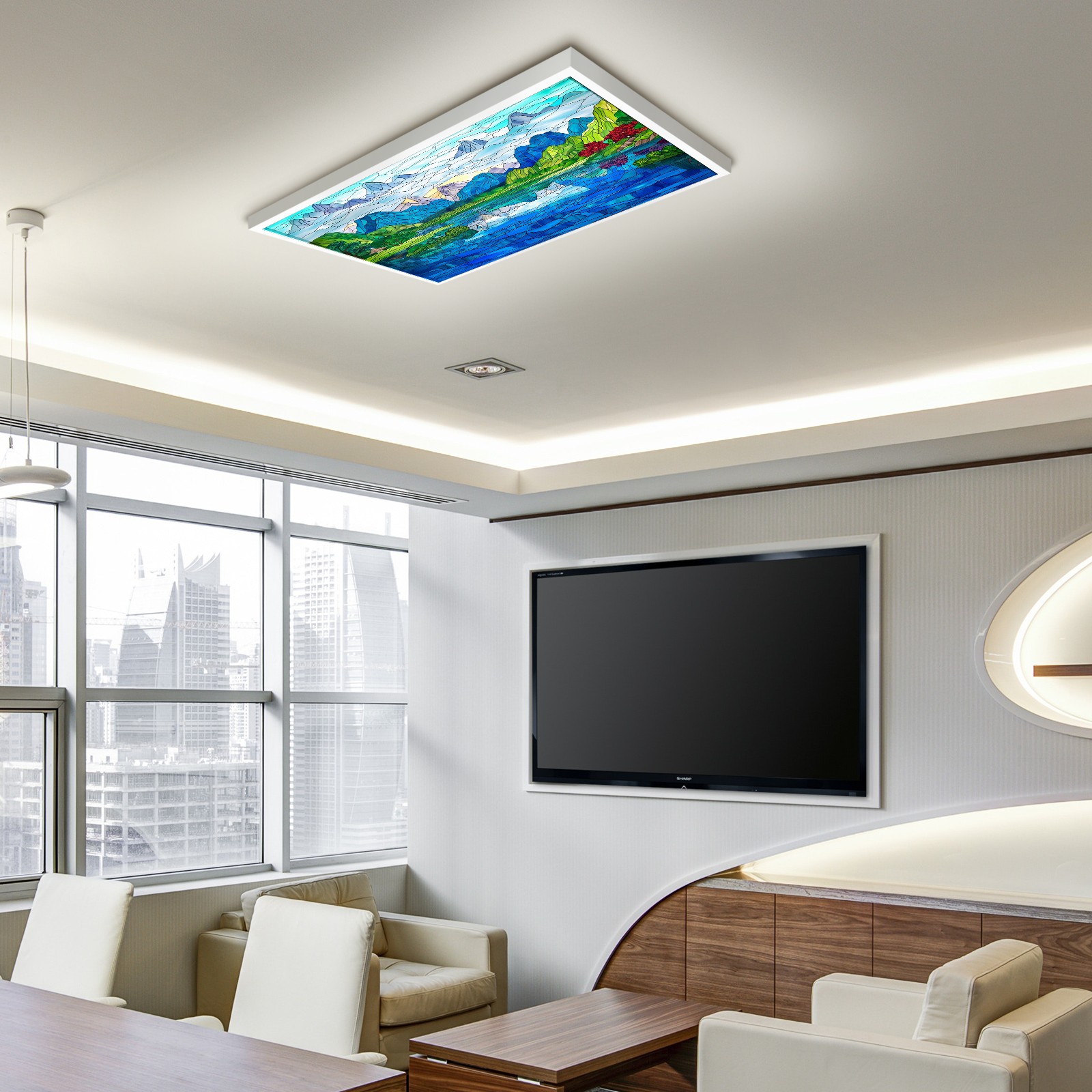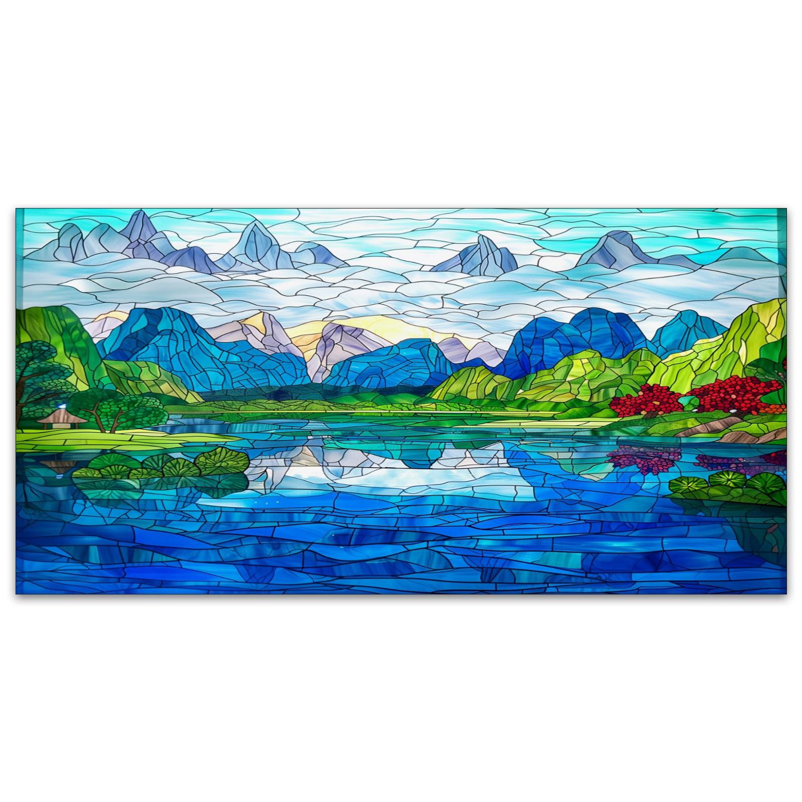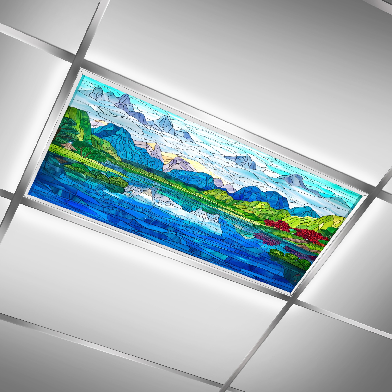 MSINMKOK Fluorescent Light Covers 4‘ x 2' Stained Glass Scenery Decorative Light Cover for Ceiling Lights Classroom Office Drop Ceiling Light Cover Fluorescent Light Filters