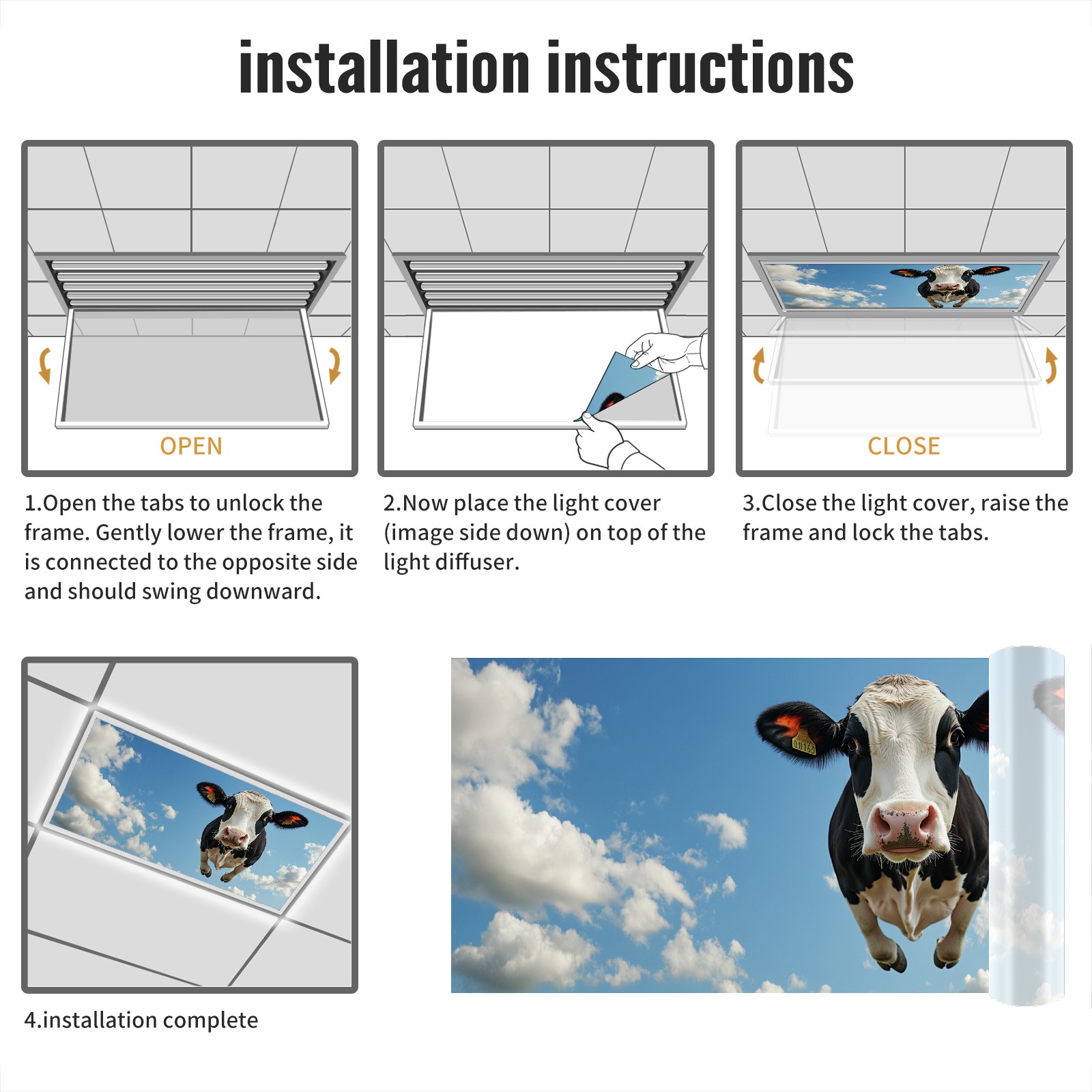 <p>Lights Fluorescent Light Covers for Classroom Office Ceiling Lights</p> <p>Size: 47.2'' x 23.6''. Standard 2x4 ft size can fit the Drop Ceiling Fluorescent Light.</p> <p>Material: Flexible PET Material (Not Fabric).&nbsp;</p> <p>Fluorescent Light Covers Features:</p> <p>1.Reducing Glare: The ceiling light cover effectively softens the harsh fluorescent light, reducing eye strain.</p> <p>2.Aesthetics: Decorative fluorescent light covers can be designed with a variety of patterns, enhancing the aesthetic appeal of the environment.</p> <p>3.Size adaptability: The light covers for ceiling can be slightly trimmed to fit ighting fixtures.</p> <p>4.Non-magnetic Design: The fluorescent light cover is non-magnetic and can be installed by inserting it into the panel. Alternatively, additional securing methods (such as double-sided tape) can be used to ensure a stable installation outside the panel.</p> <p>5.Suitable for most room,such as office, classroom, hostpital, library, clinics, playroom, nursery, kindergarten, school, hotel, bar, night club and so on.</p>