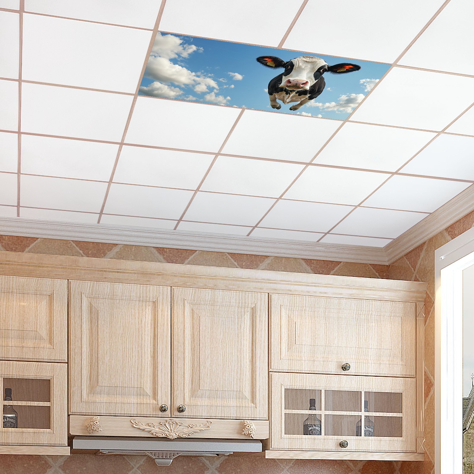 MSINMKOK Fluorescent Light Covers 4‘ x 2' Cow Blue Sky Decorative Light Cover for Ceiling Lights Classroom Office Drop Ceiling Light Cover Fluorescent Light Filters