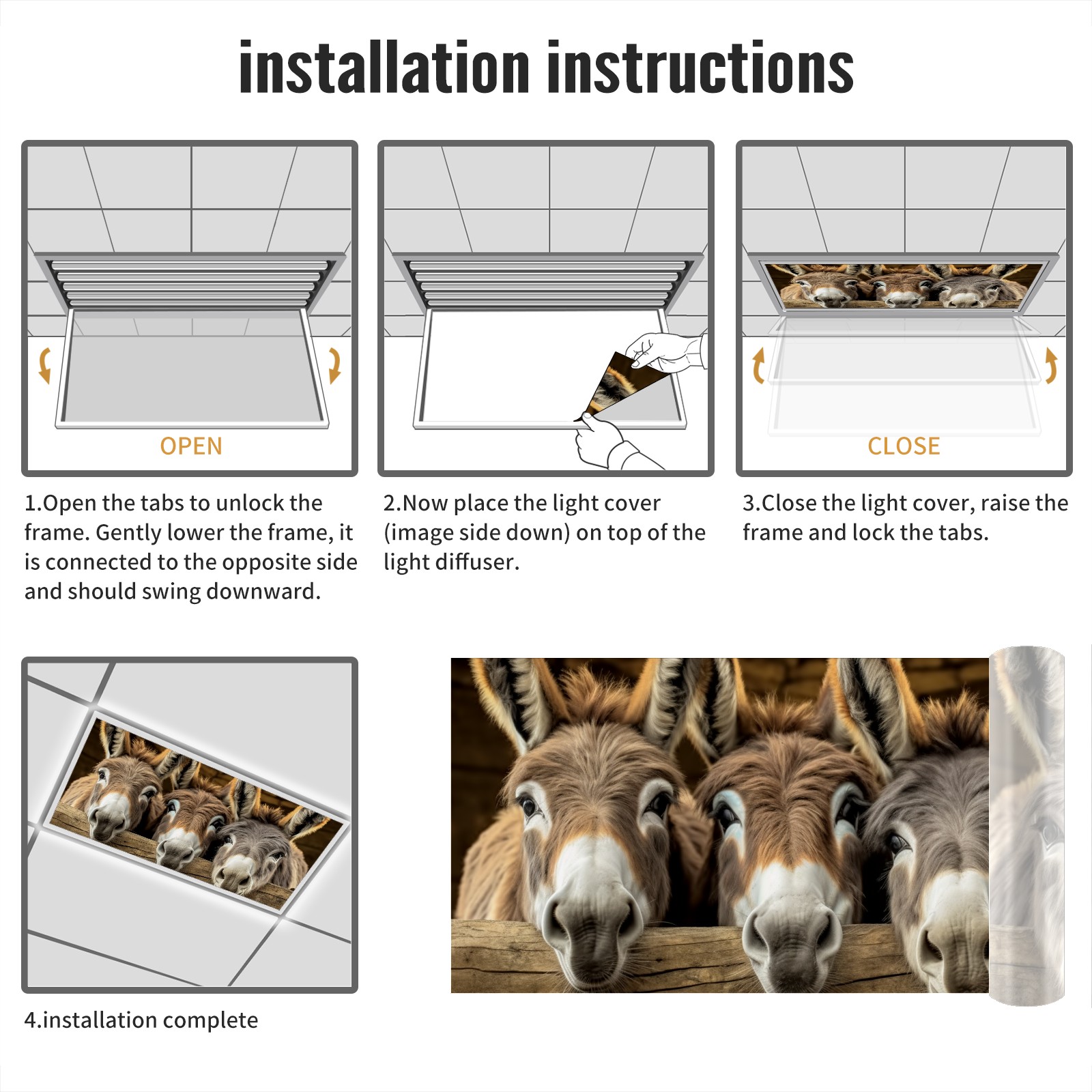 MSINMKOK Fluorescent Light Covers 4‘ x 2' Donkeys Decorative Light Cover for Ceiling Lights Classroom Office Drop Ceiling Light Cover Fluorescent Light Filters