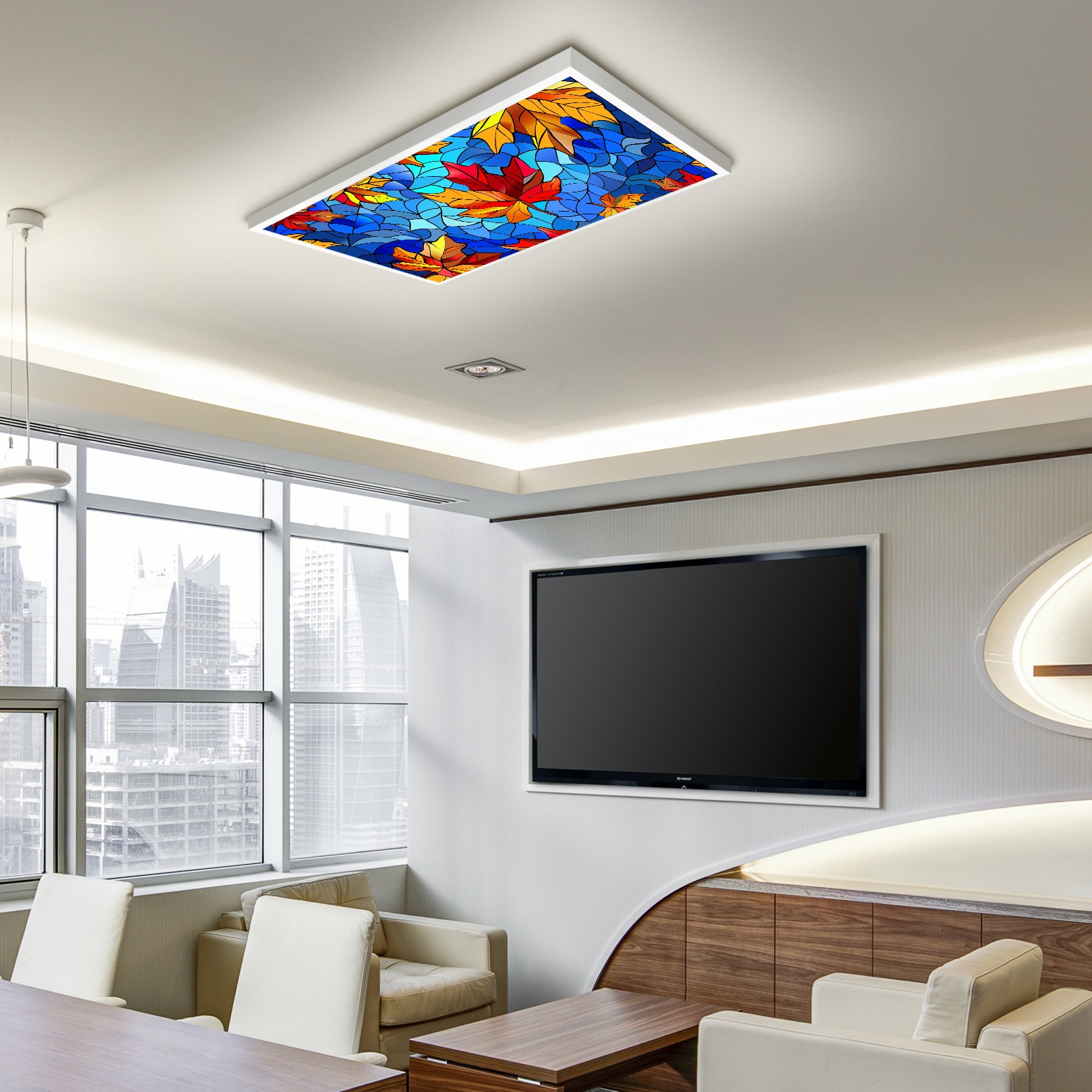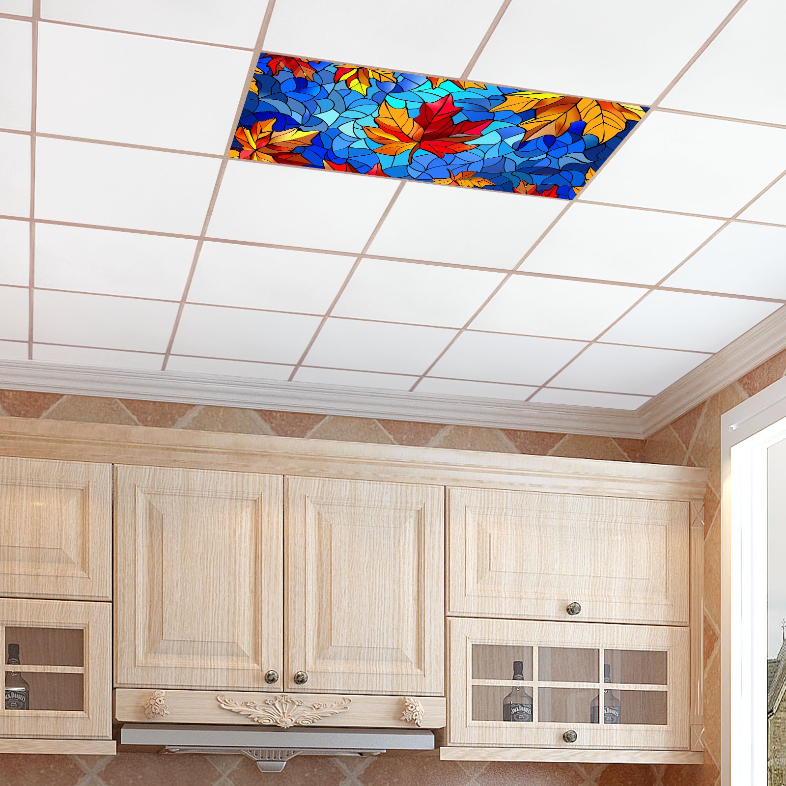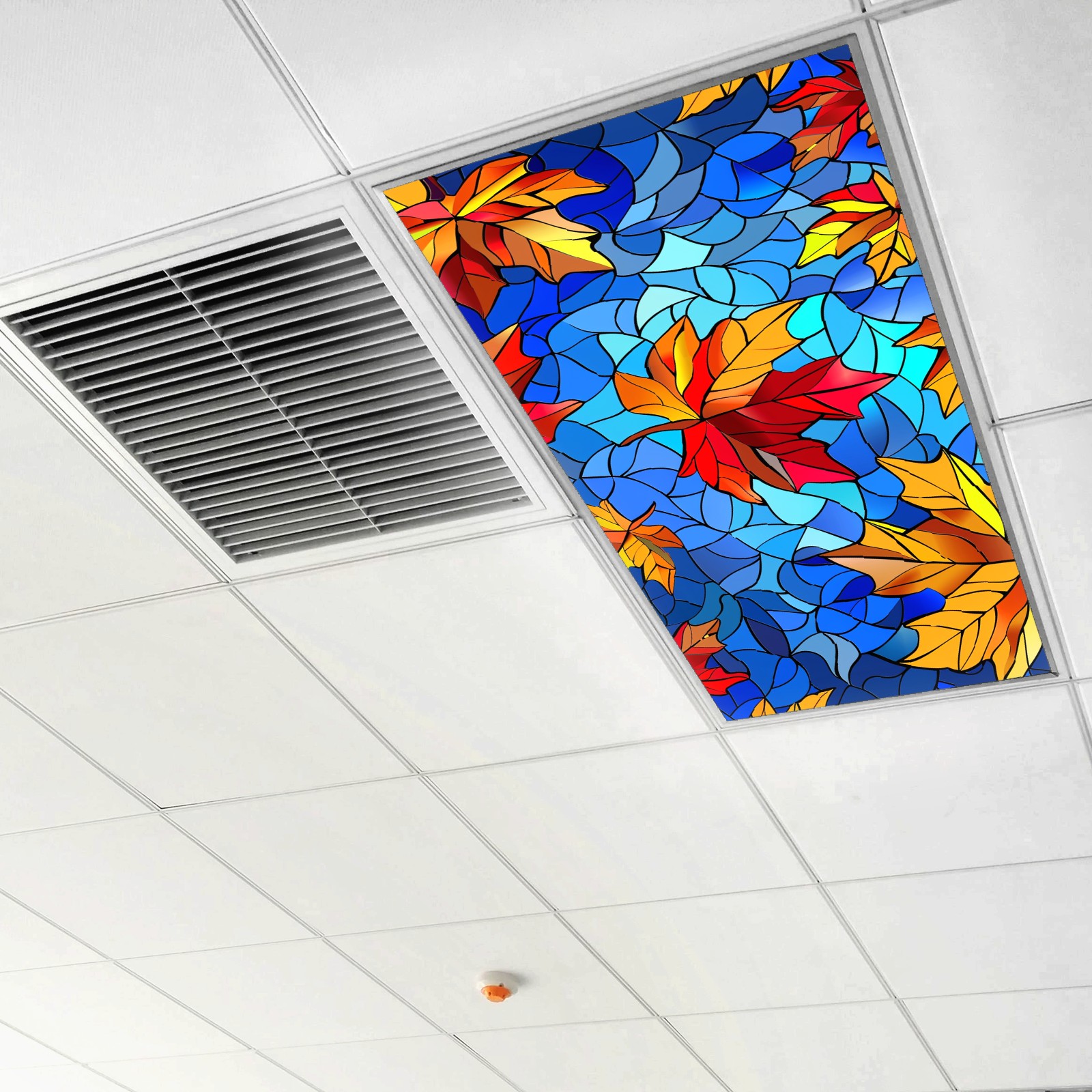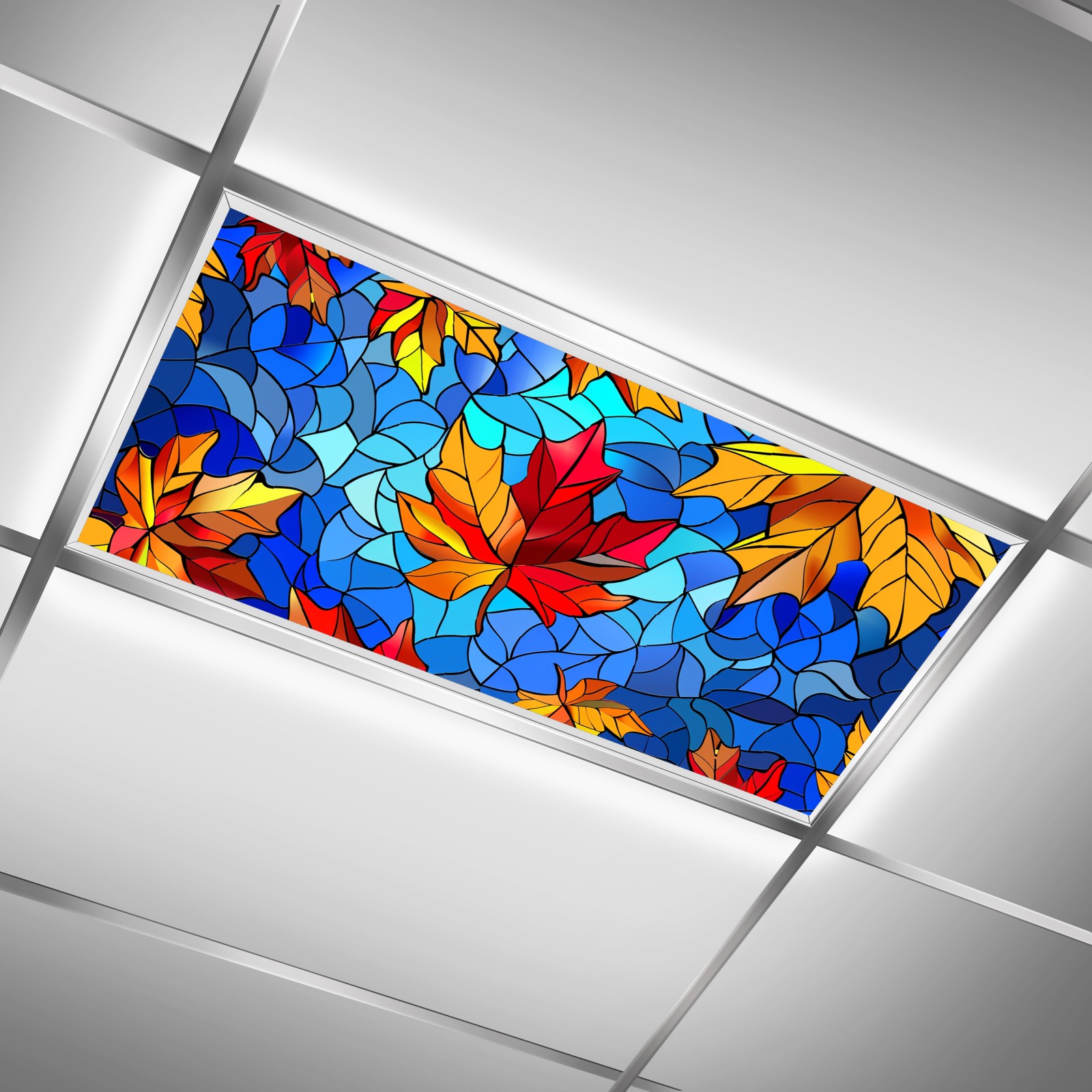 MSINMKOK Fluorescent Light Covers 4‘ x 2' Stained Glass Colorful Maple Leaves Decorative Light Cover for Ceiling Lights Classroom Office Drop Ceiling Light Cover Fluorescent Light Filters