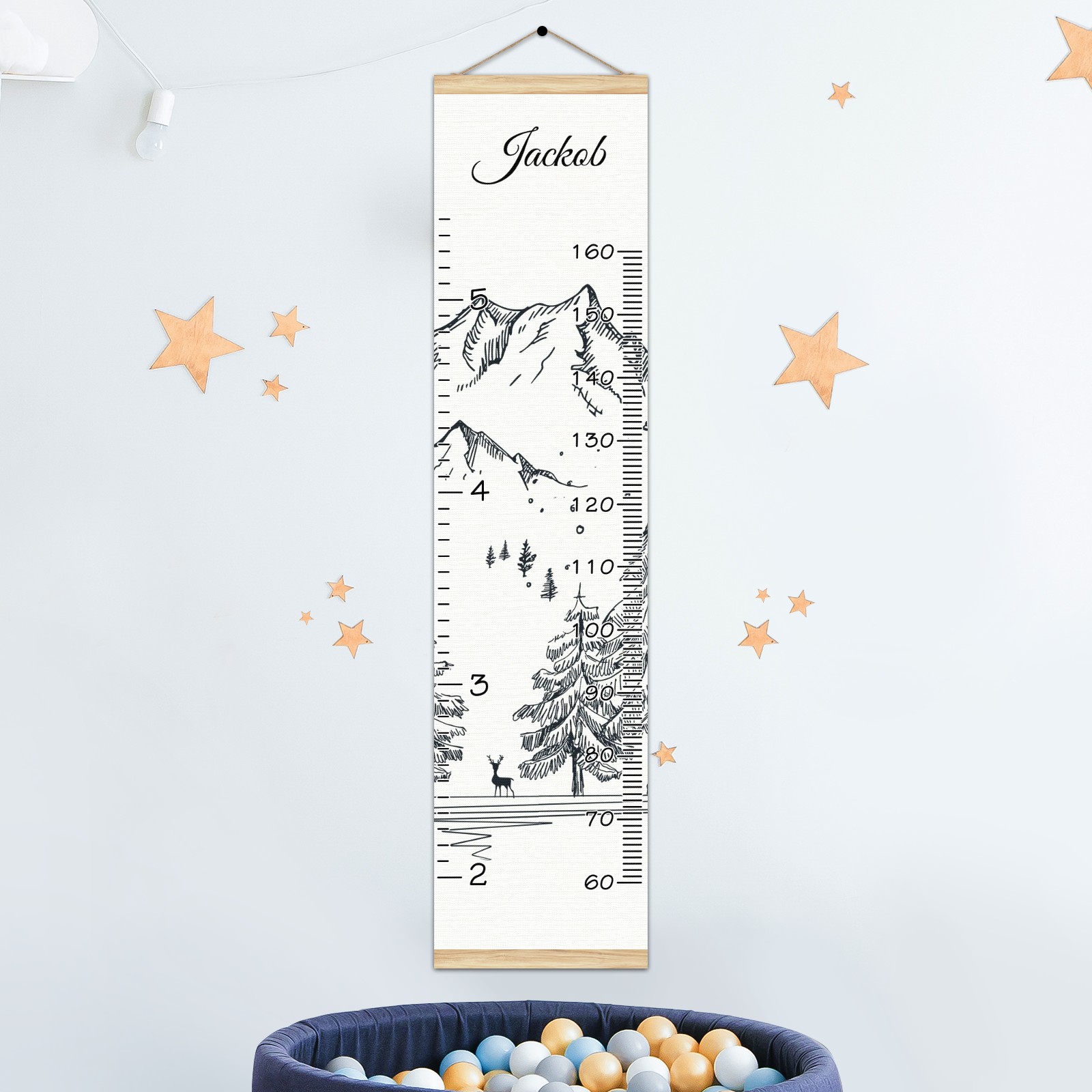 Personalized Kids Name Growth Chart Ruler for Wall Wood Frame Canvas Height Measure Chart 13.4x56 in Hanging Growth Chart Winter Mountain3.3 Boys Girls Room Decor
