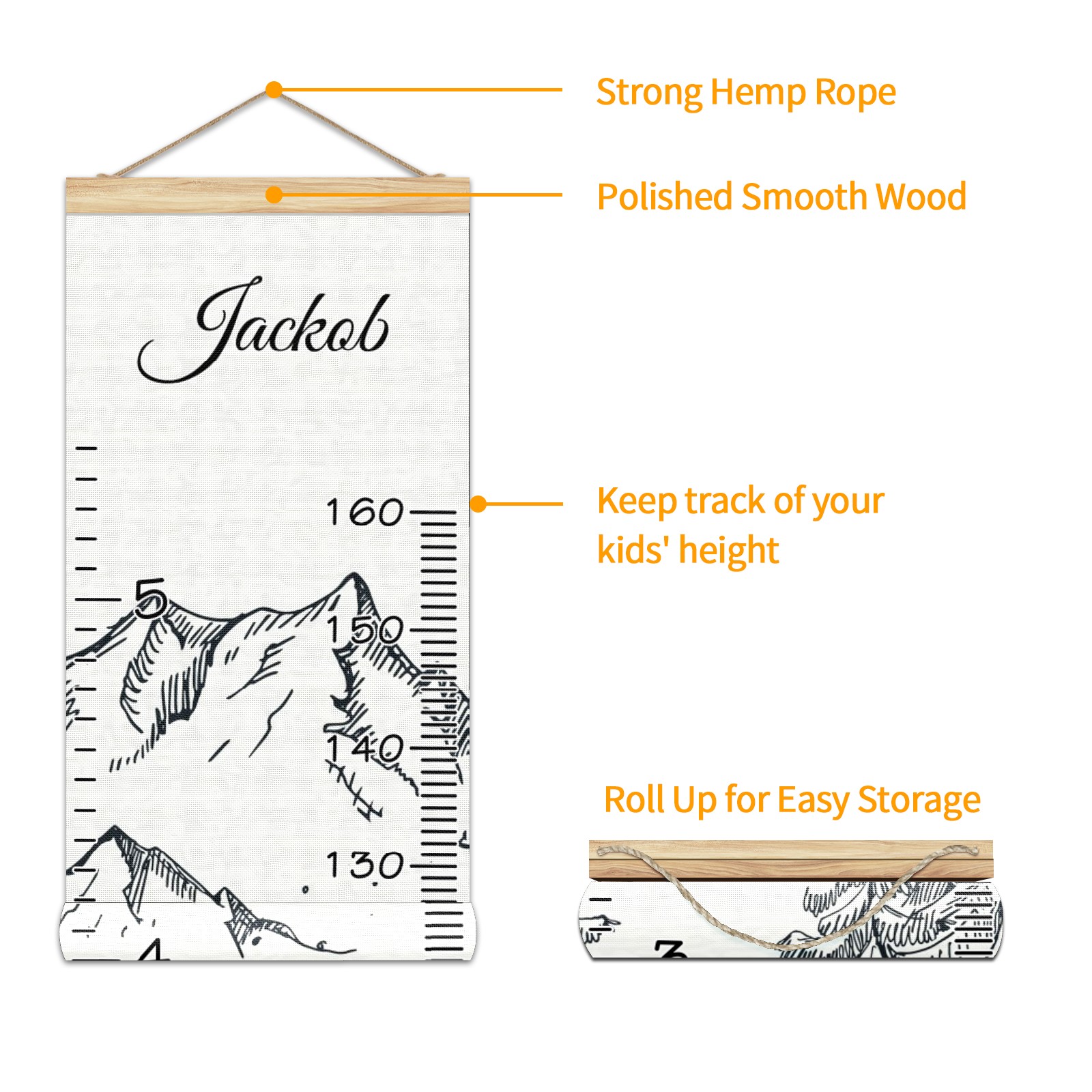 • <p><b>Baby height growth chart can be used anywhere</b></p><p>Ideal for kids nursery decoration, kids bedroom, interior walls or windows, playroom, living room, homedecoration.Add name and make the growth chart special!</p><p><br></p><p><b>Easy to fold and carry</b></p><p>With rope at the top of the growth chart, it is easy to install and remove.You can fold it and unfold any time any where.</p><p><br></p><p><b>Perfect Gift Idea for Kids</b></p><p>Environmental and non-toxic for kids use, it must be a perfect gift for baby, kids, girls, and boys.This is a best choice for your friend who have kids or baby as a popular gift.</p><p><br></p><p><b>Easy to read</b></p><p>Measurement accrate with 2 scales, Centimeters and feet. The letters are big enough, very easy to read.</p><p><br></p><p><b>60cm(23.6inch) Over Ground Design</b></p><p>Not only can protect from dust and other damage, but also will not interfere in floor cleaning.</p><p><br></p><p><b>Features:</b></p><p>Rope for Hanging</p><p>Material: Linen + Wood</p><p>Dimensions: 13.4x56 inches</p><p>Weight: 7.5 once</p><p>Package Included: 1 * Baby Growth Chart</p>