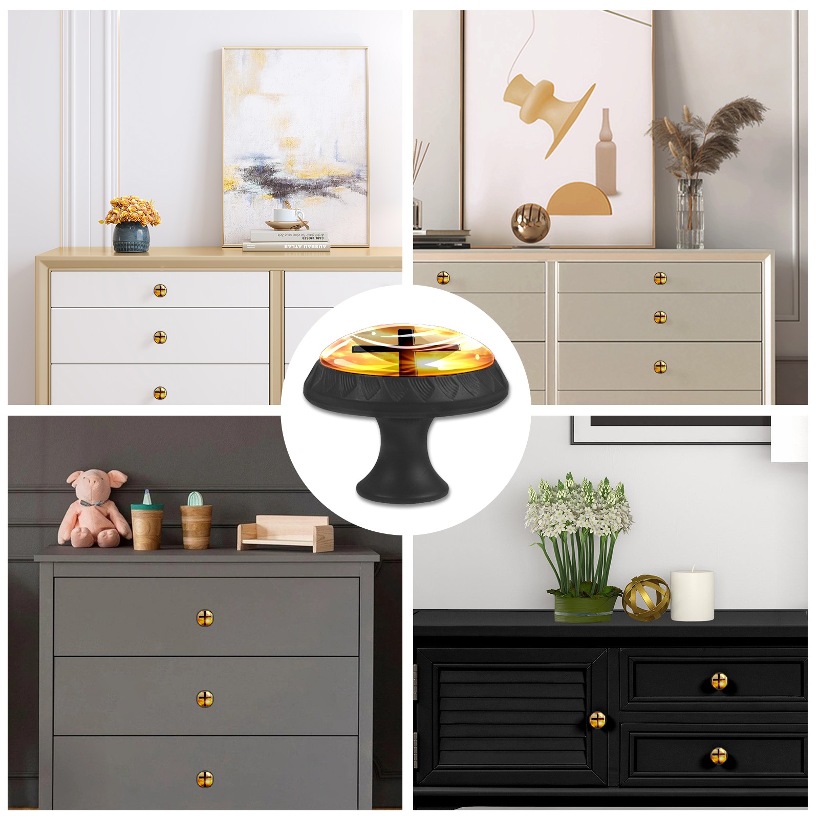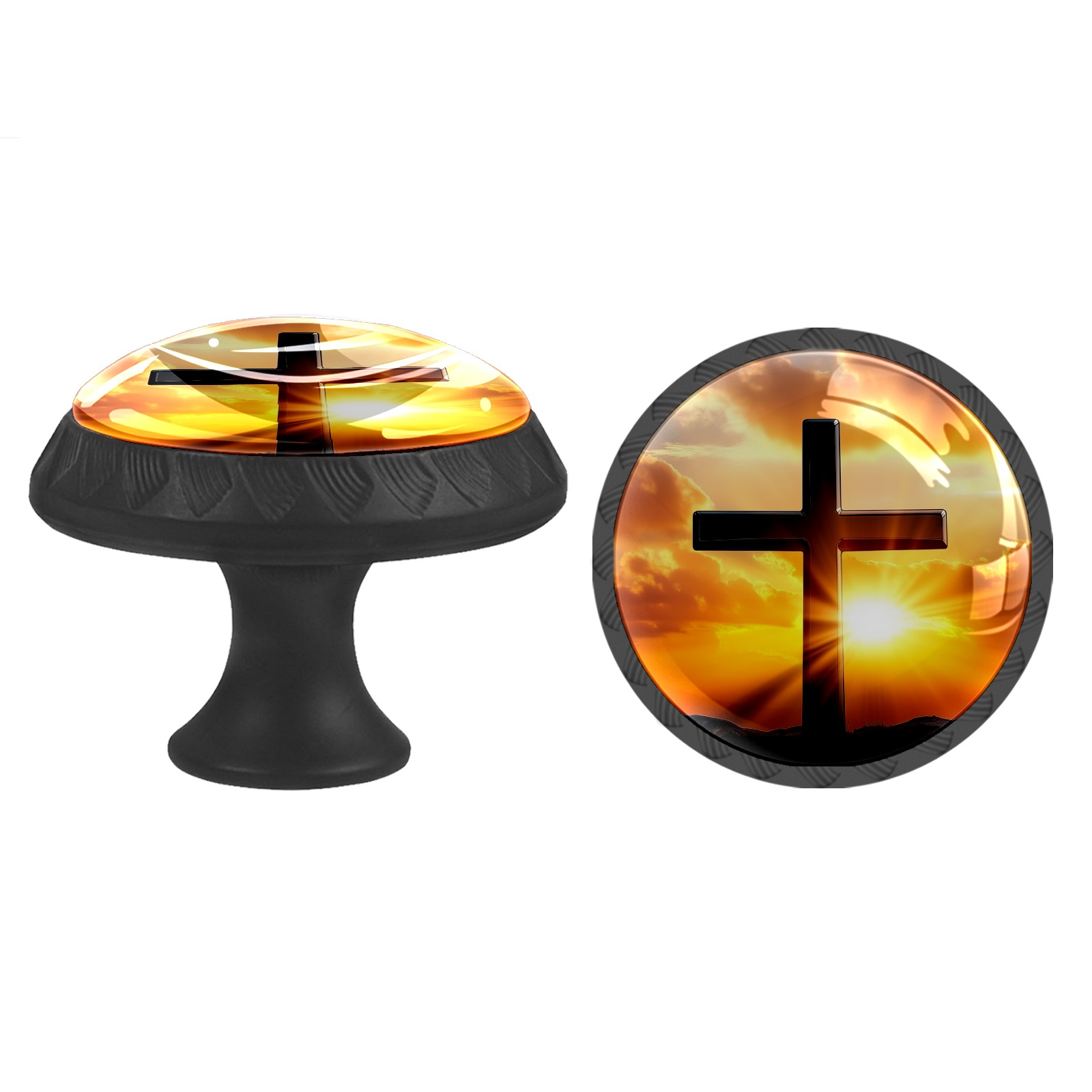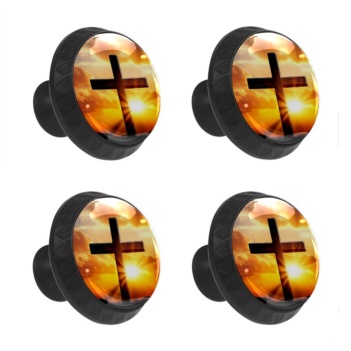 Round Cabinet Knobs A_cross Drawer Pulls Crystal Glass Knobs for Dresser Kitchen Bathroom Cabinet Black Cupboard Wardrobe Pulls Handles, 4 Pack (1.37'' x1.37'')