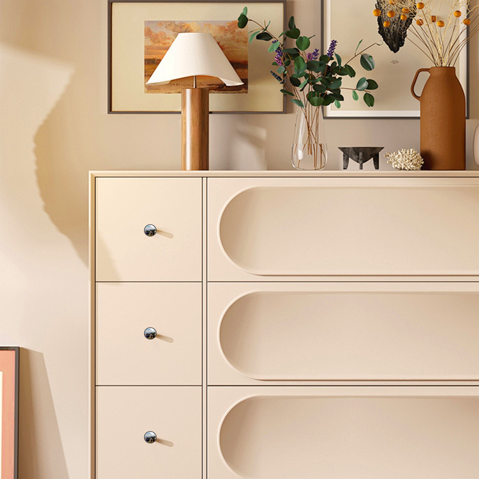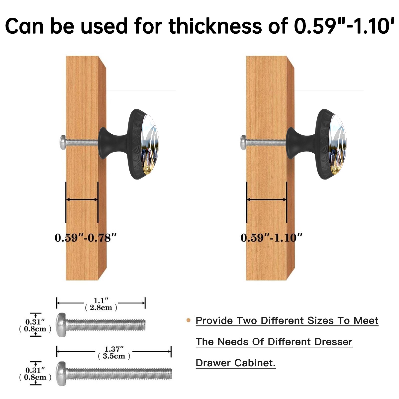 <p><b>Package Includes:</b></p> <p>Drawer Knobs x 4</p> <p>1.10 Inches Mounting Screws x 4</p> <p>1.37 Inches Mounting Screws x 4</p> <p><br></p> <p>Crystal Glass Diameter: 1.37 inches (35mm)</p> <p>Knob Height: 1.10 inches (28mm)</p> <p>Base Diameter: 0.66 inches (17mm)</p> <p><br></p> <p><b>Practical and Aesthetic:</b></p> <p>The cute drawer pulls combine the durability of an ABS base with the high transparency of glass, enhanced by unique patterns that add decoration and cuteness. It’s both practical and visually appealing.</p> <p><b>Pattern Design:</b></p> <p>Clear patterns add decoration and personalization. They enhance visual appeal and can match different home styles, meeting diverse design needs.</p> <p><b>Easy Installation:</b></p> <p>Equipped with mounting screws, the ABS base can be securely attached to the drawer with ease.</p> <p><b>Easy Cleaning:</b></p> <p>The smooth surface of the round glass pull resists dust and stains, making it easy to clean with just a damp cloth.</p> <p><b>Wear-Resistant:</b></p> <p>The cabinet knobs are designed to resist scratches and fading, maintaining their good appearance over long-term use.</p>