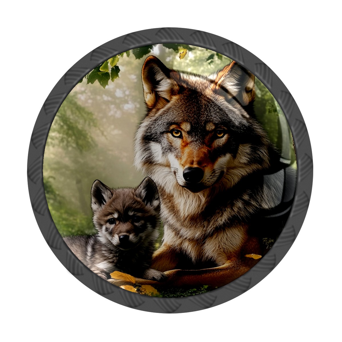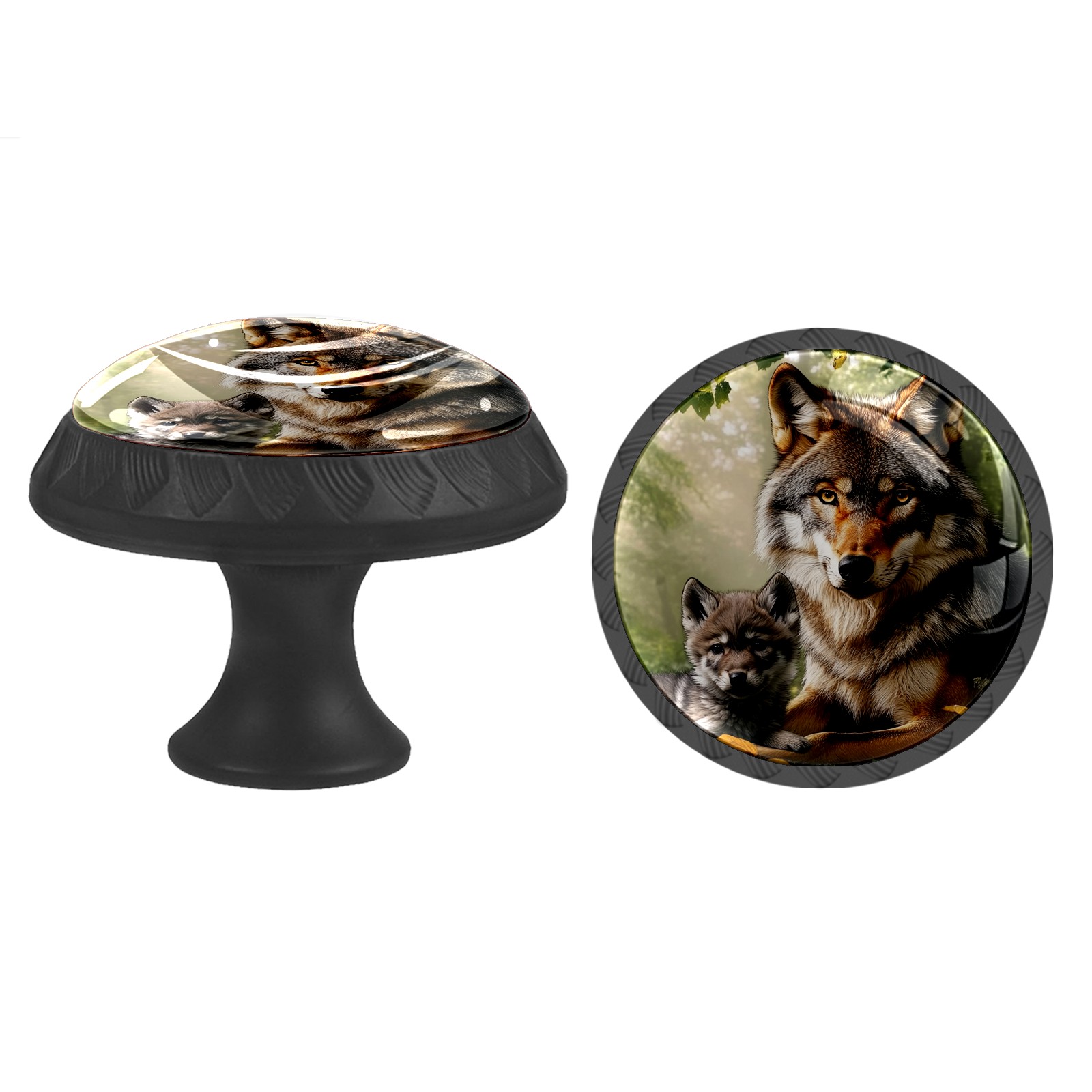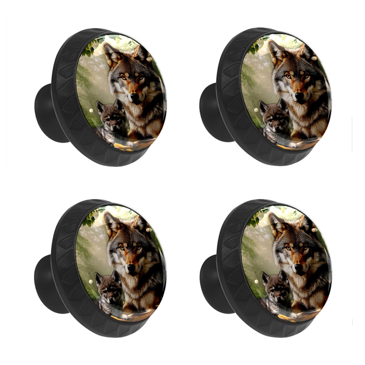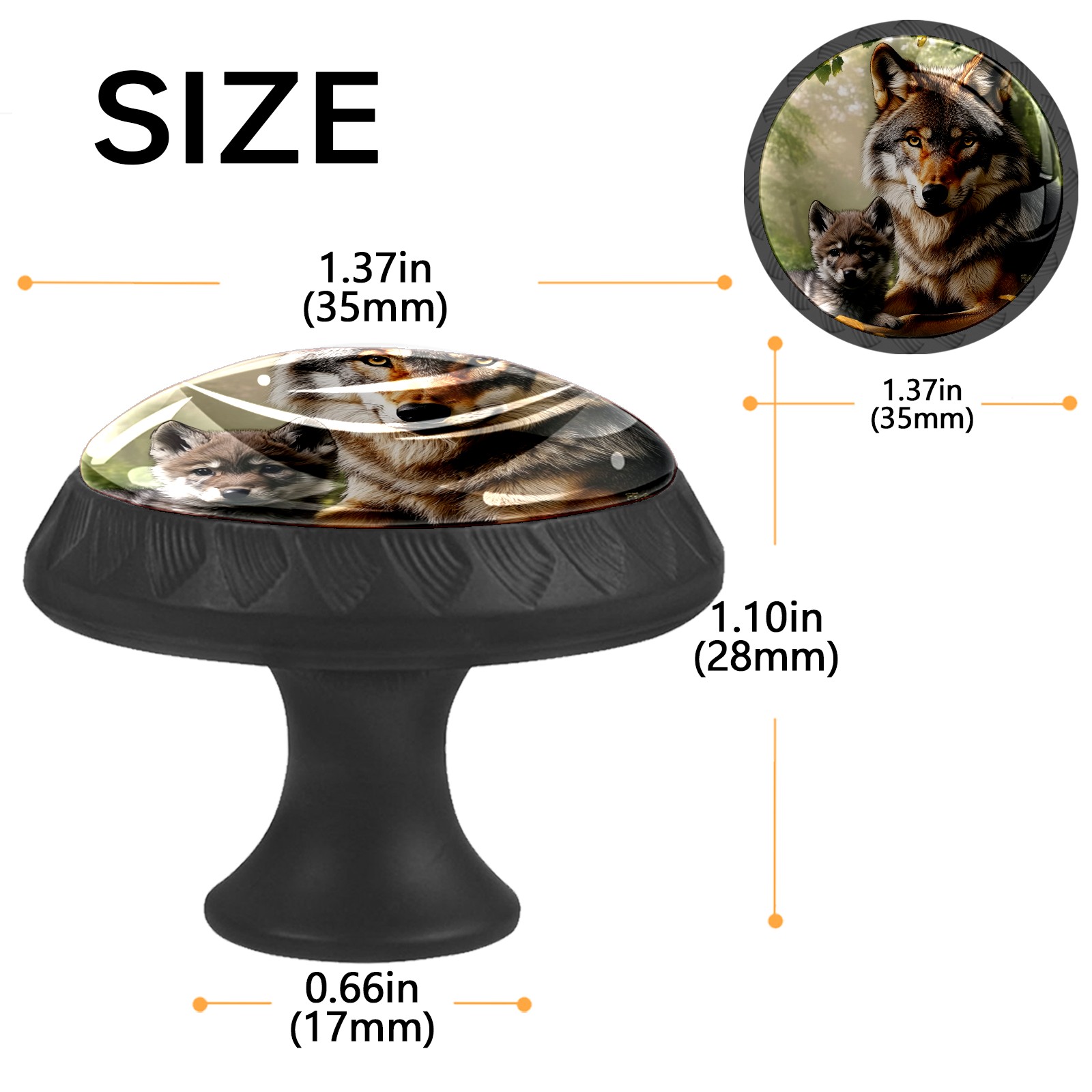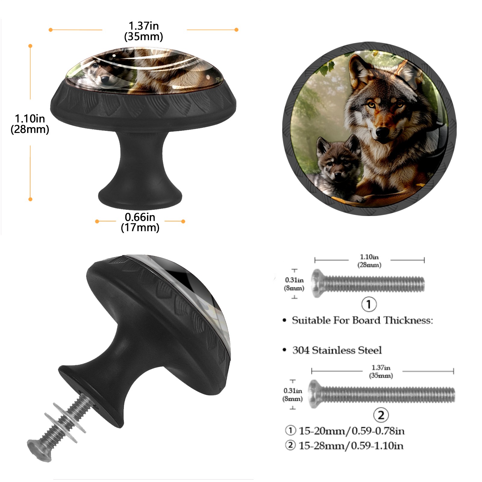 Round Cabinet Knobs Grey Wolf Drawer Pulls Crystal Glass Knobs for Dresser Kitchen Bathroom Cabinet Black Cupboard Wardrobe Pulls Handles, 4 Pack (1.37'' x1.37'')
