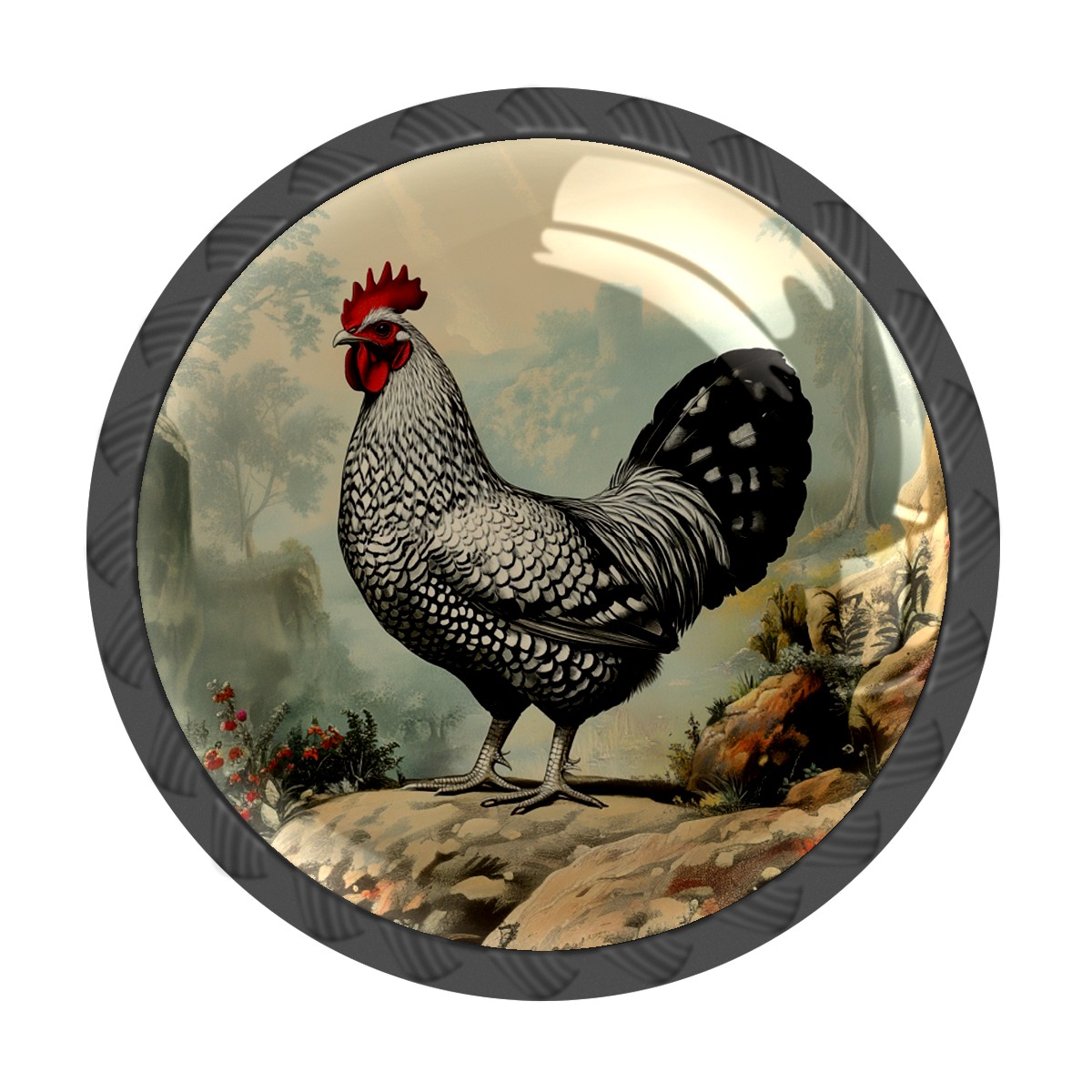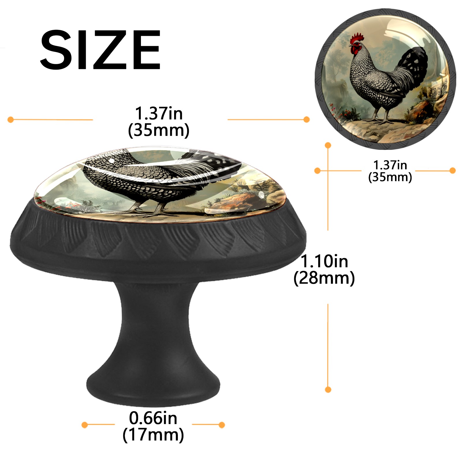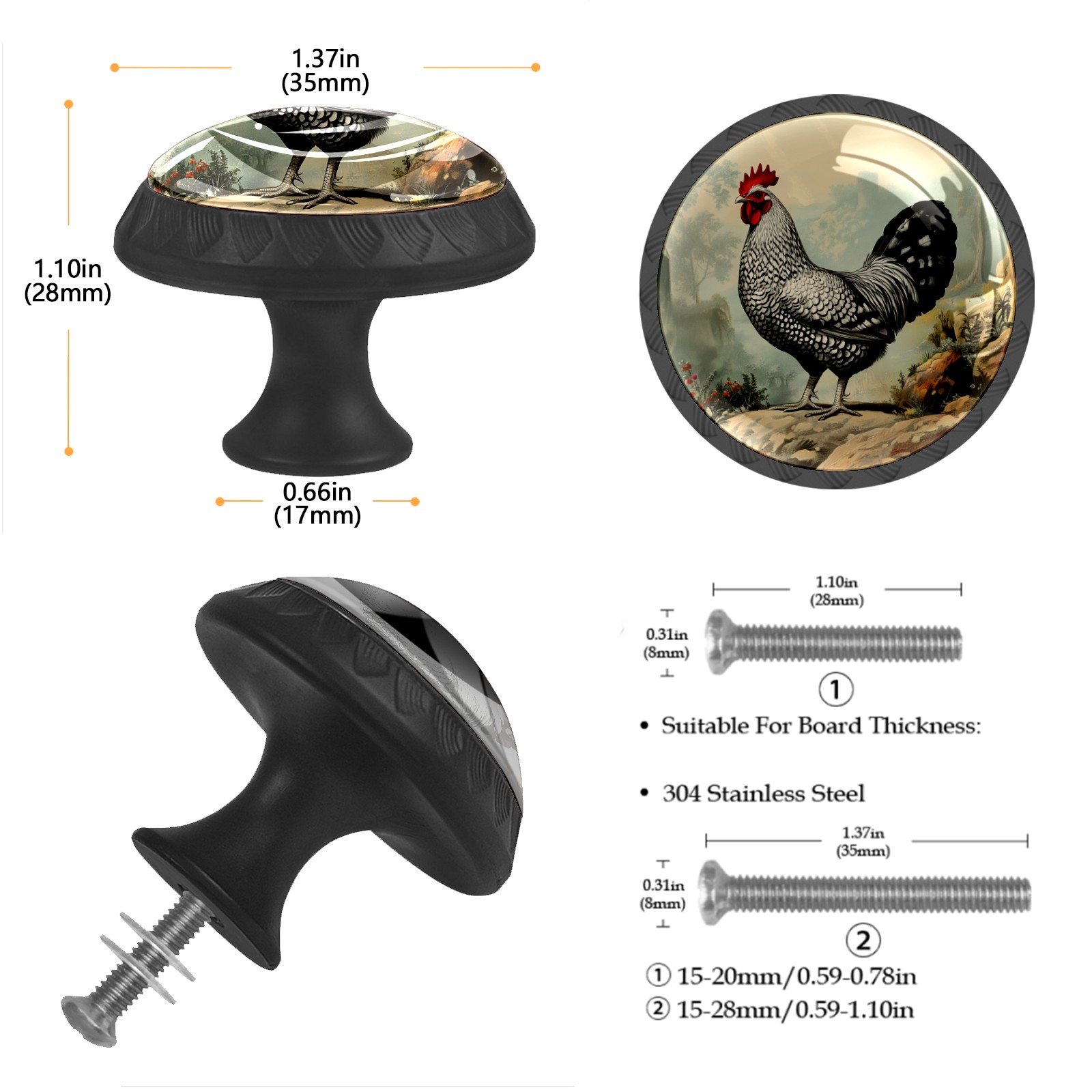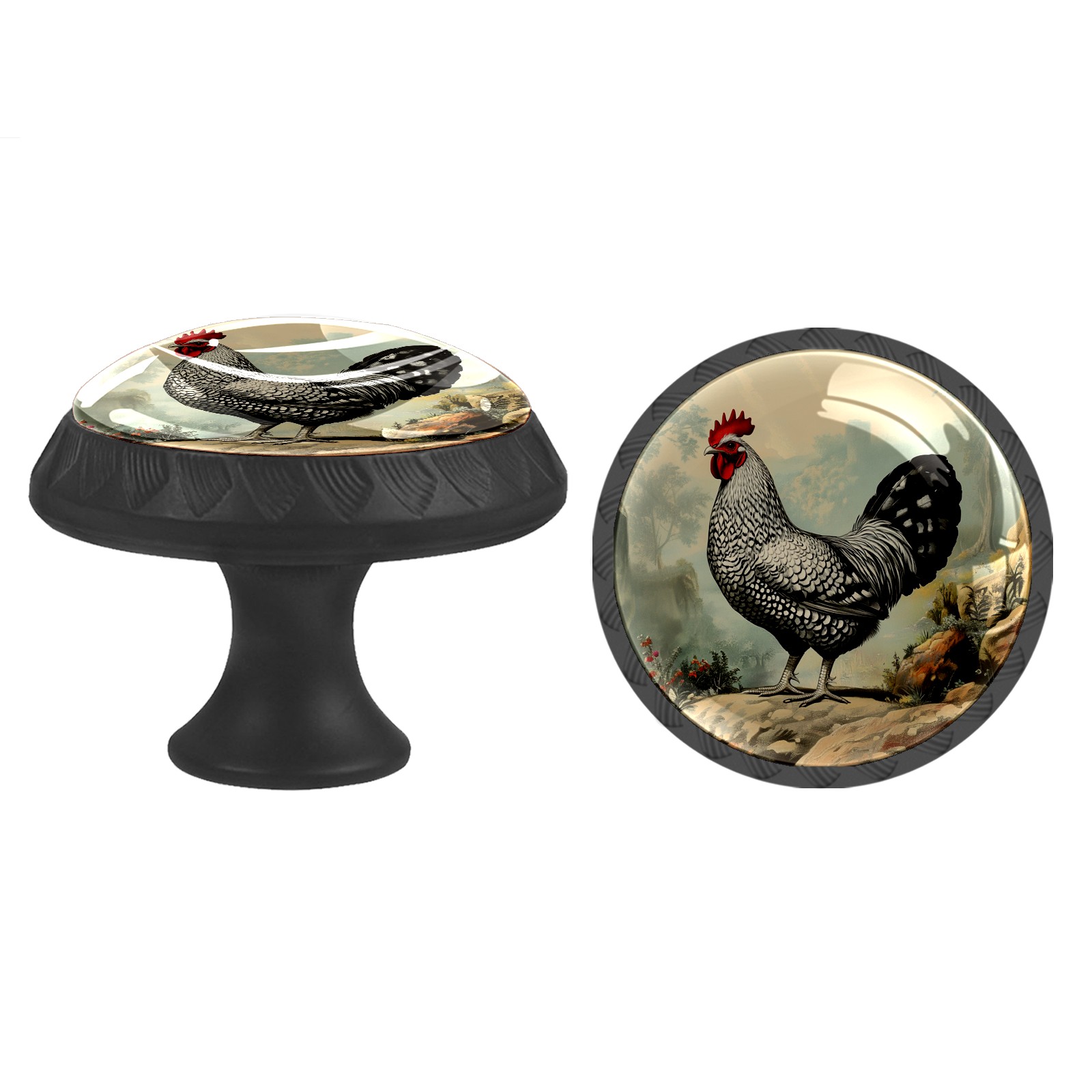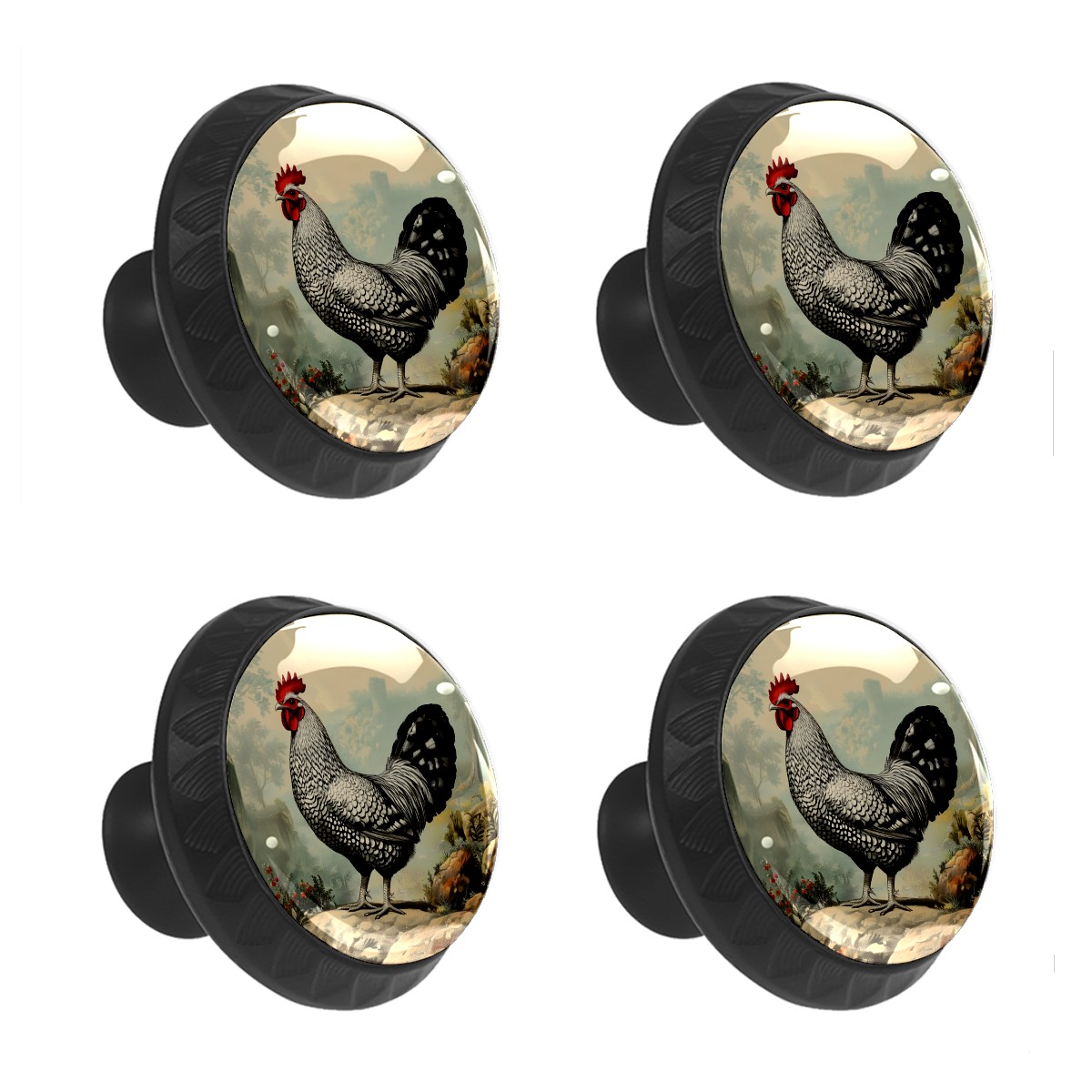 Round Cabinet Knobs Chicken Vintage Drawer Pulls Crystal Glass Knobs for Dresser Kitchen Bathroom Cabinet Black Cupboard Wardrobe Pulls Handles, 4 Pack (1.37'' x1.37'')