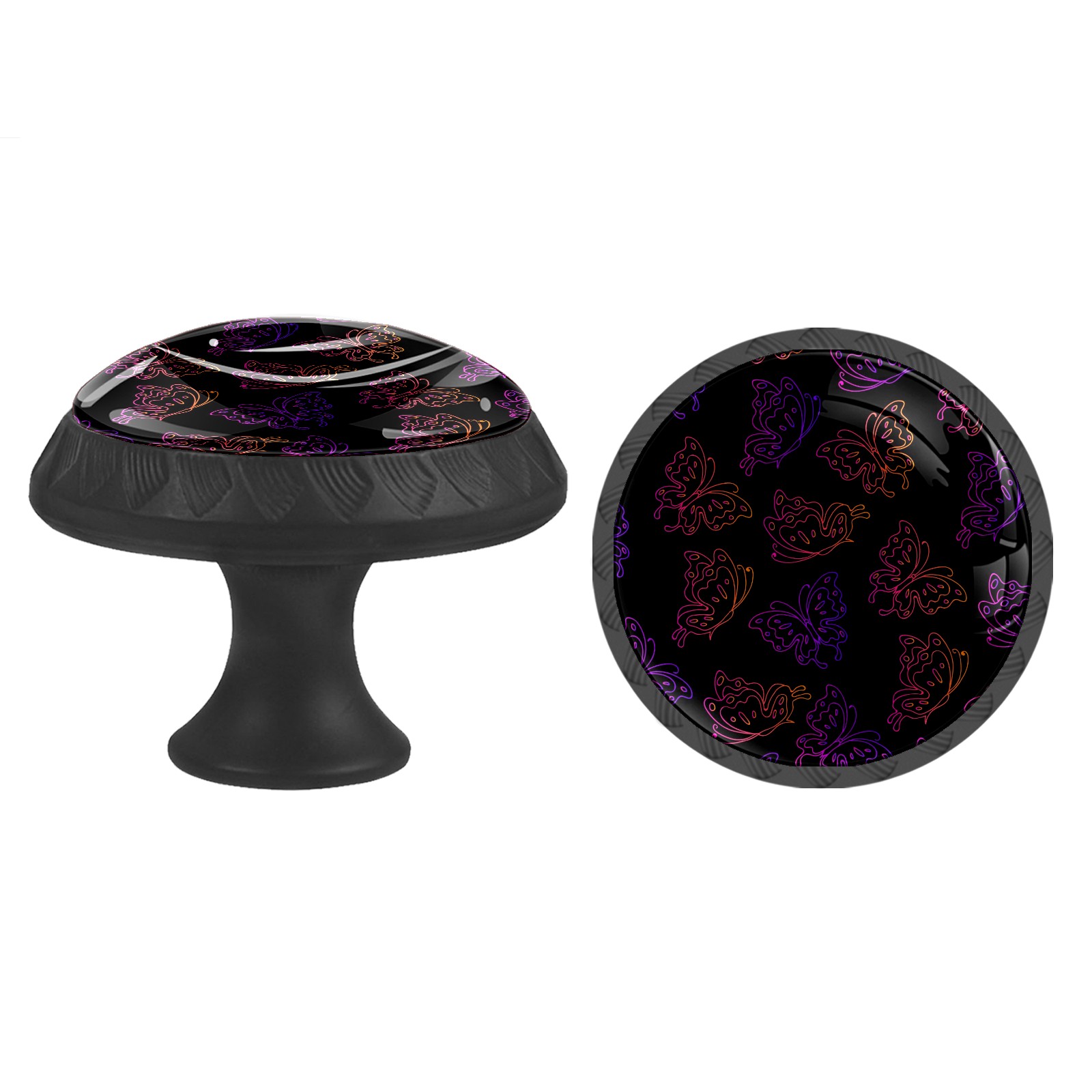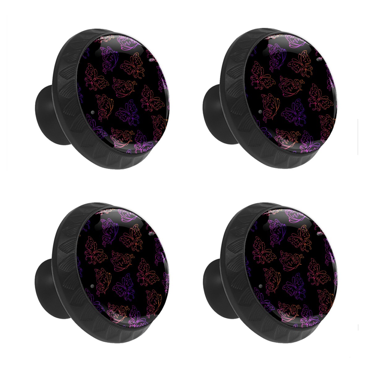 Round Cabinet Knobs Butterfly Black Background Drawer Pulls Crystal Glass Knobs for Dresser Kitchen Bathroom Cabinet Black Cupboard Wardrobe Pulls Handles, 4 Pack (1.37'' x1.37'')