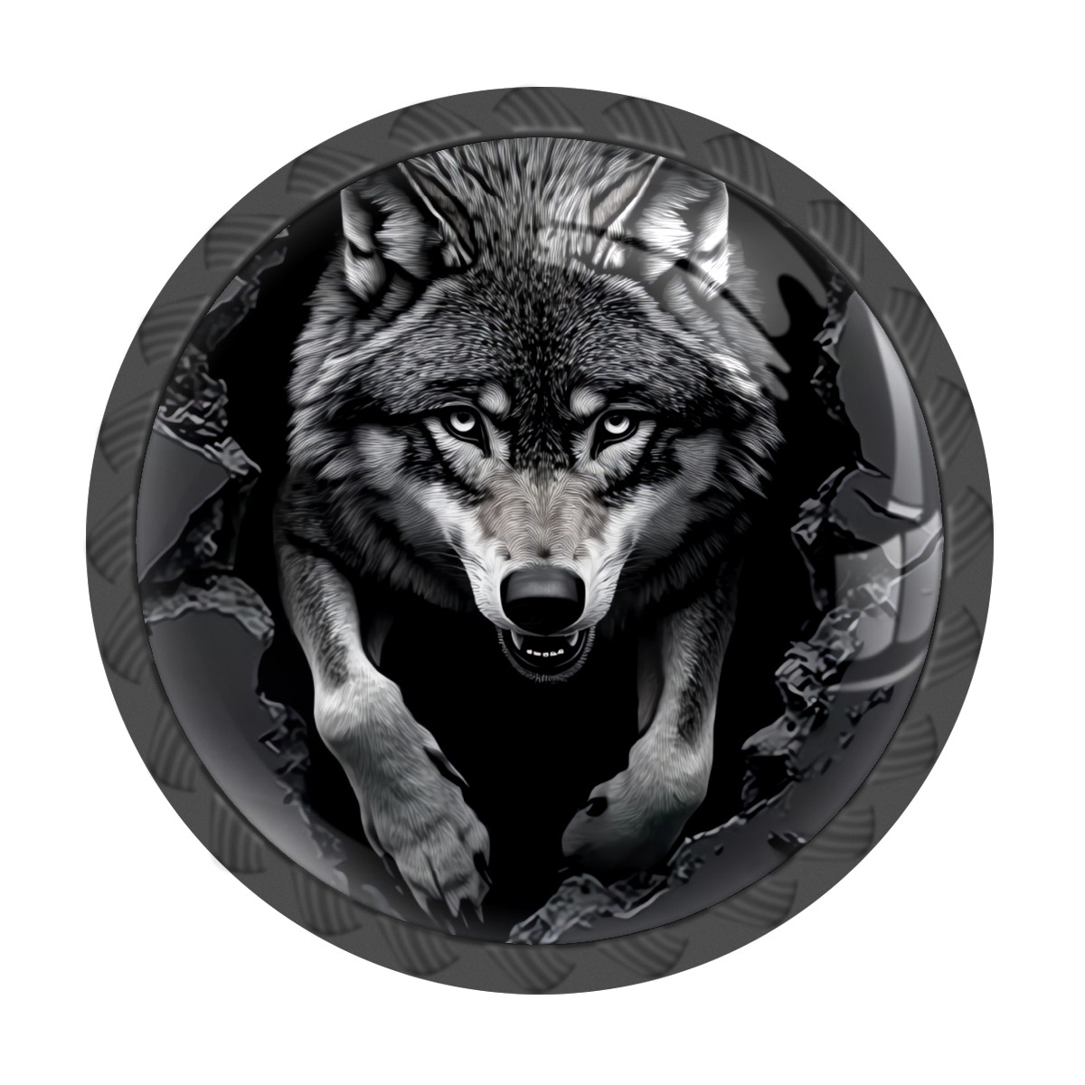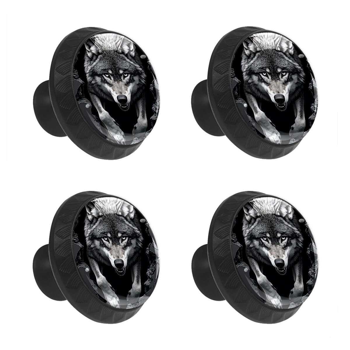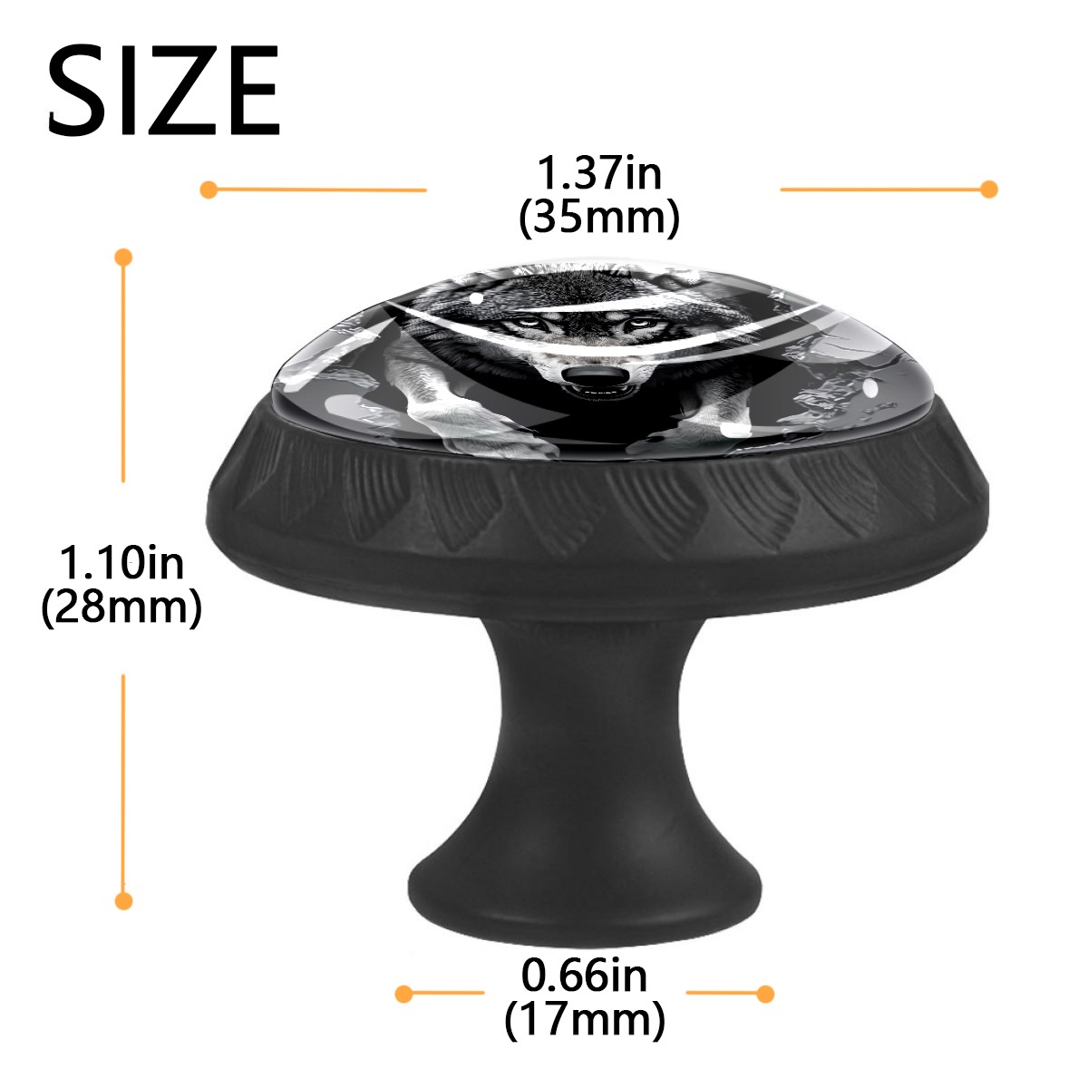 Round Cabinet Knobs Wolf Grey (1) Drawer Pulls Crystal Glass Knobs for Dresser Kitchen Bathroom Cabinet Black Cupboard Wardrobe Pulls Handles, 4 Pack (1.37'' x1.37'')