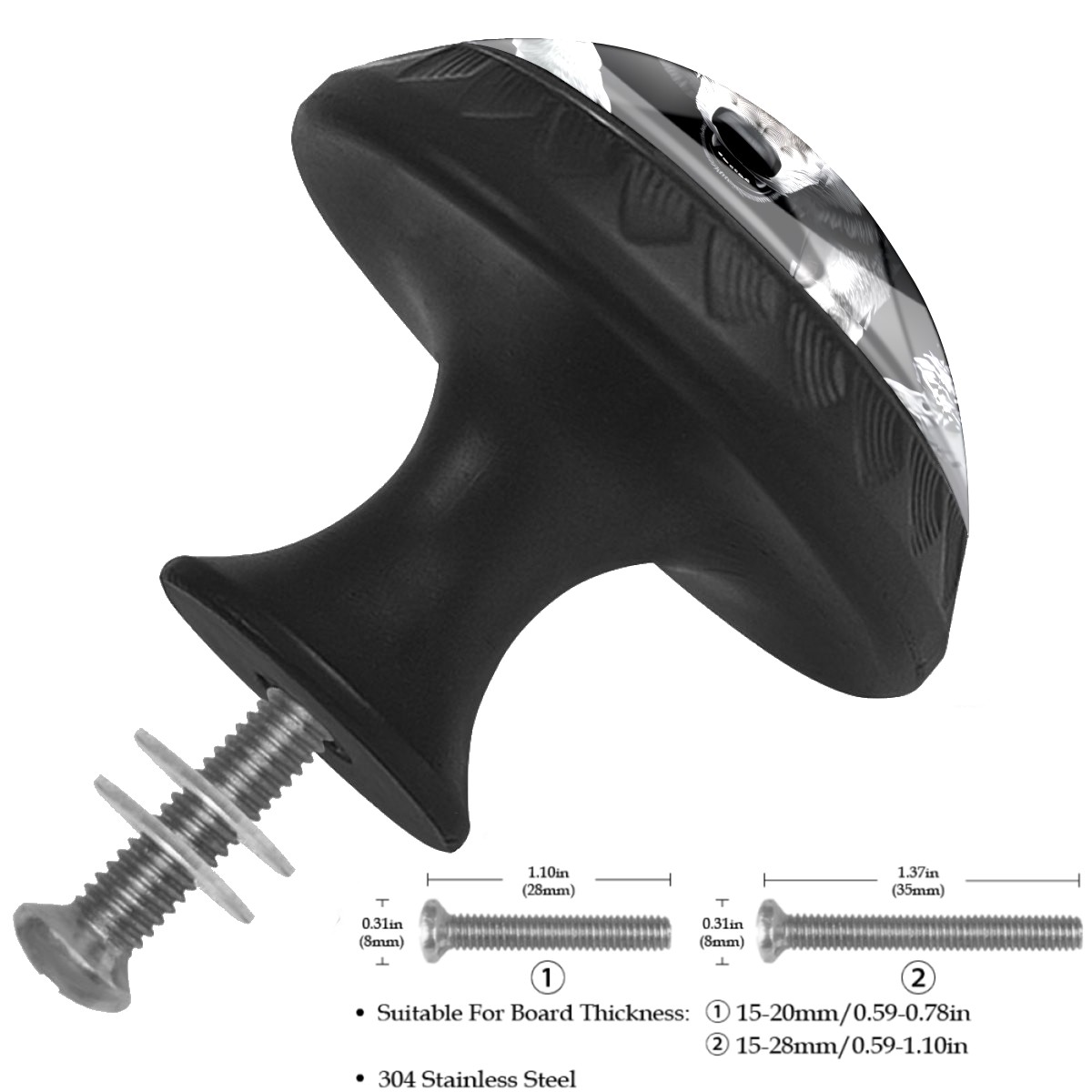 • <p><b>Package Includes:</b></p> <p>Drawer Knobs x 4</p> <p>1.10 Inches Mounting Screws x 4</p> <p>1.37 Inches Mounting Screws x 4</p> <p><br></p> <p>Crystal Glass Diameter: 1.37 inches (35mm)</p> <p>Knob Height: 1.10 inches (28mm)</p> <p>Base Diameter: 0.66 inches (17mm)</p> <p><br></p> <p><b>Practical and Aesthetic:</b></p> <p>The cute drawer pulls combine the durability of an ABS base with the high transparency of glass, enhanced by unique patterns that add decoration and cuteness. It’s both practical and visually appealing.</p> <p><b>Pattern Design:</b></p> <p>Clear patterns add decoration and personalization. They enhance visual appeal and can match different home styles, meeting diverse design needs.</p> <p><b>Easy Installation:</b></p> <p>Equipped with mounting screws, the ABS base can be securely attached to the drawer with ease.</p> <p><b>Easy Cleaning:</b></p> <p>The smooth surface of the round glass pull resists dust and stains, making it easy to clean with just a damp cloth.</p> <p><b>Wear-Resistant:</b></p> <p>The cabinet knobs are designed to resist scratches and fading, maintaining their good appearance over long-term use.</p>