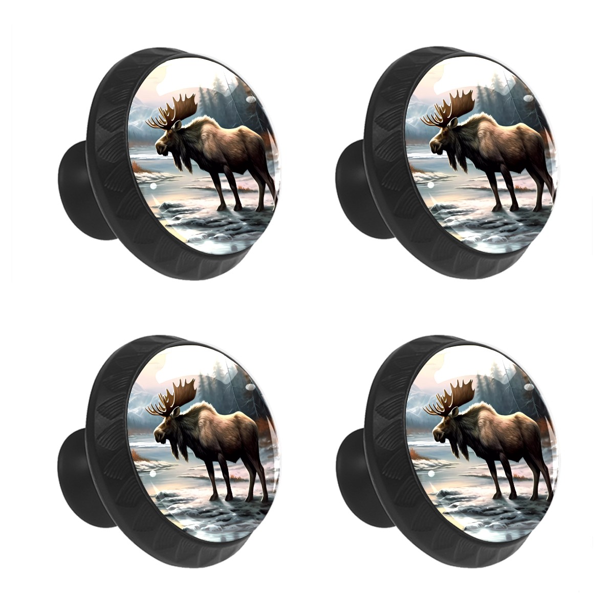 Round Cabinet Knobs A Moose (1) Drawer Pulls Crystal Glass Knobs for Dresser Kitchen Bathroom Cabinet Black Cupboard Wardrobe Pulls Handles, 4 Pack (1.37'' x1.37'')