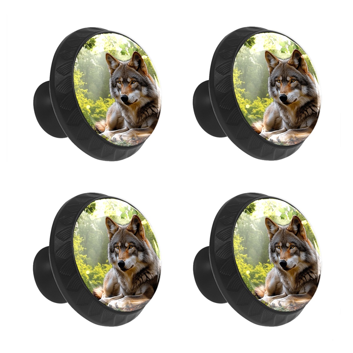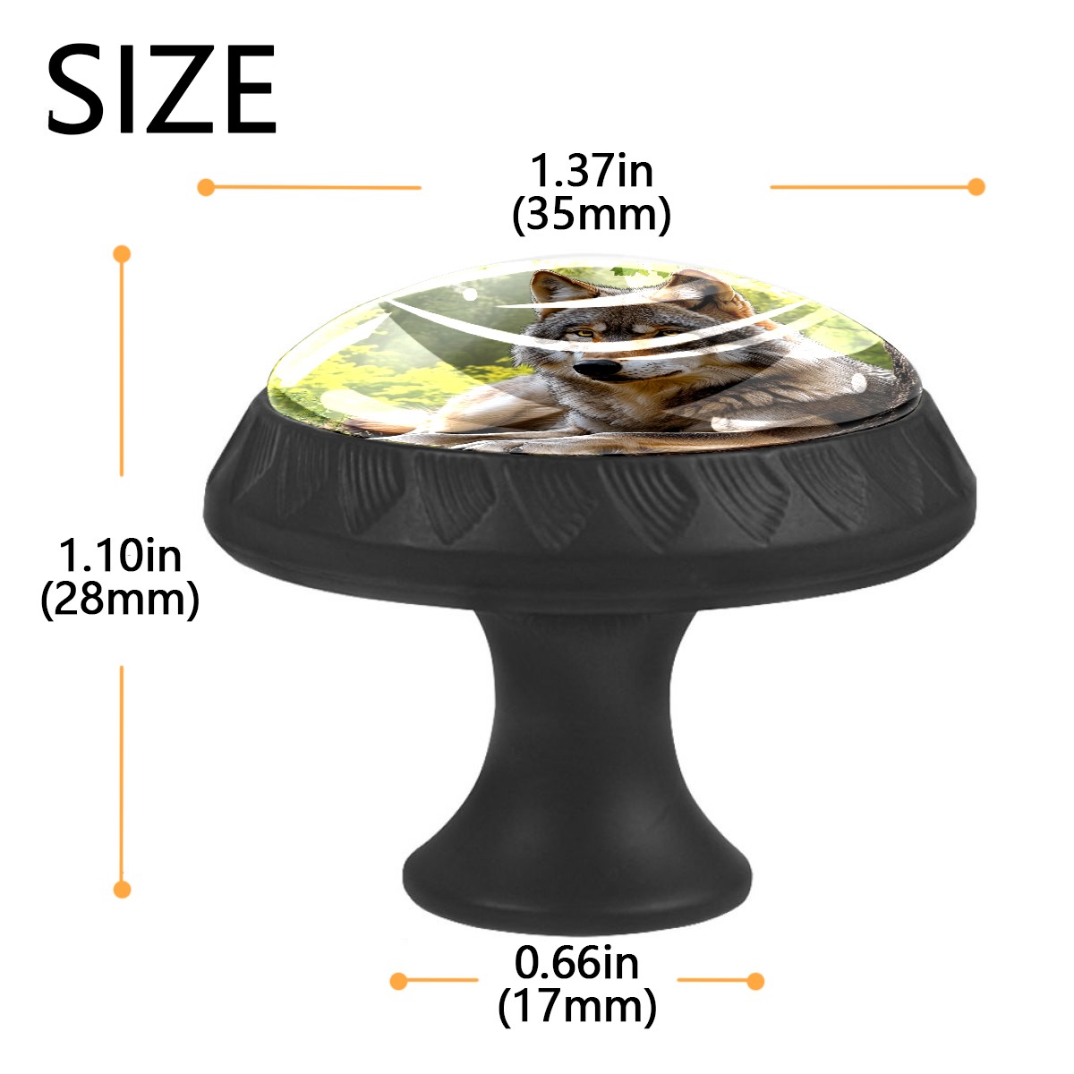 Round Cabinet Knobs Wolf Drawer Pulls Crystal Glass Knobs for Dresser Kitchen Bathroom Cabinet Black Cupboard Wardrobe Pulls Handles, 4 Pack (1.37'' x1.37'')