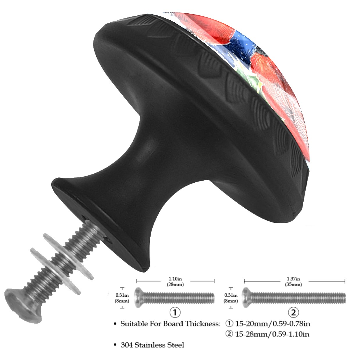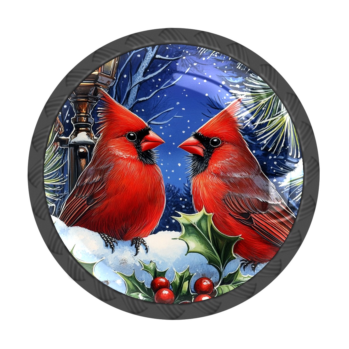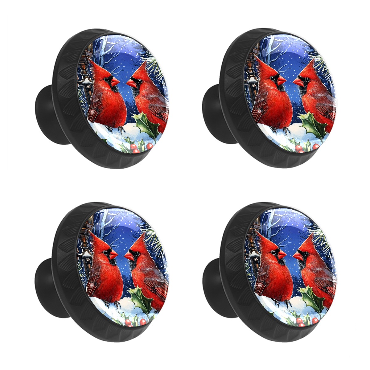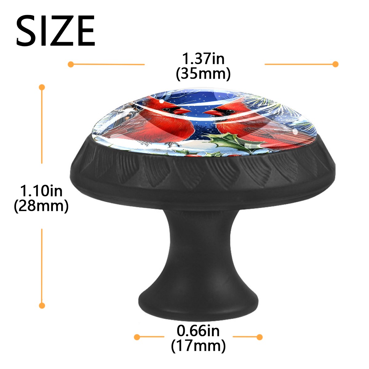 Round Cabinet Knobs Red Cardinals Drawer Pulls Crystal Glass Knobs for Dresser Kitchen Bathroom Cabinet Black Cupboard Wardrobe Pulls Handles, 4 Pack (1.37'' x1.37'')