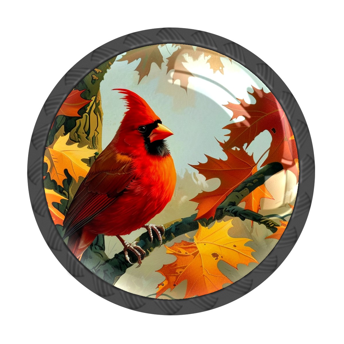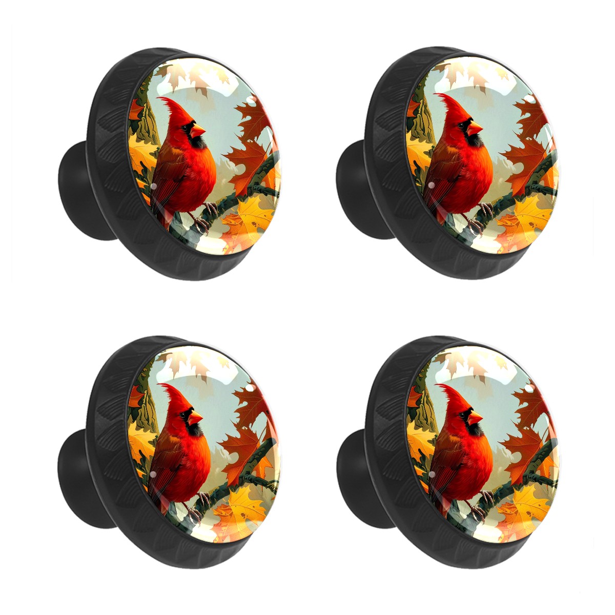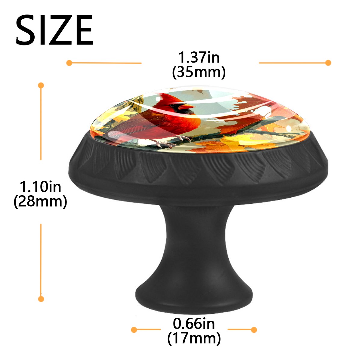 Round Cabinet Knobs Red Cardinal Drawer Pulls Crystal Glass Knobs for Dresser Kitchen Bathroom Cabinet Black Cupboard Wardrobe Pulls Handles, 4 Pack (1.37'' x1.37'')